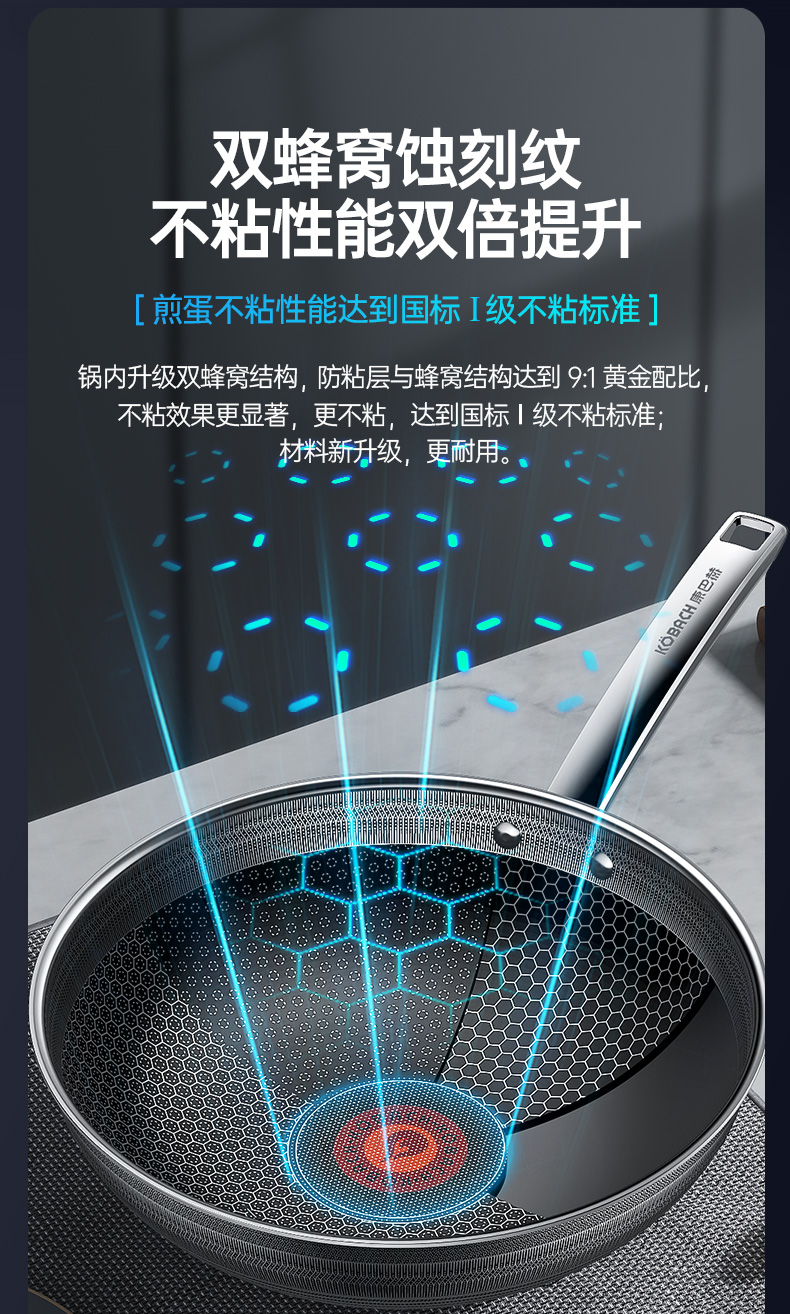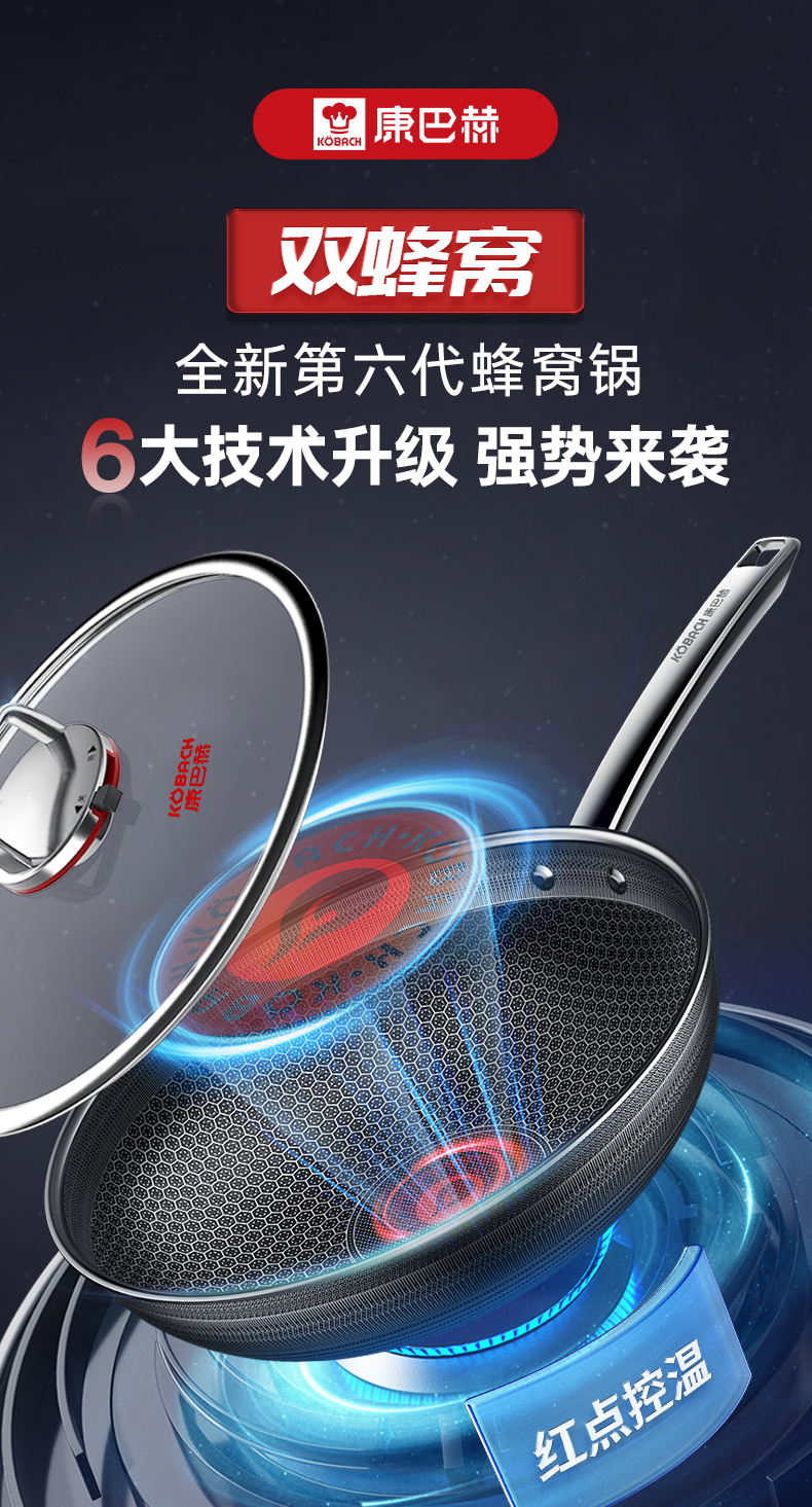 康巴赫炒锅六代红点炒锅不锈钢32cm