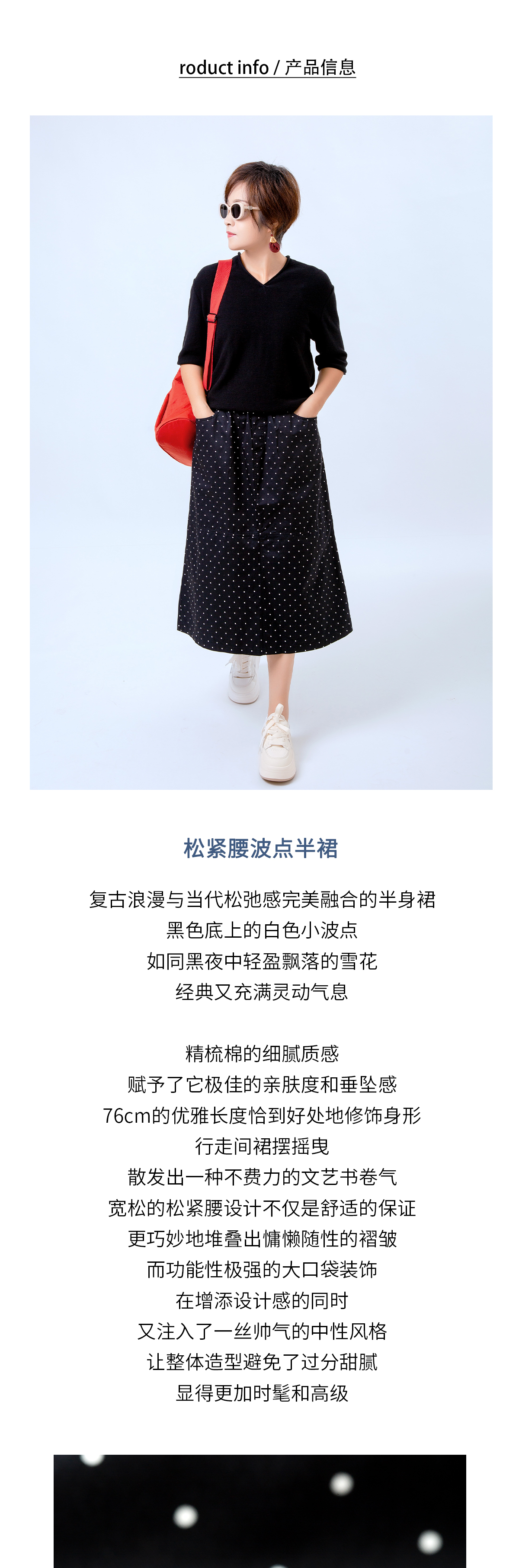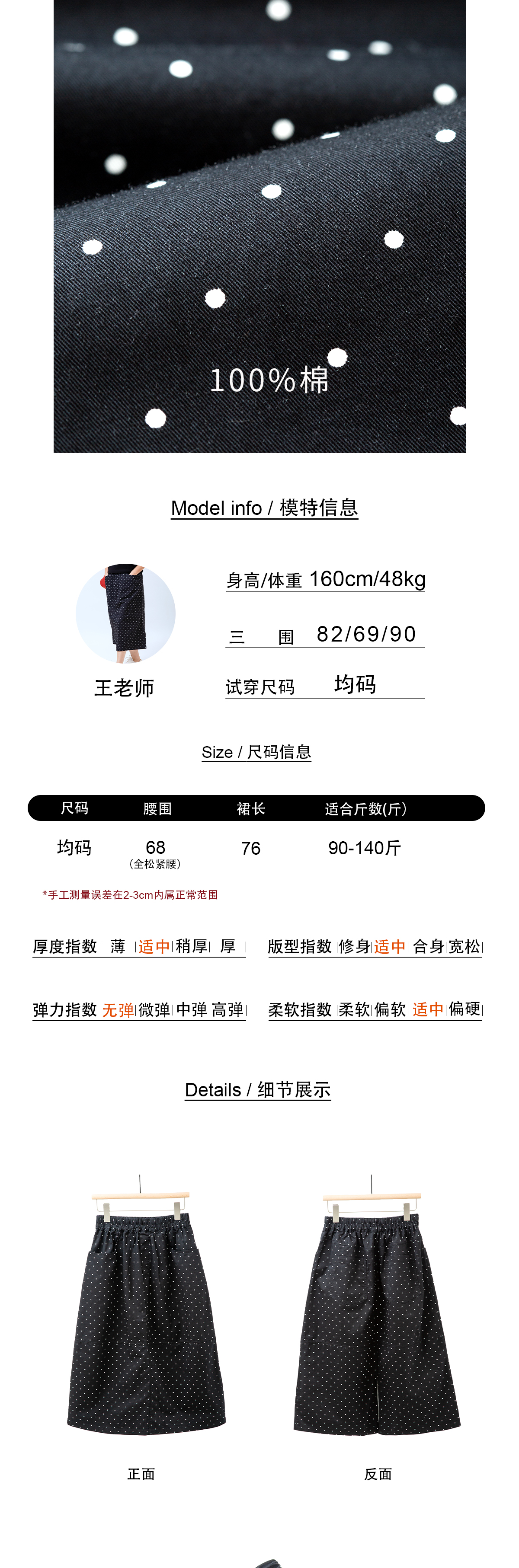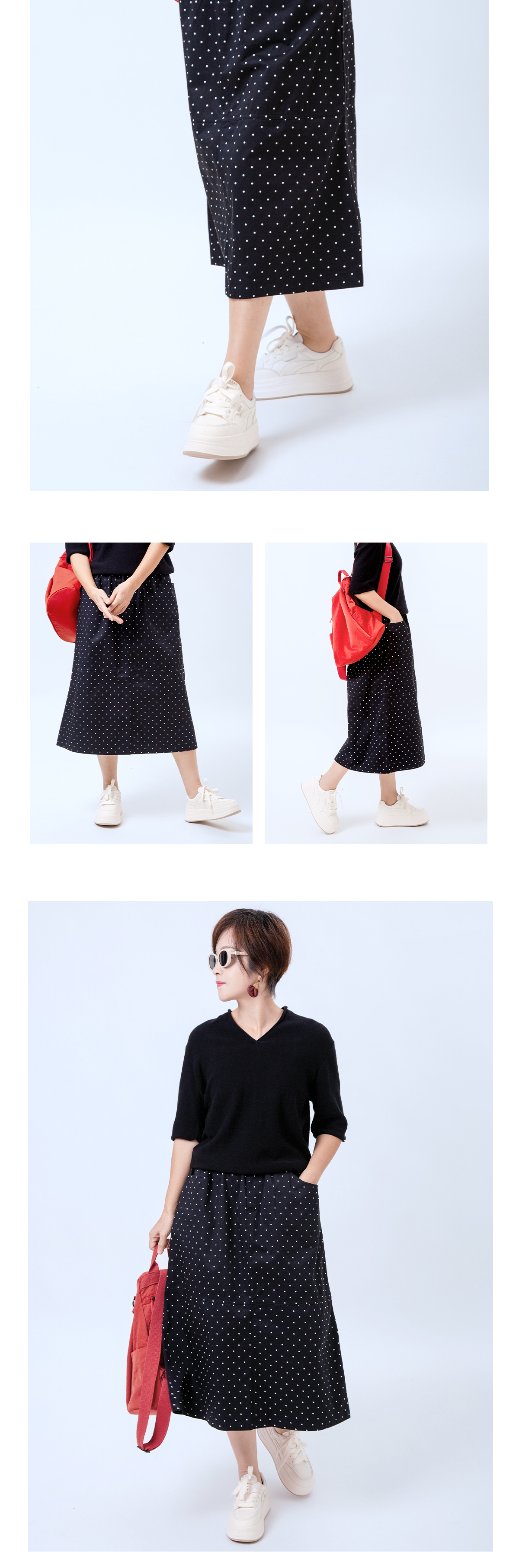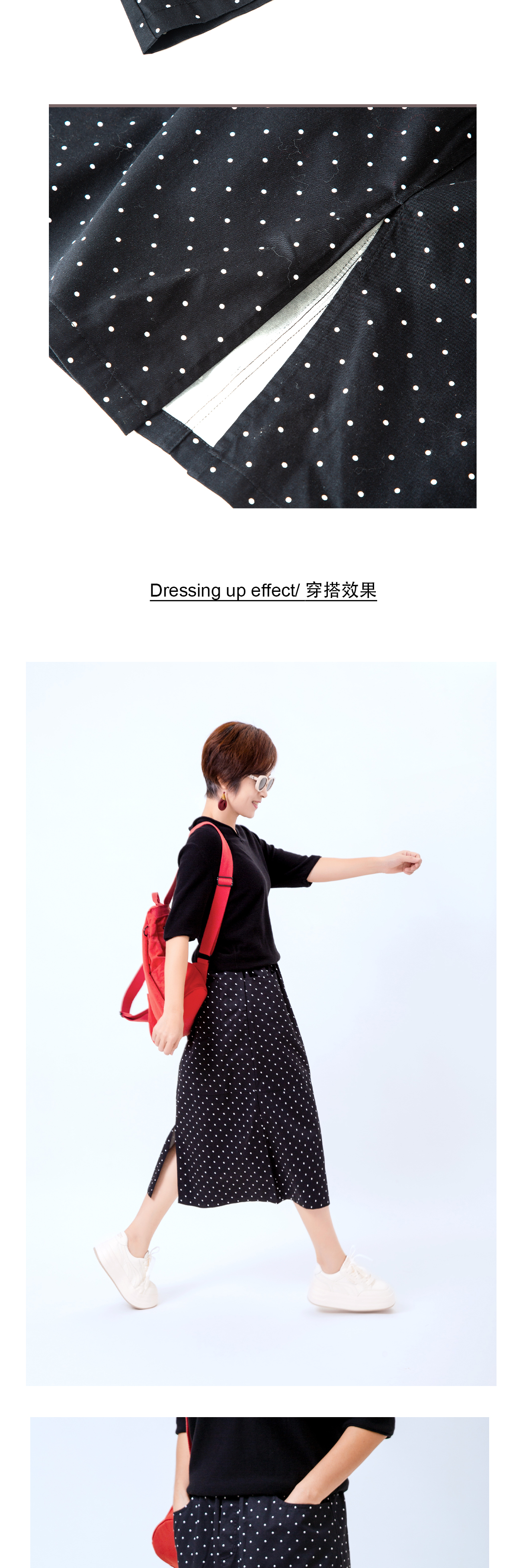 松紧腰波点半裙