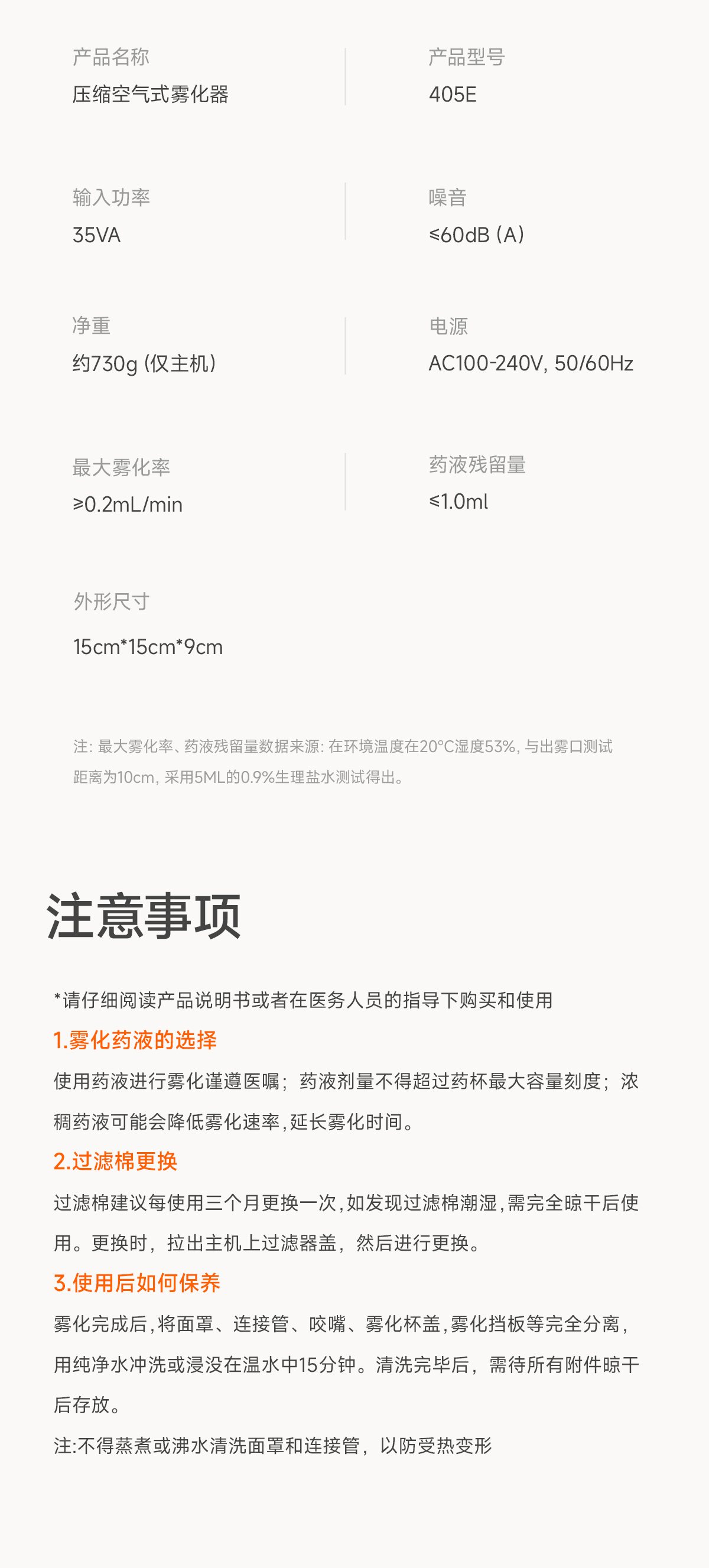 鱼跃雾化器405E 空气压缩雾化 小儿配面罩