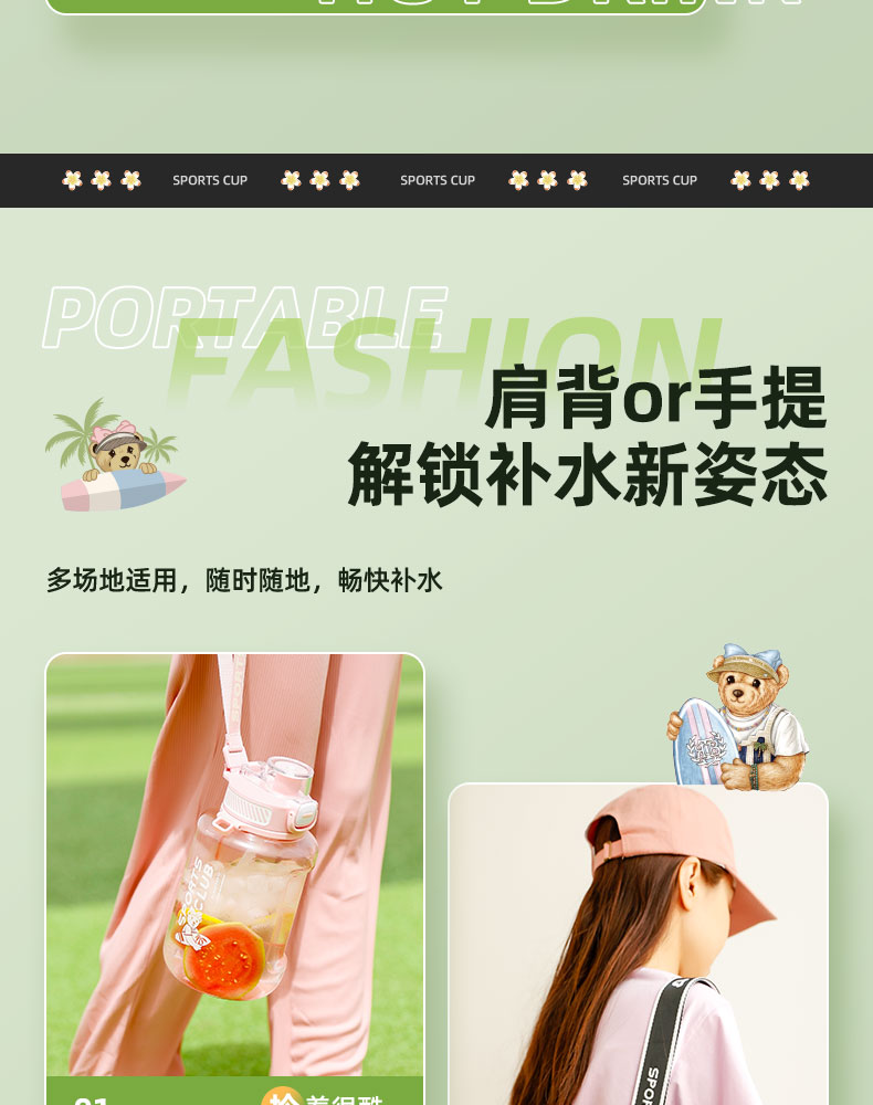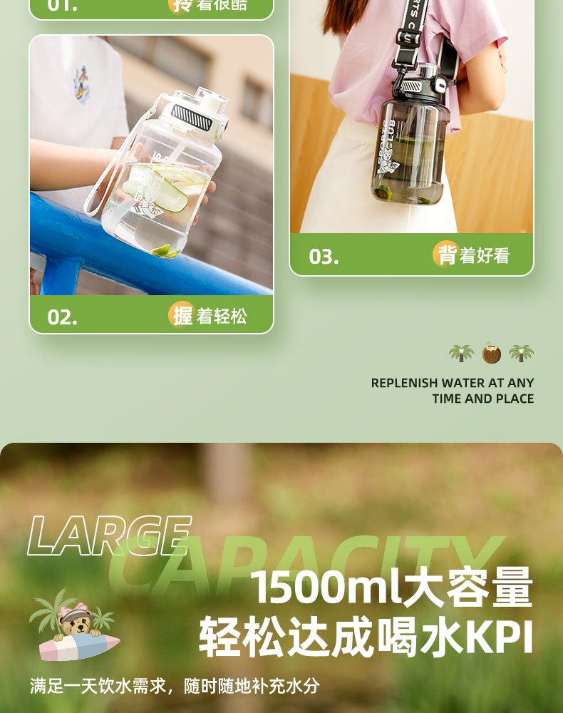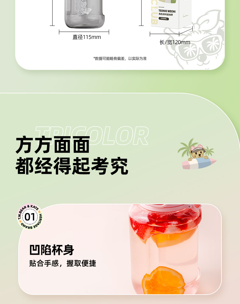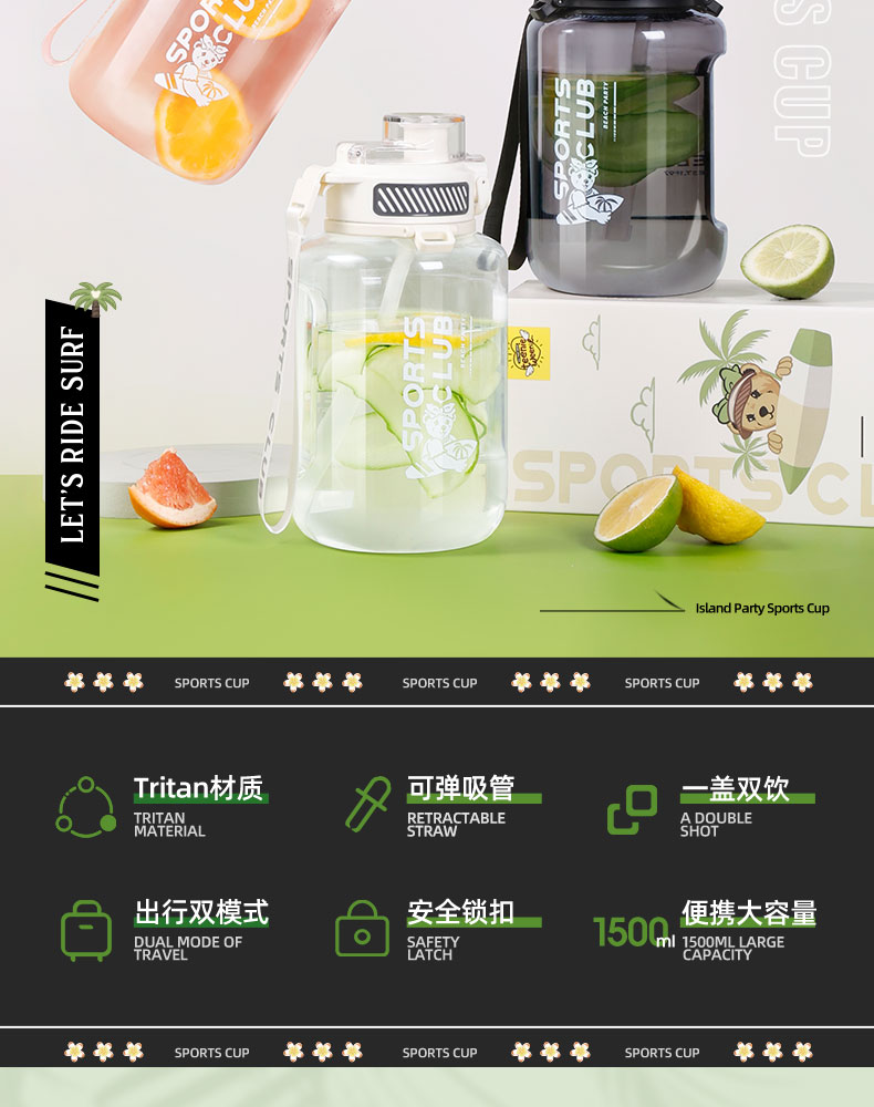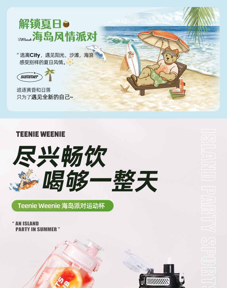 teenieweenie海岛运动派对杯运动水壶健身吨桶吨耐高温太空吸管杯