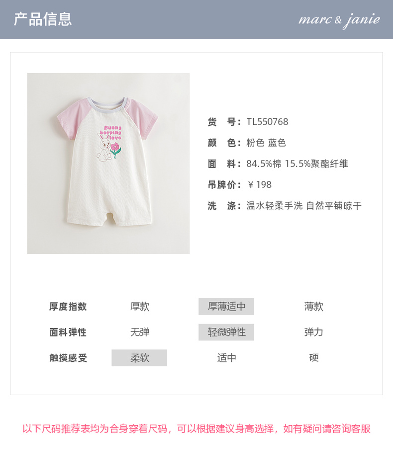 【凉感】马克珍妮女宝宝甜心小兔连体衣 婴儿爬服夏装新款550768