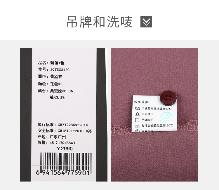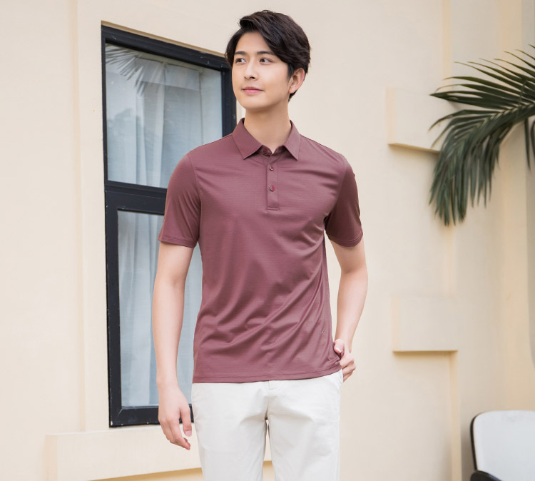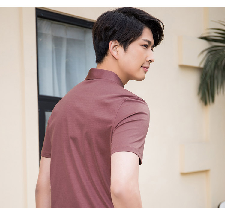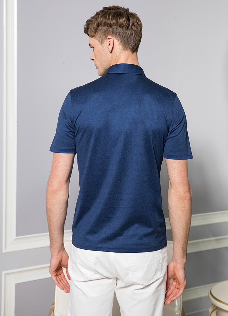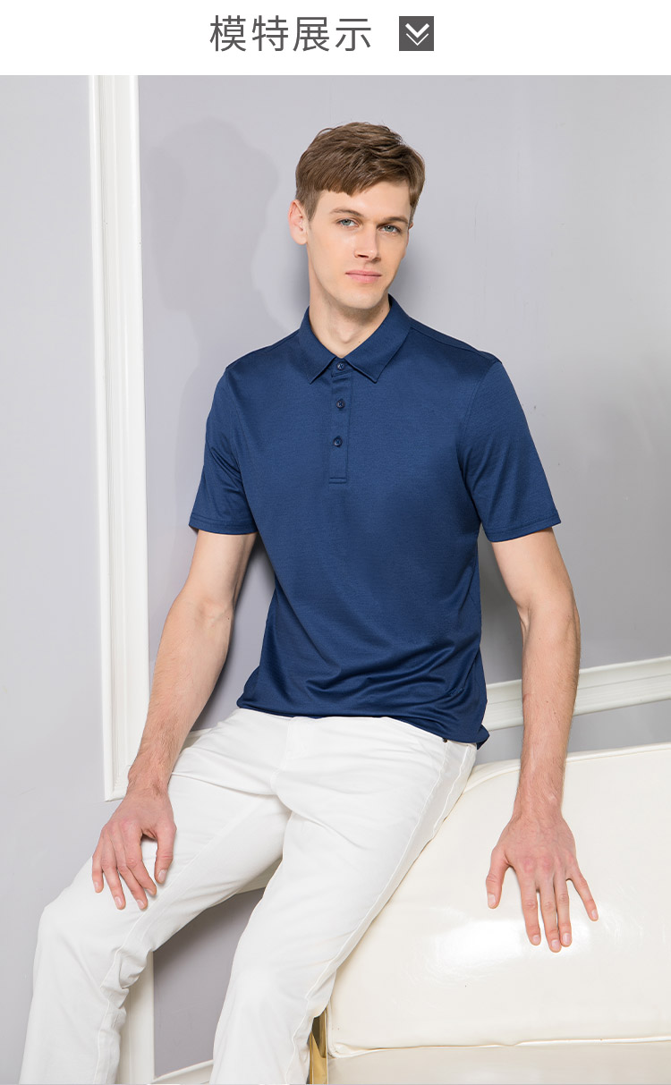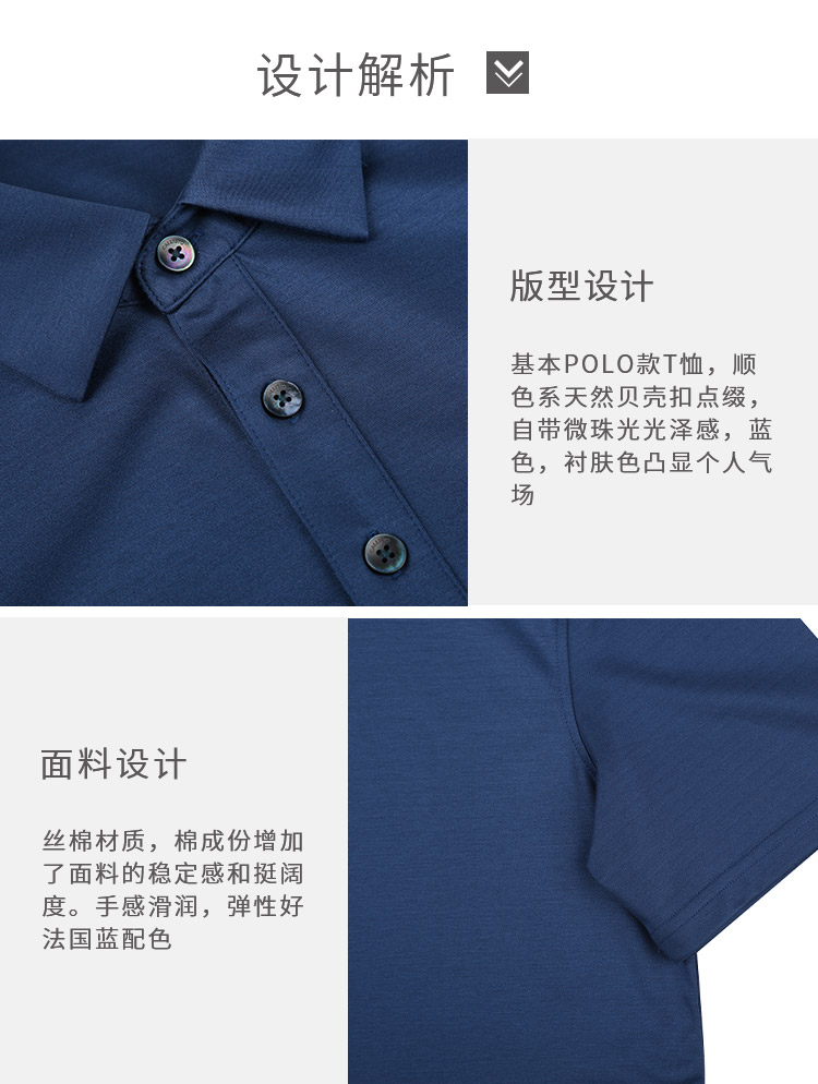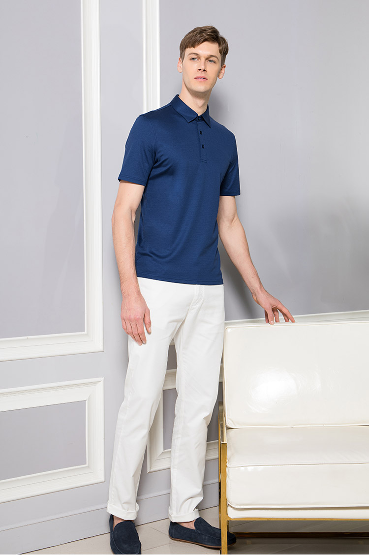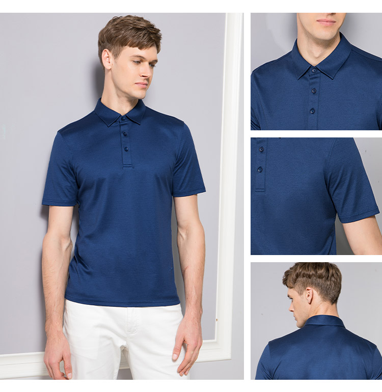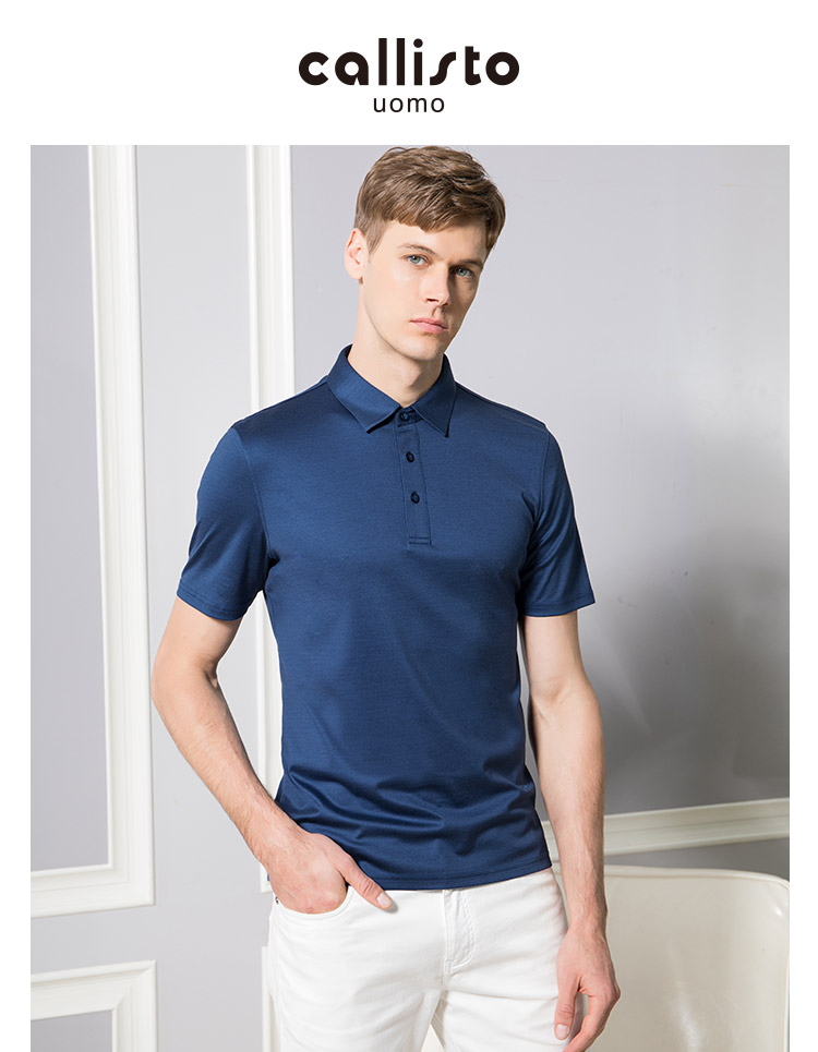 callisto蓝色短袖桑蚕丝棉翻领T恤 SQTSS212C-BL