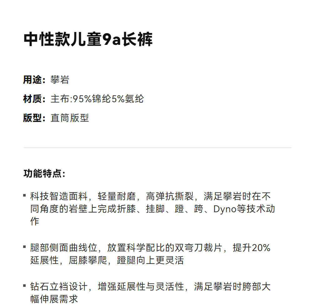KAILAS凯乐石 中性款儿童9a长裤 KG2535311