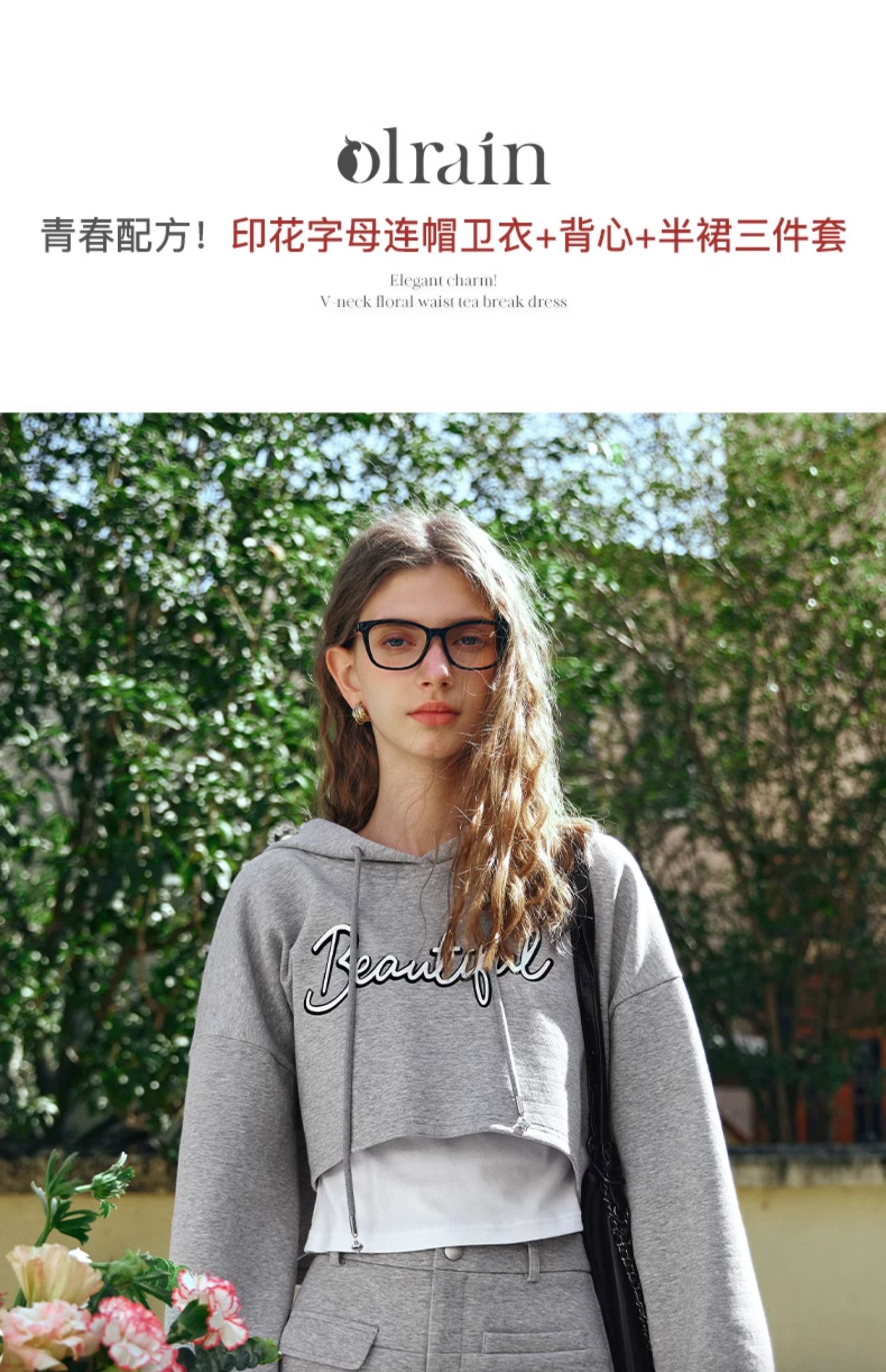 OLrain欧芮儿休闲时尚套装女早春2024年新款时尚宽松印花三件套