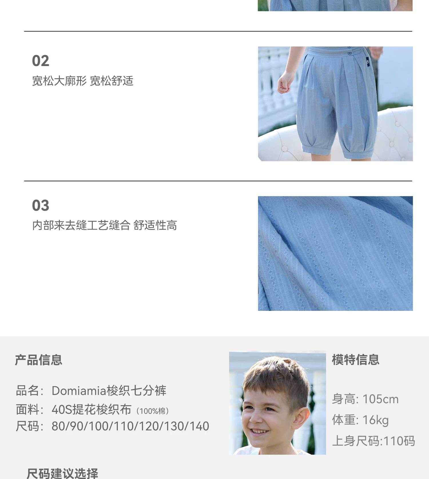 Domiamia 男宝宝梭织七分裤 透气百搭薄款春夏七分裤