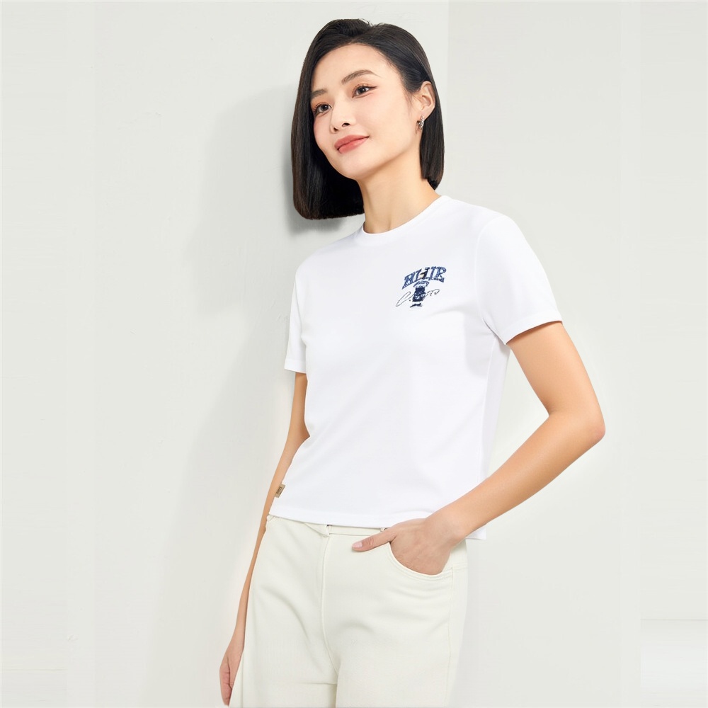 佐丹奴女装25年新款蔚蓝经典系列纯棉针织T恤05395206