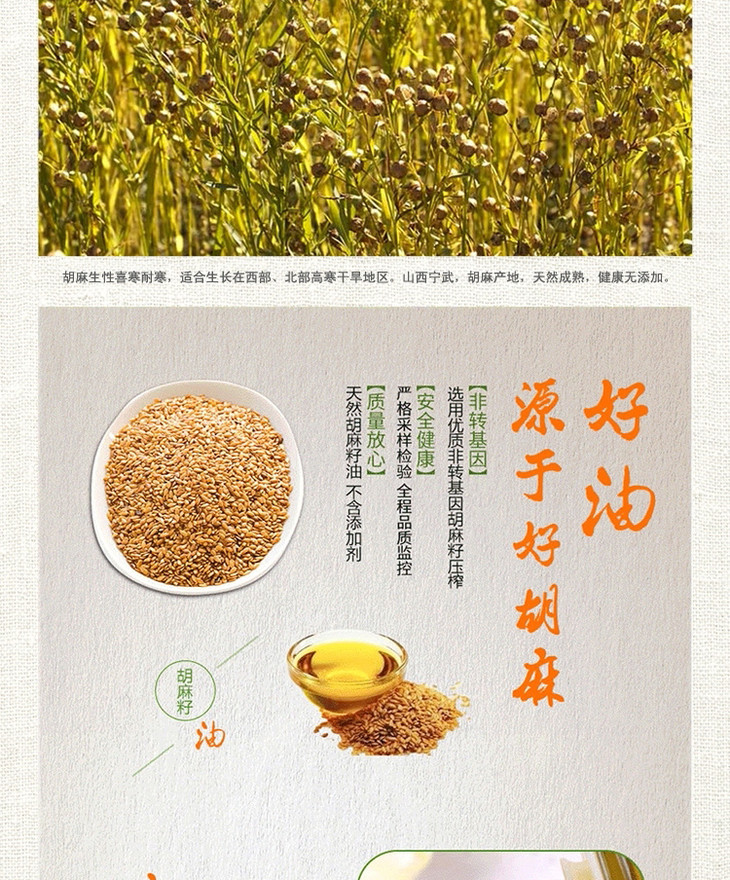 芦芽农夫胡麻油山西特产正宗粮食油传统工艺胡麻油凉拌油烹饪油1.8L