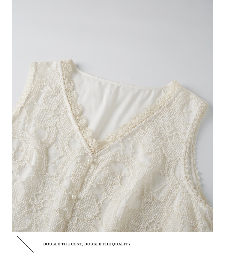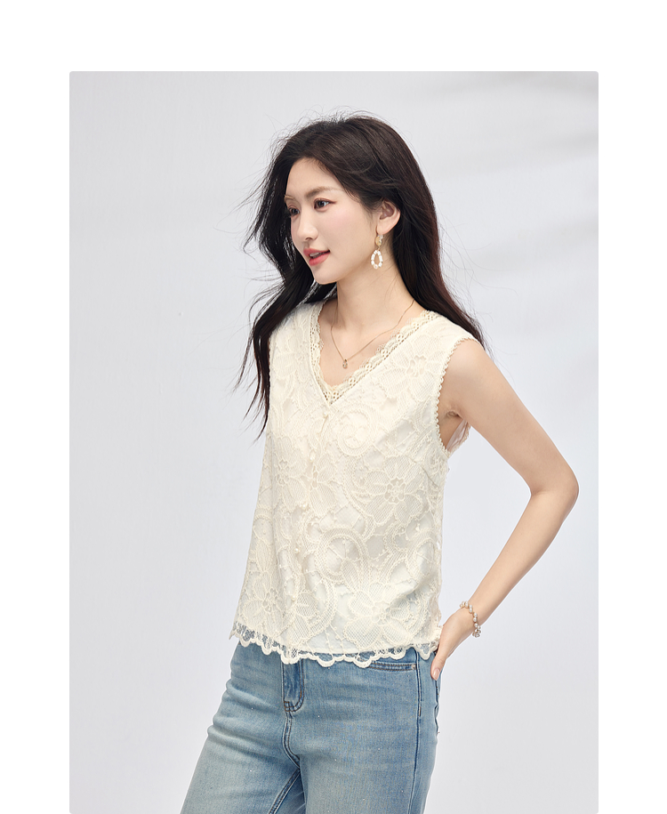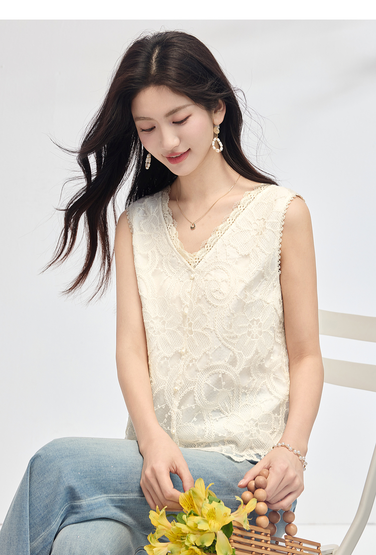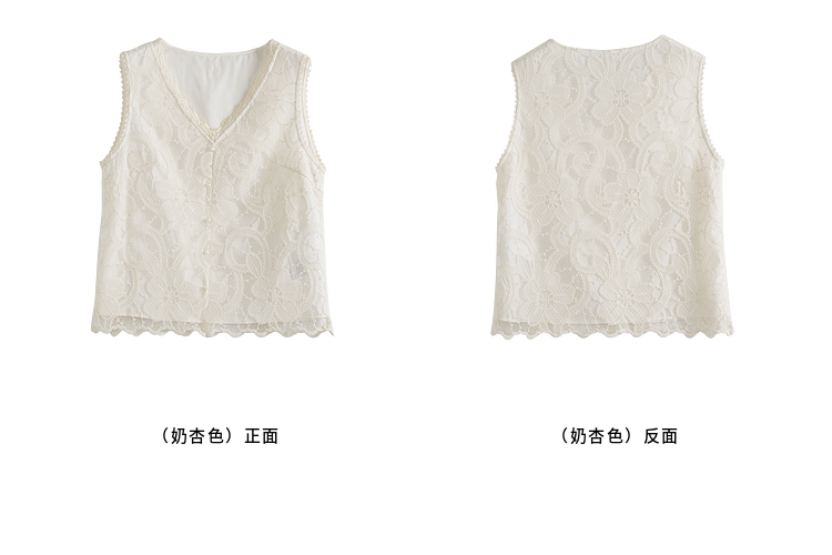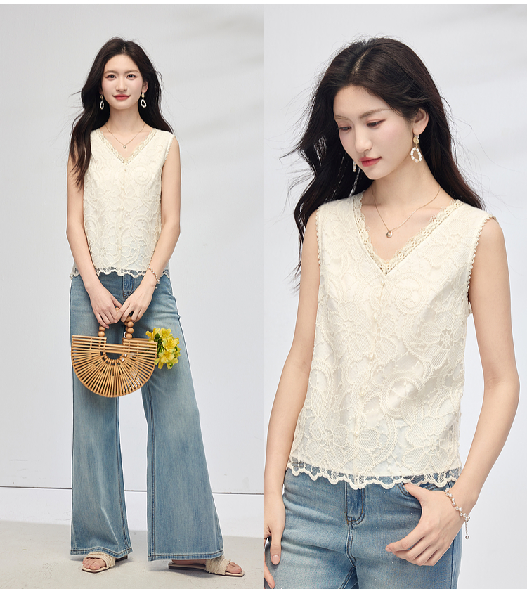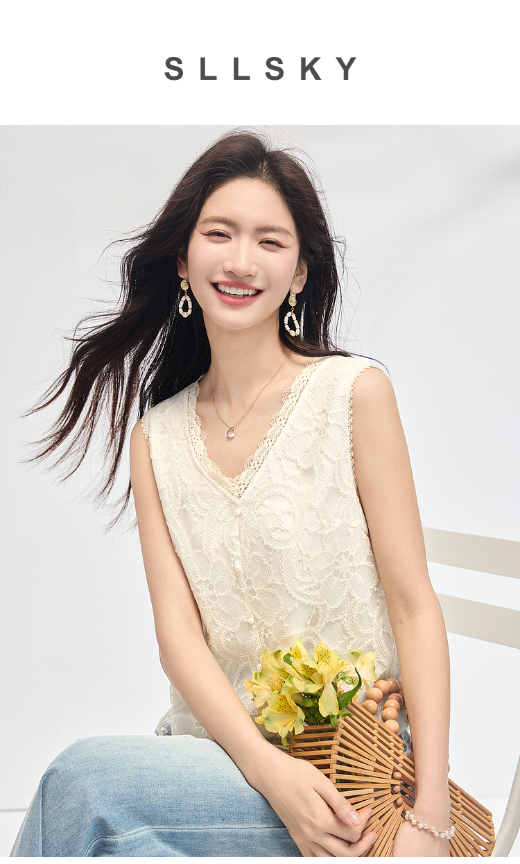 熙世界法式V领蕾丝背心女夏2025新款高级感刺绣外穿无袖马甲上衣