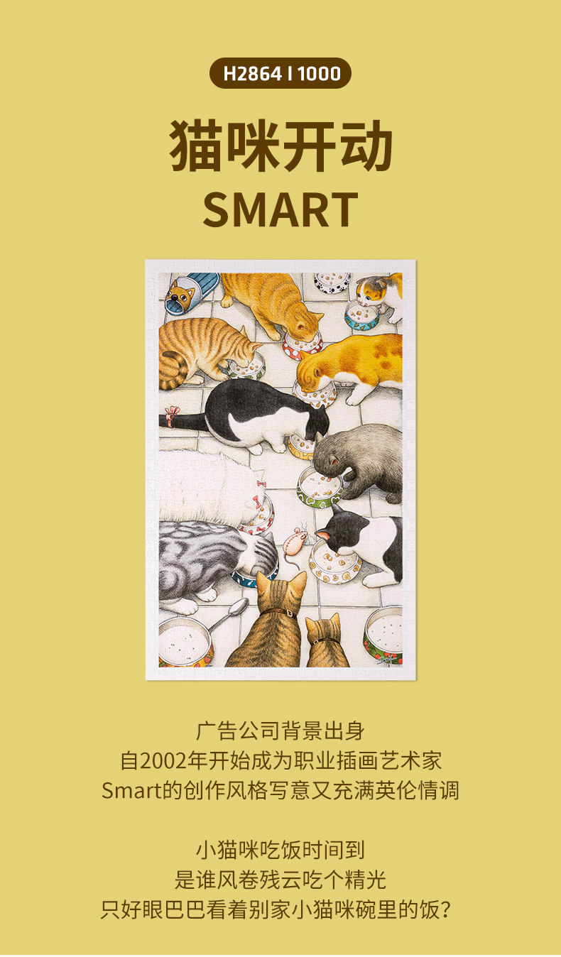 【折扣商品 不退不换】1000片平面拼图塑料拼图 H2864 SMART-猫咪开动
