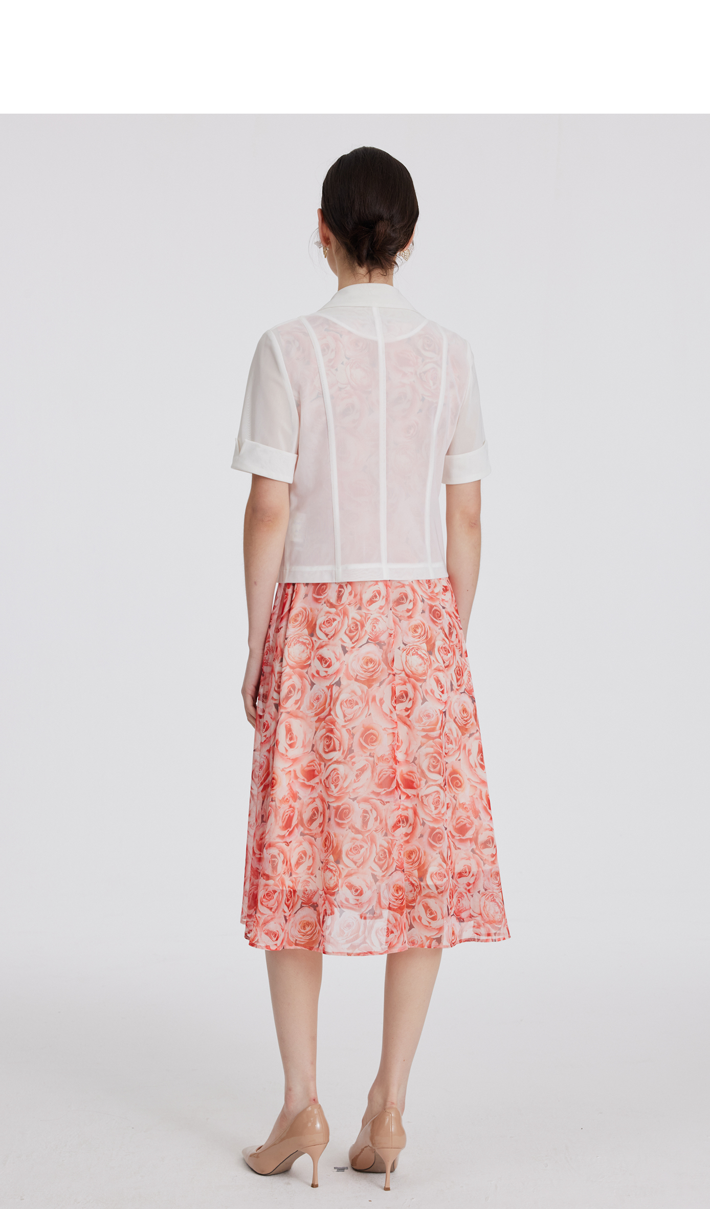 司歌网纱印花长袖连衣裙圆领复古端庄A881316