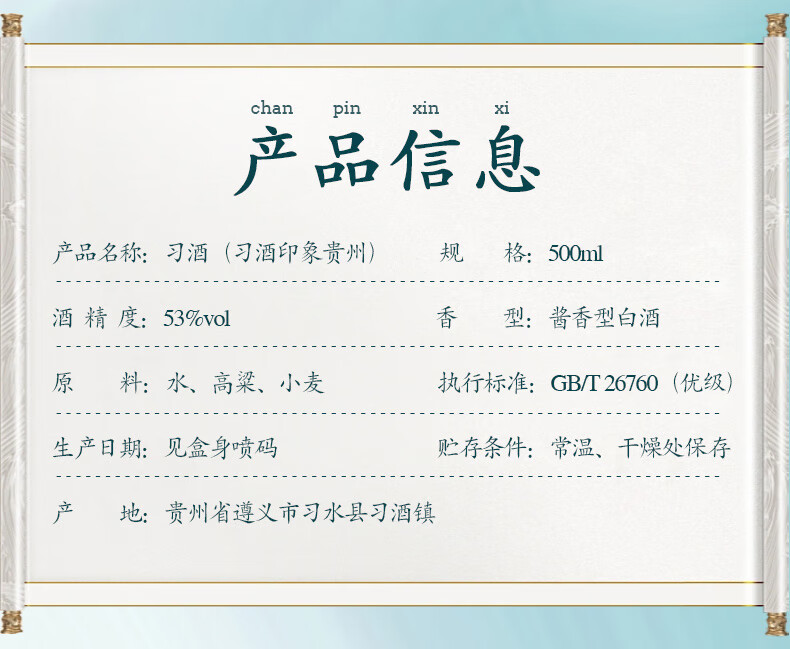 53度茅台习酒印象贵州酱香型500ML白酒