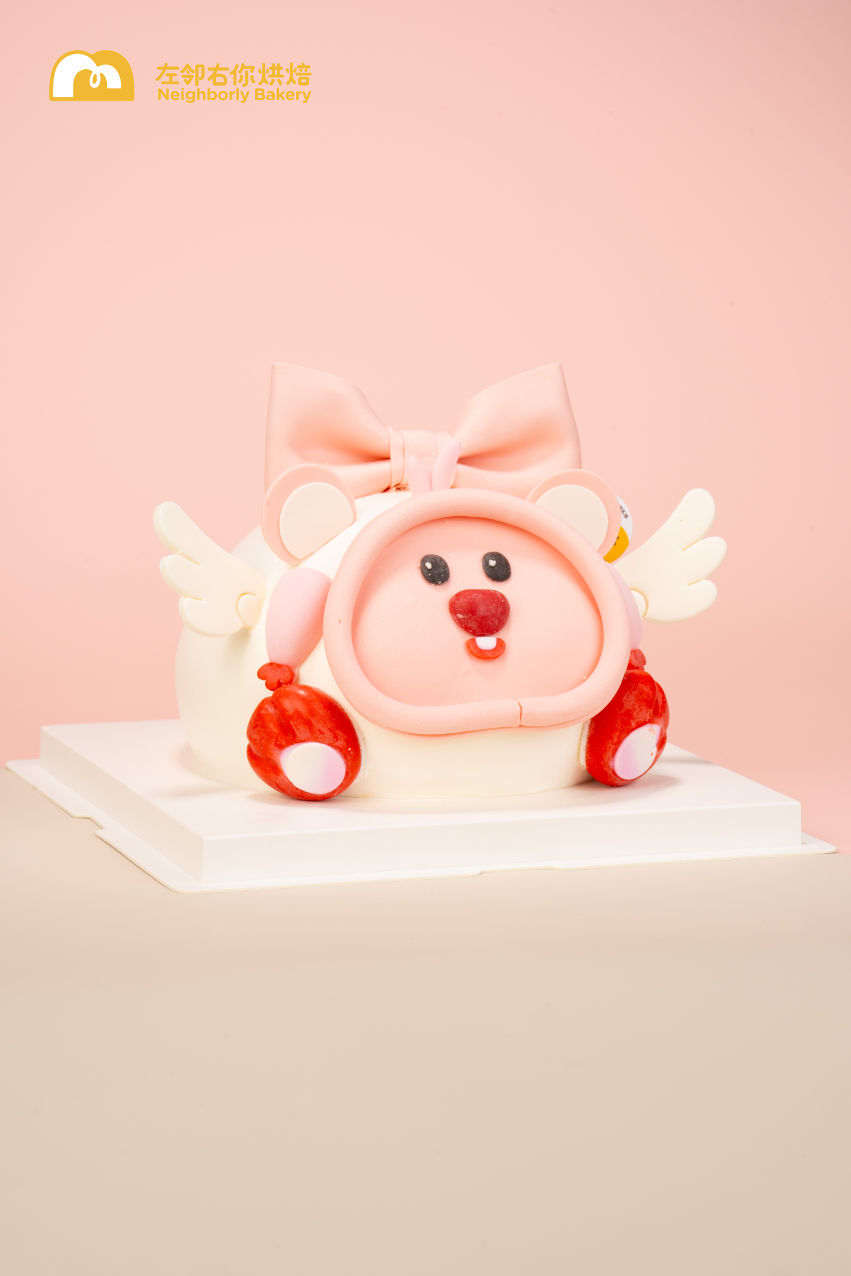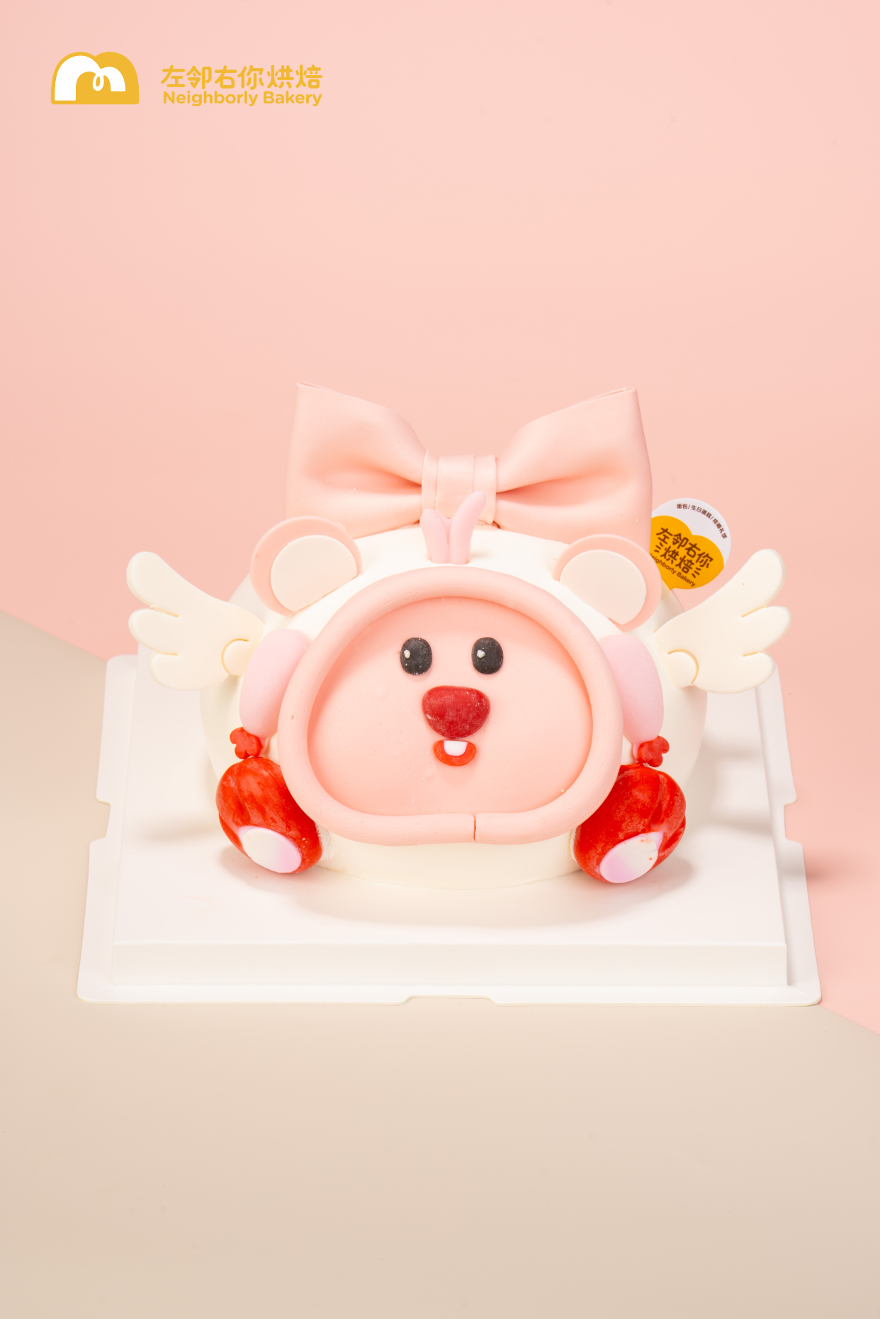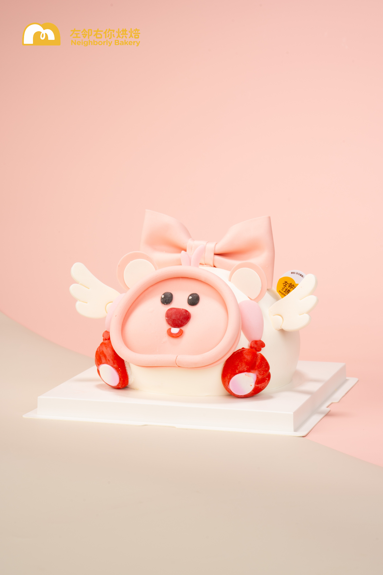 可爱小天使蛋糕来啦!全可食用翻糖配件,动物奶油,宝宝安心吃!