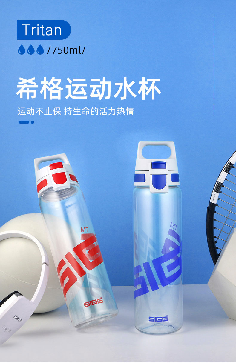 SIGG希格 精彩系列一键开合运动杯750ml二件套(红+蓝)【一经使用不支持退换】