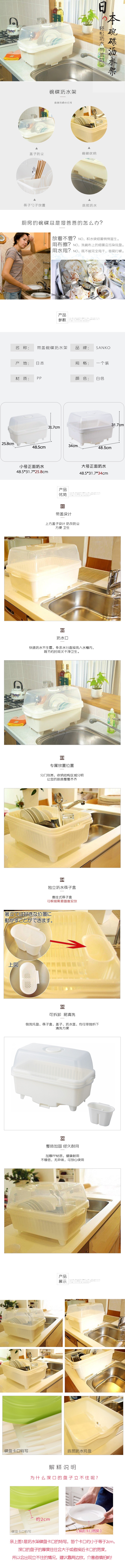 sanko碗筷沥水架带盖 日本进口放碗架厨房水槽沥水架碗筷碗碟沥水 WHJC