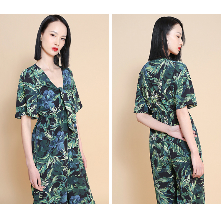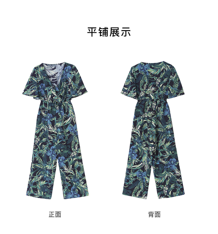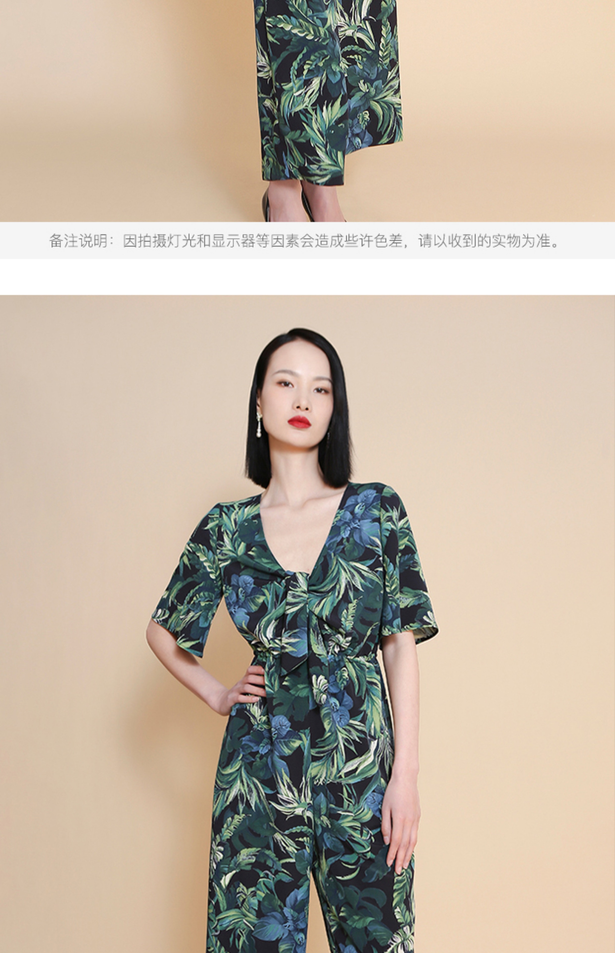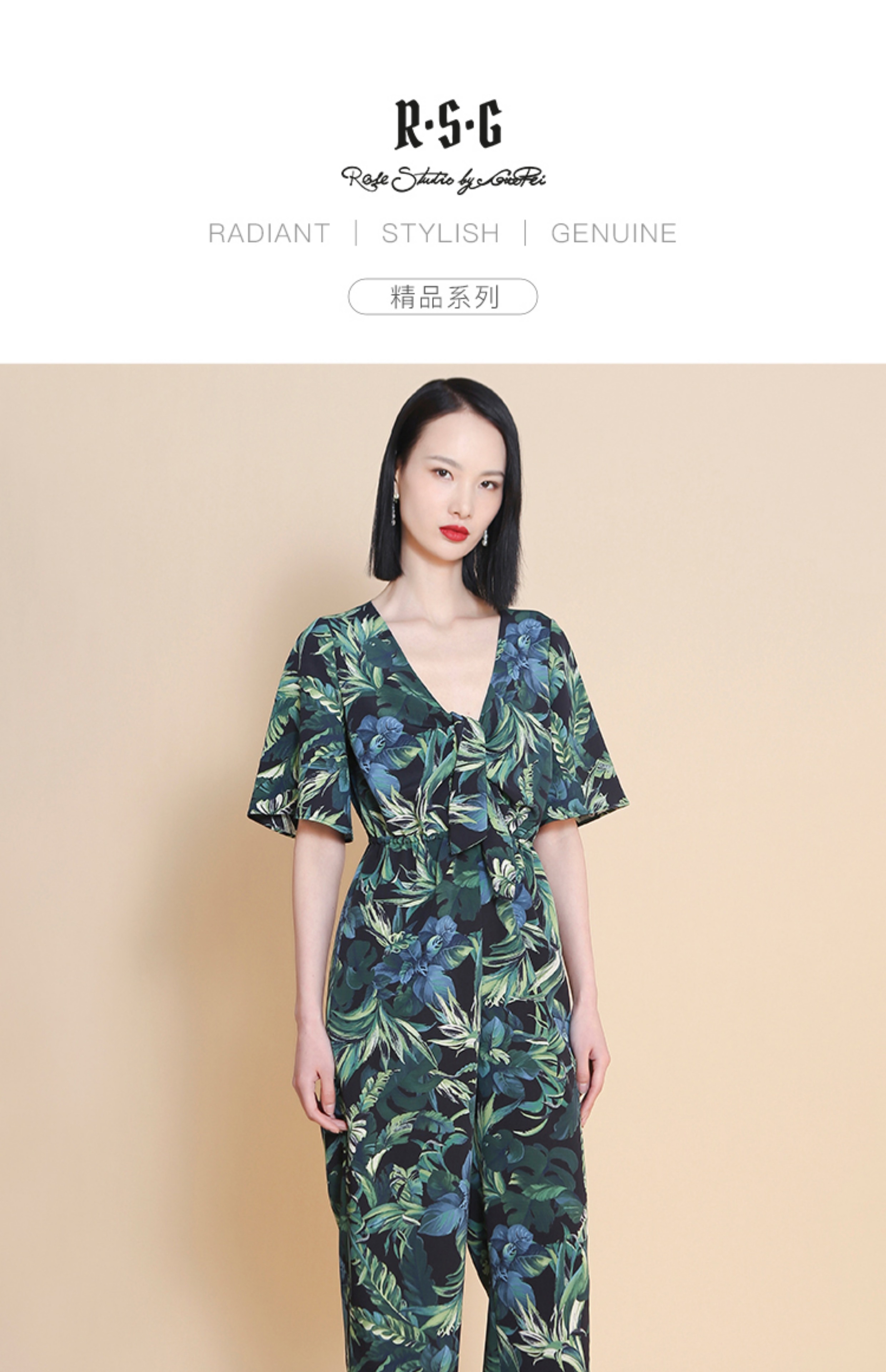 RSG郭培成衣品牌度假风丛林印花V领阔腿连体裤