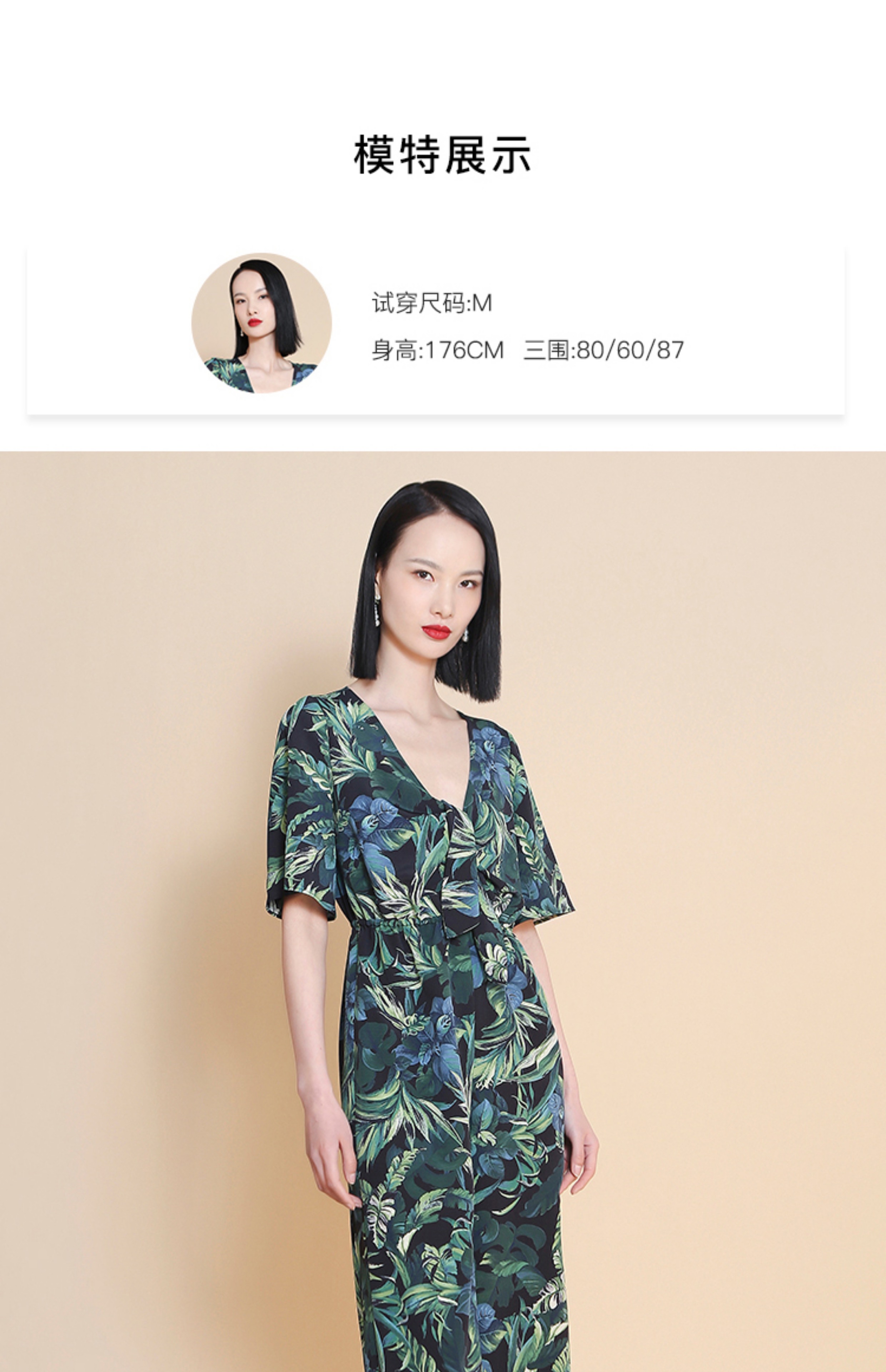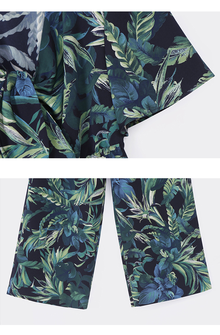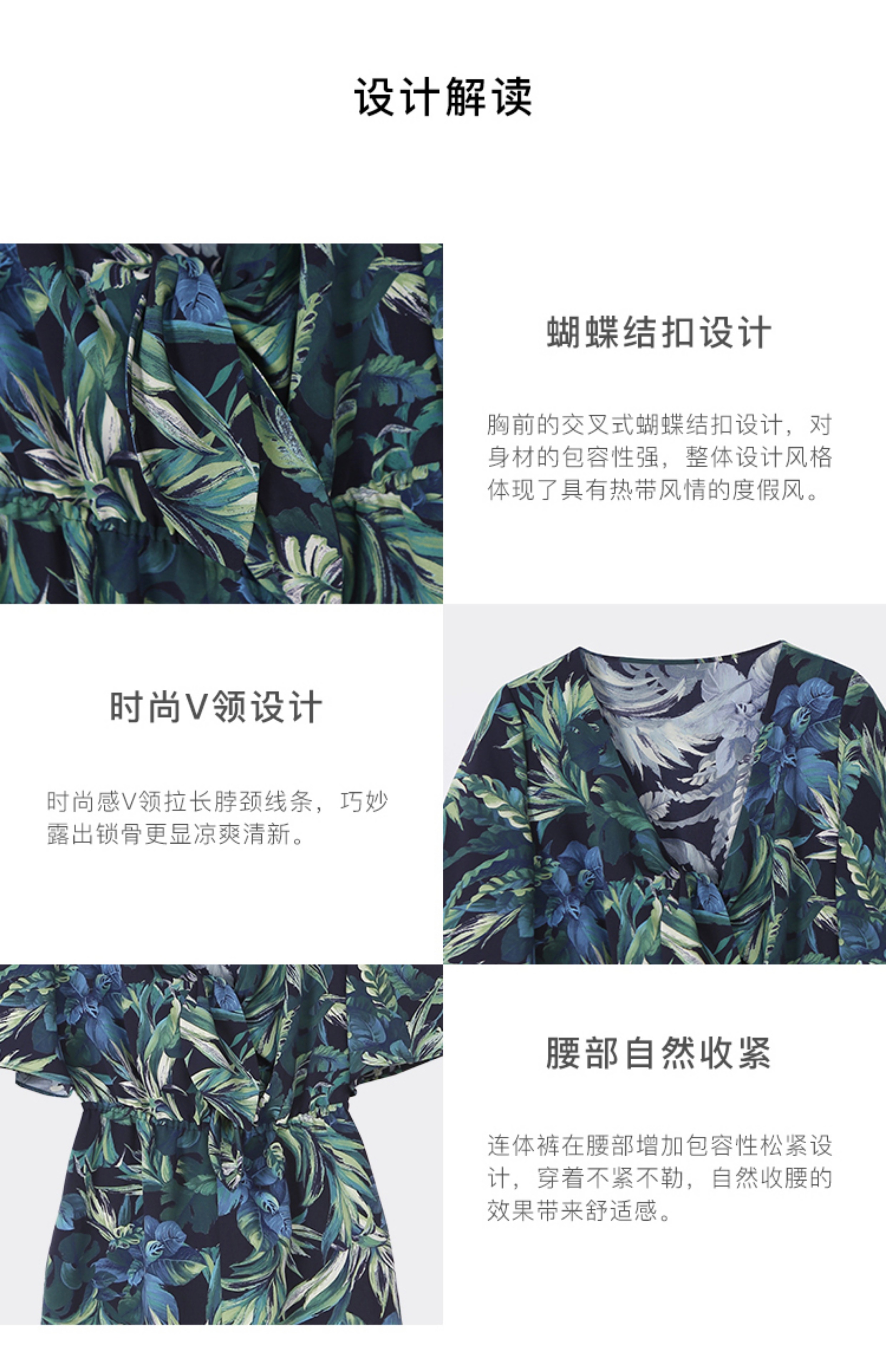 RSG郭培成衣品牌度假风丛林印花V领阔腿连体裤