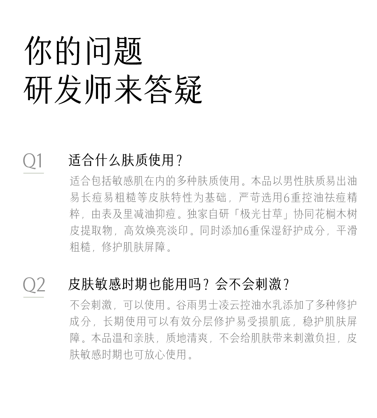 【双十二狂欢节】谷雨男士控油乳 横扫油·痘·糙 细肤更强韧