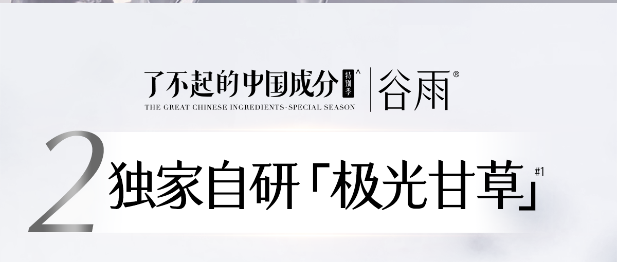 - 谷雨,更适合中国人肤质的植萃美白。专研中华珍稀美白植萃光甘草定,深入研究中国人肤质特点,打造中国女性独有的仙气白。