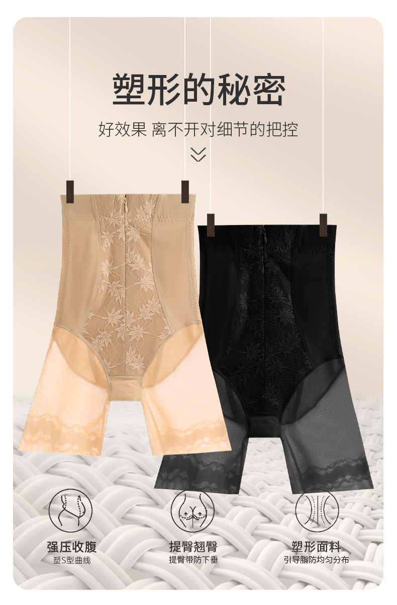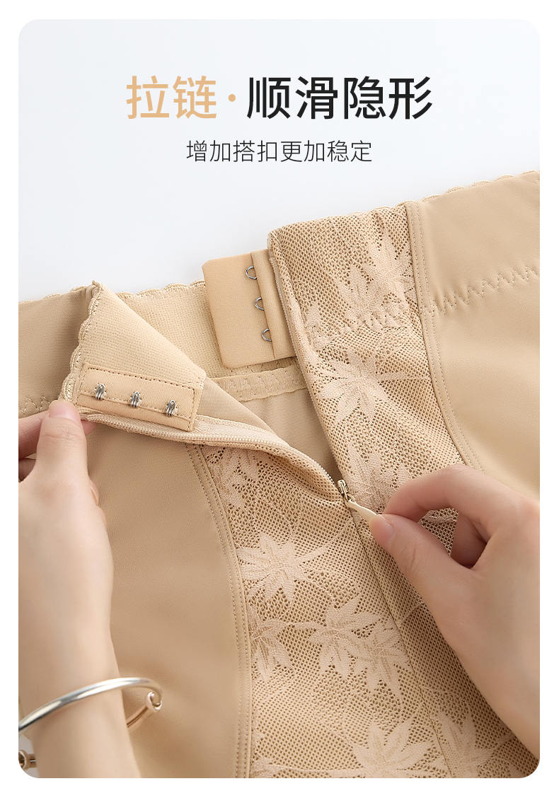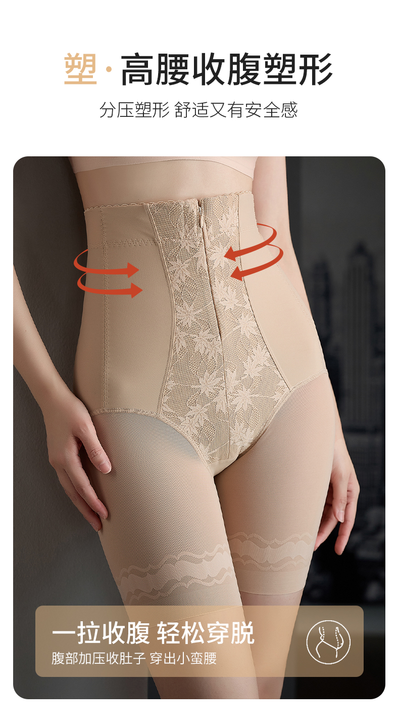 新款轻薄高腰收腹束裤透气桑蚕丝底裆带拉链排扣提臀收腰内裤收小肚子SKX05