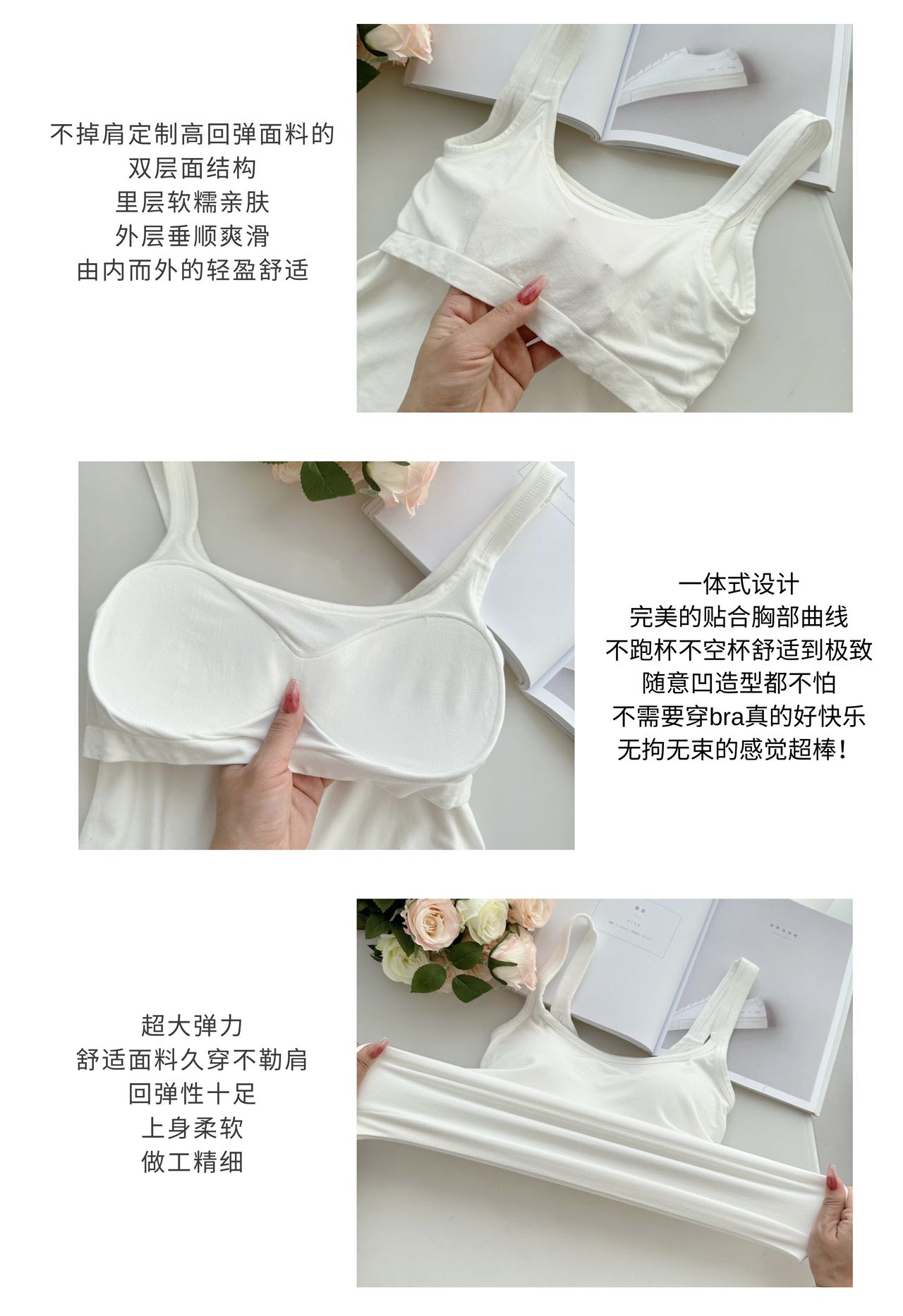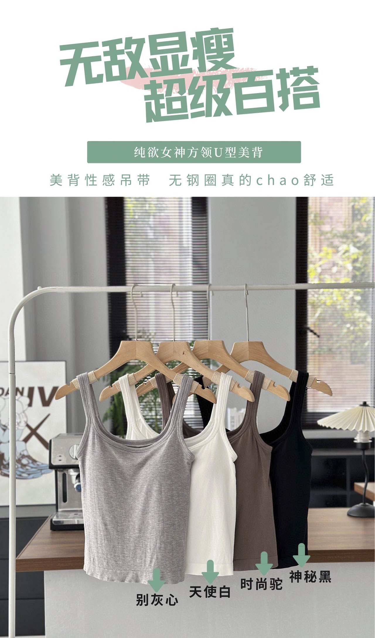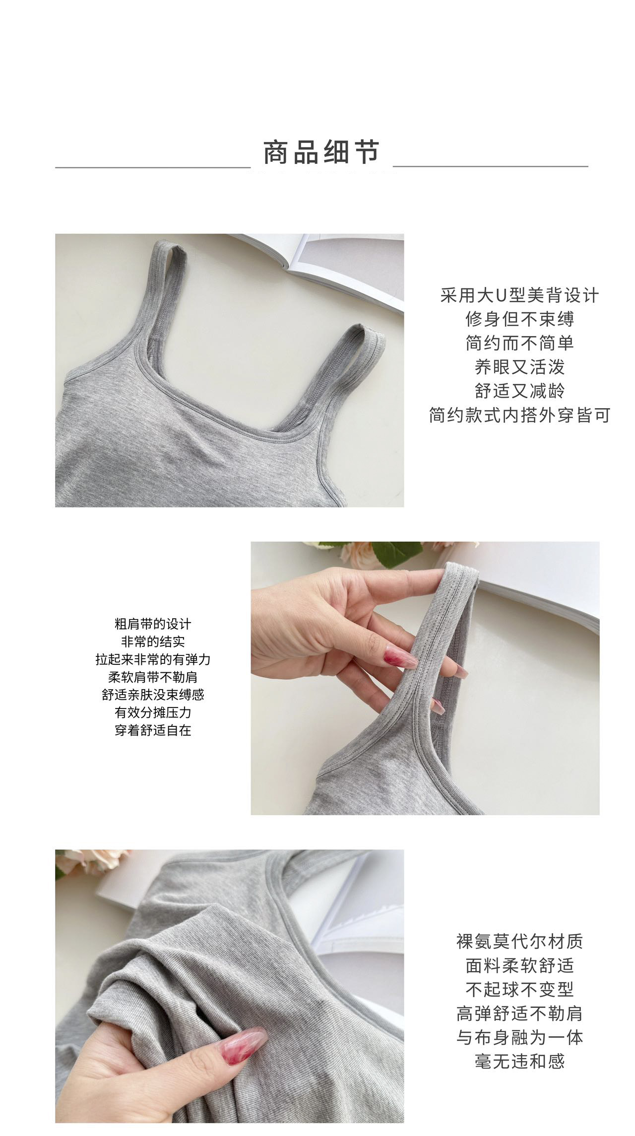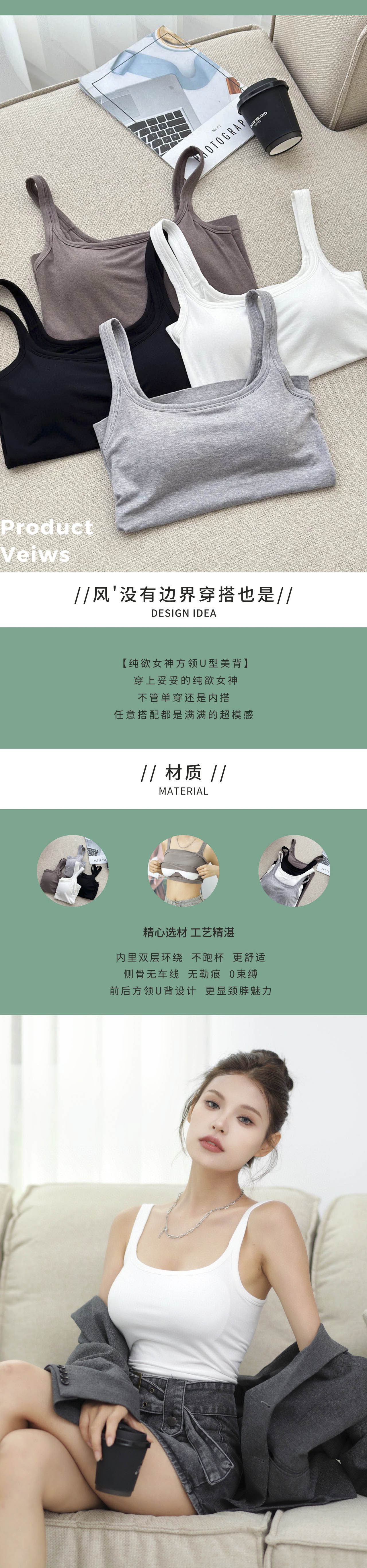 新款U型美背女吊带莫代尔胸垫文胸一体夏季可外穿打底BXD5066