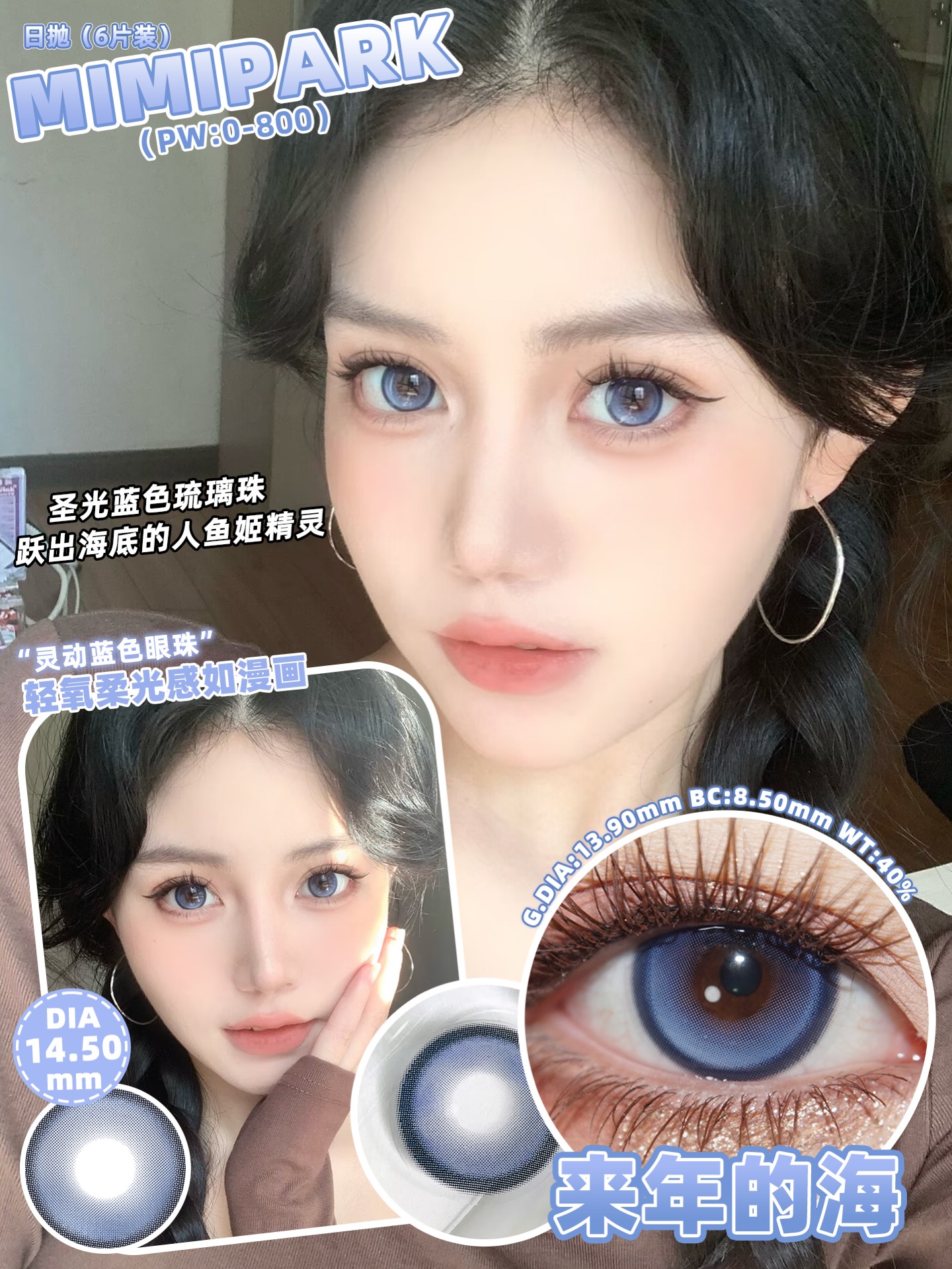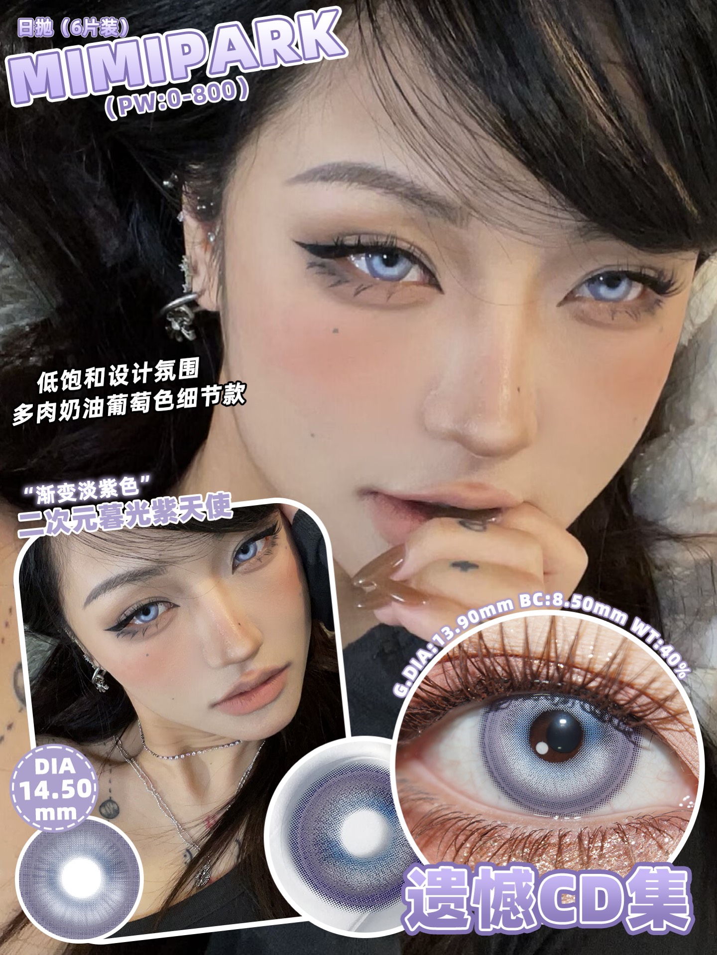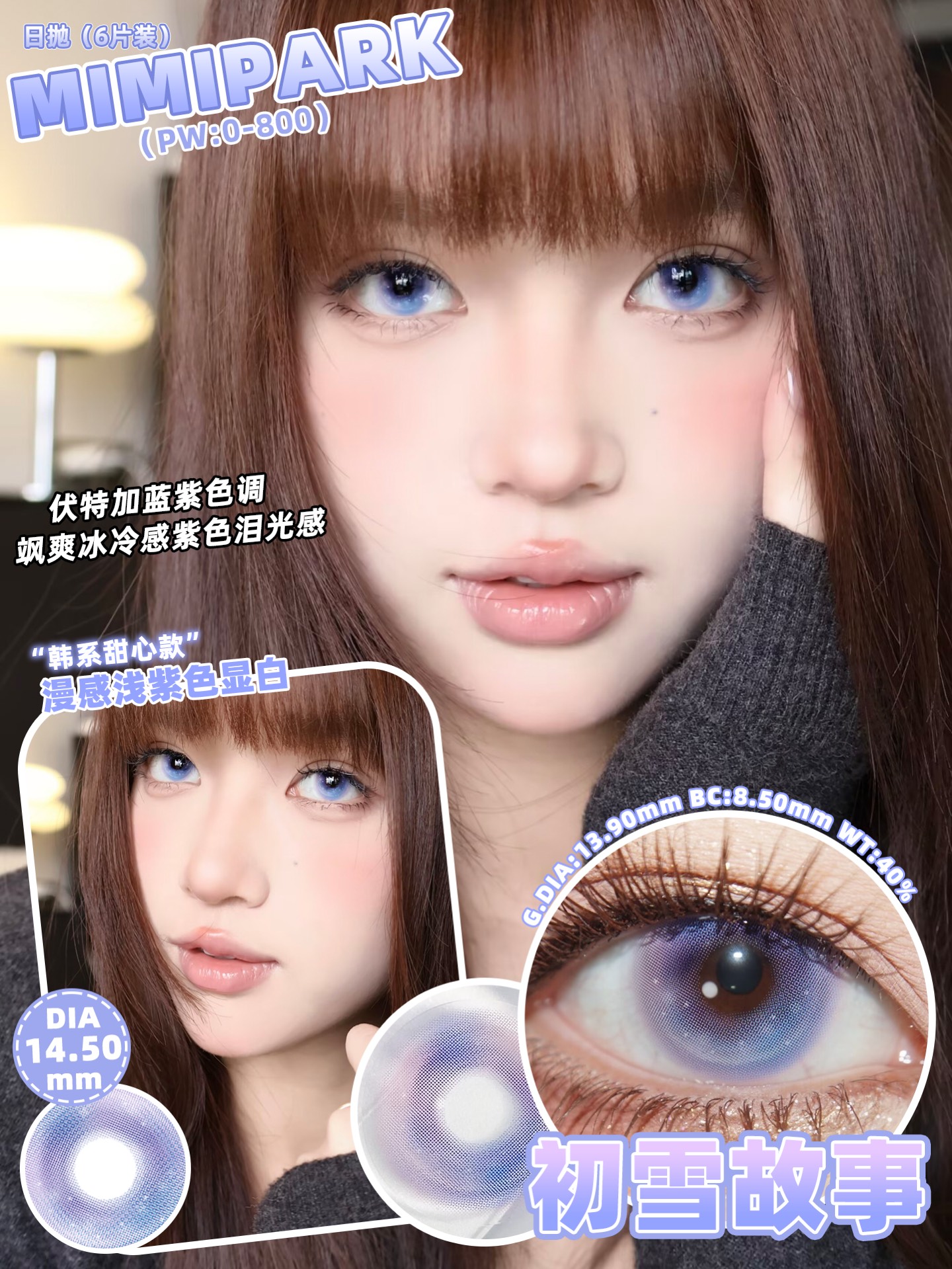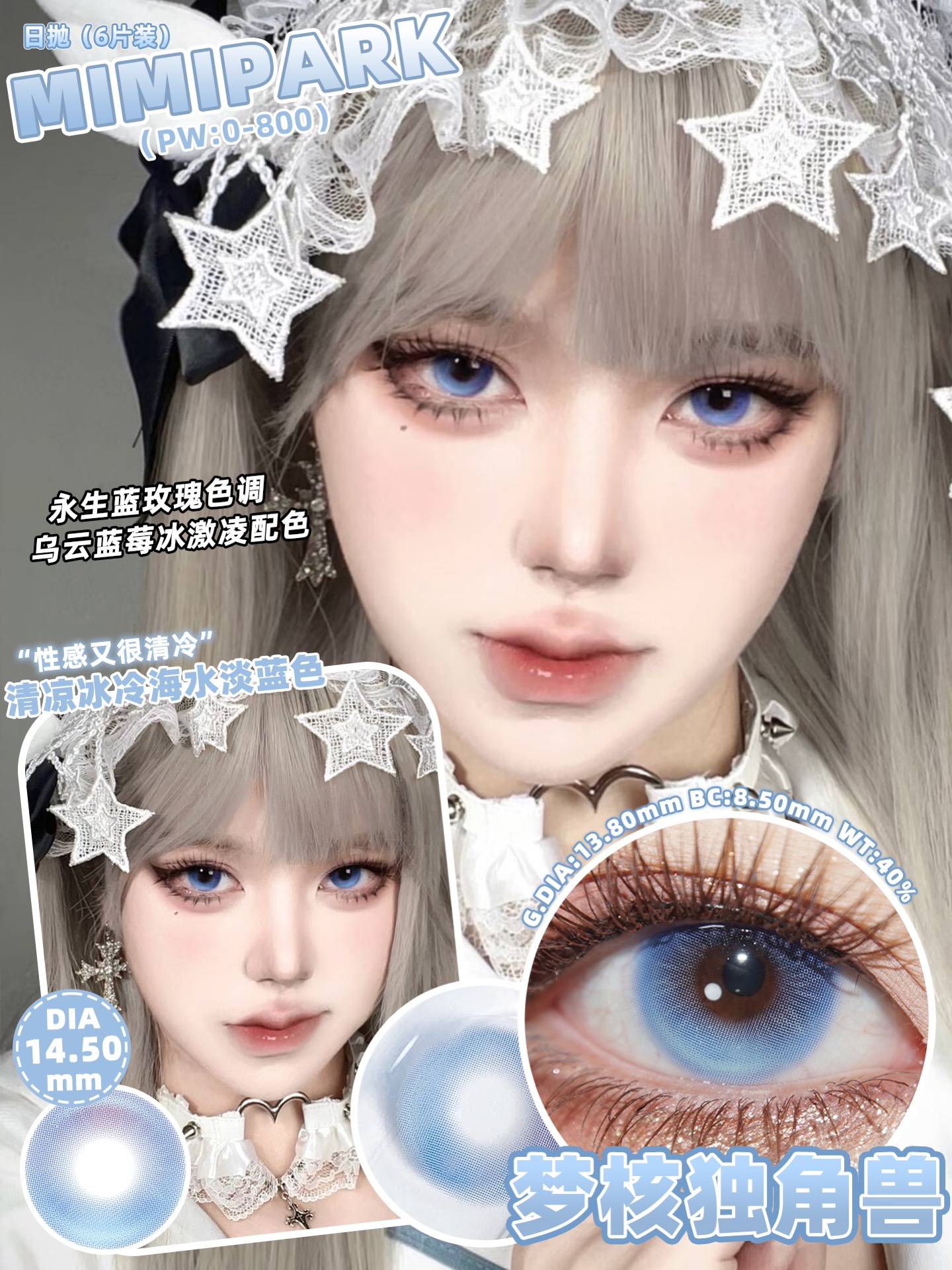 mimipark日抛 6片装 来年的海/梦核独角兽/午夜巴黎/初雪故事/被爱的你/漫画小桃夜/梦游机械姬/遗憾CD集/心想事成 14.2mm-14.5mm 日抛无售后!!蓝绿灰紫粉棕