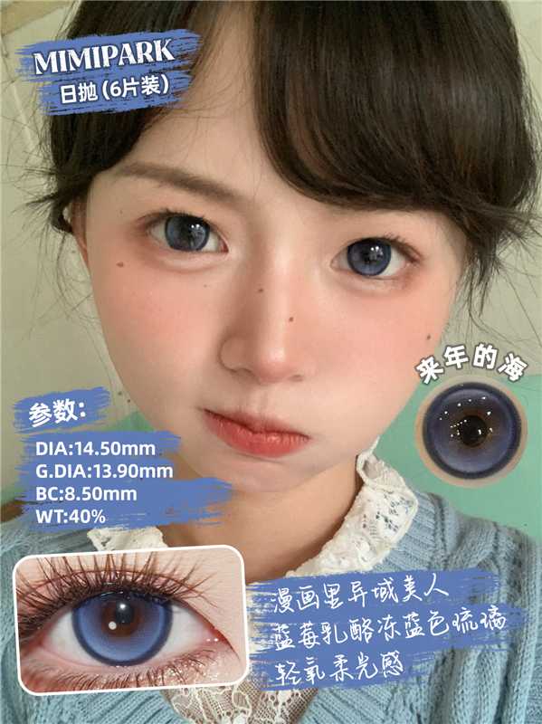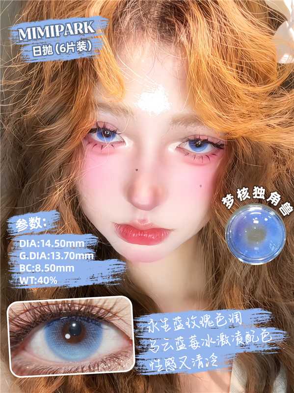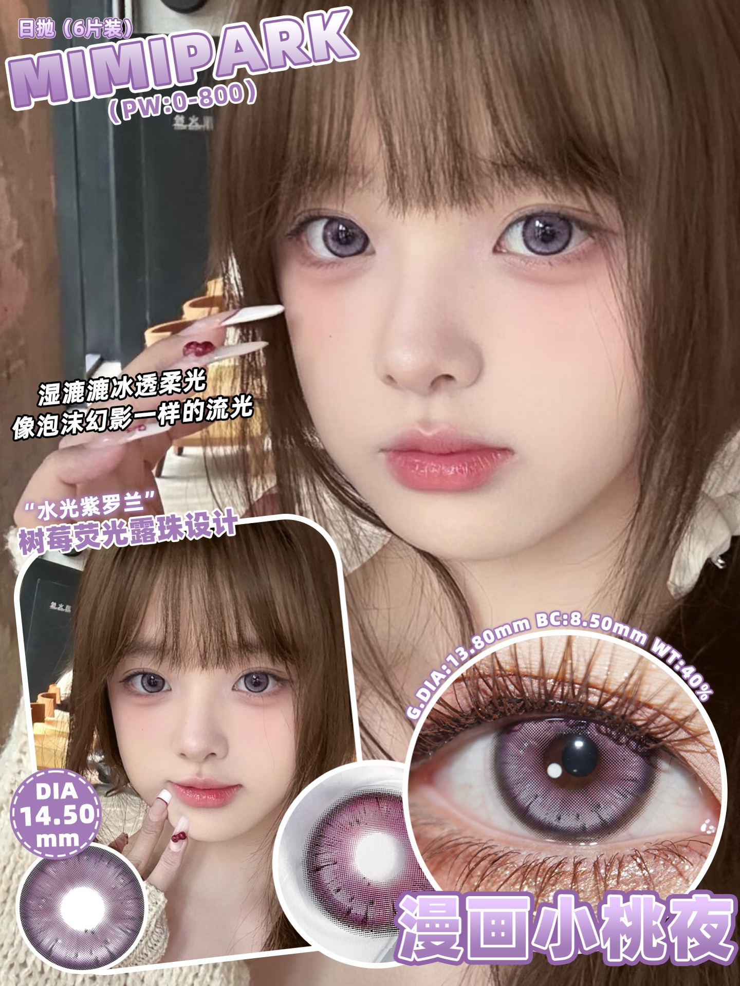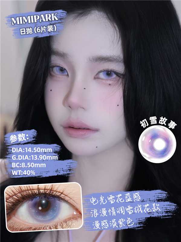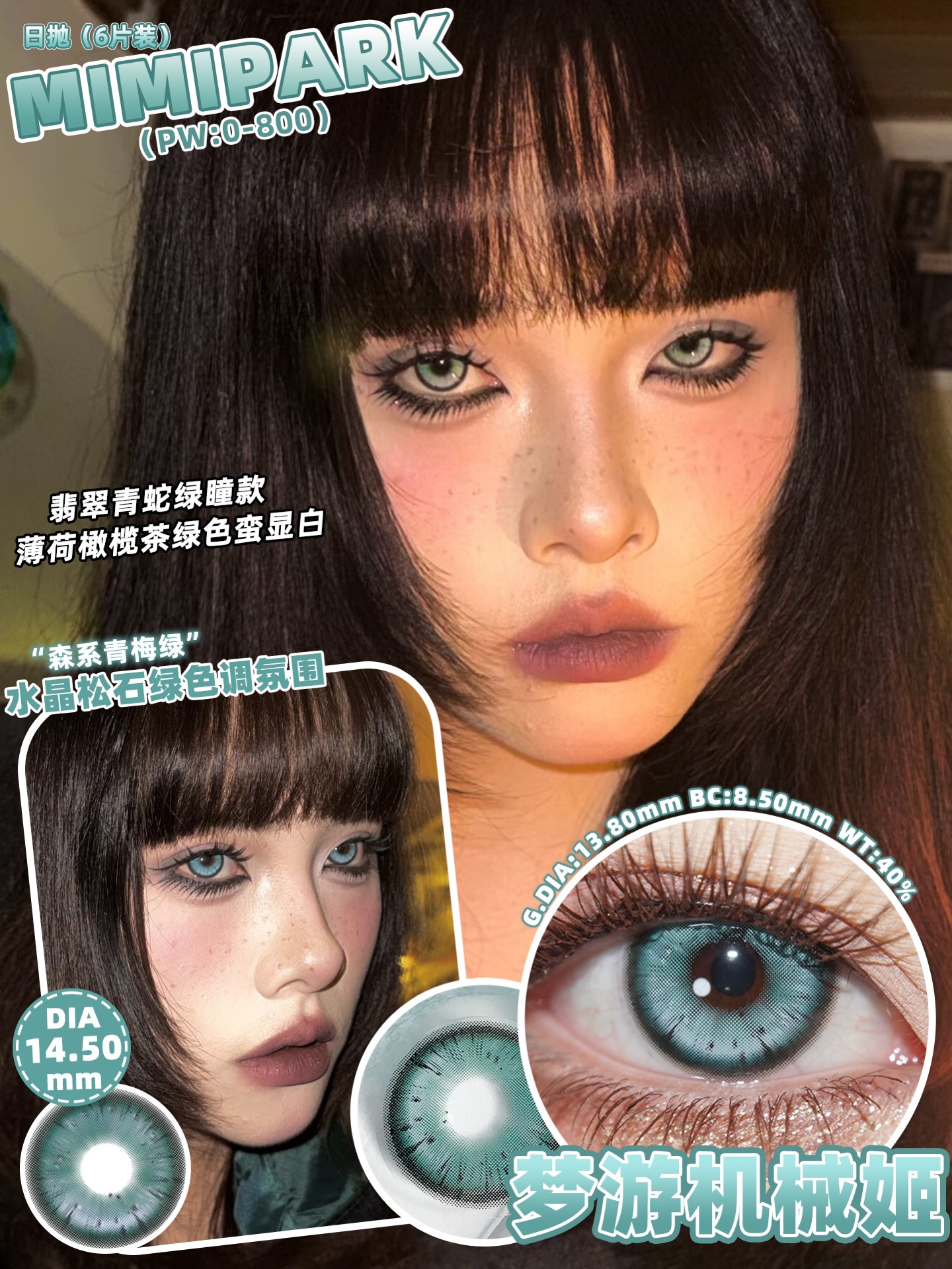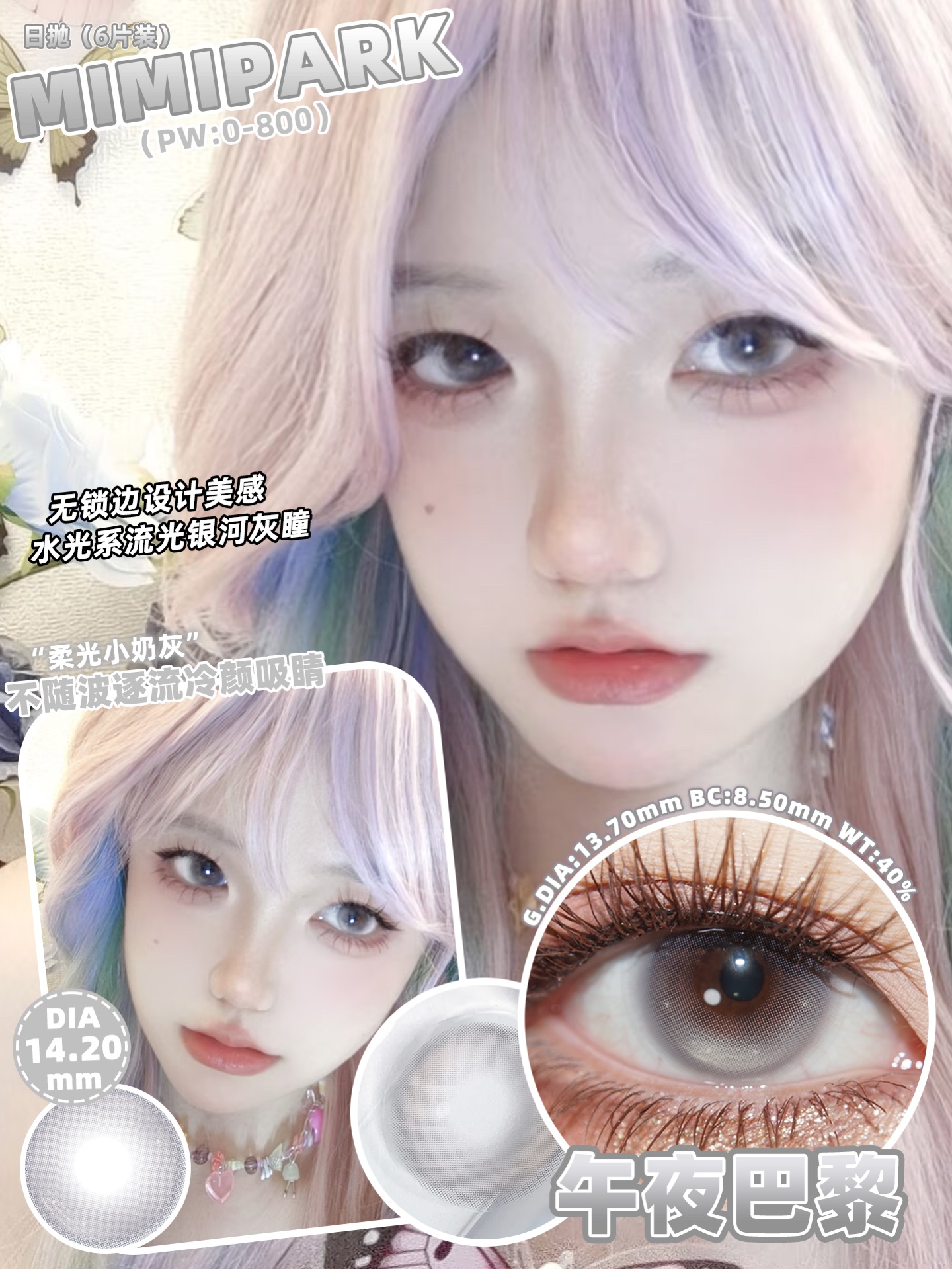 mimipark日抛 6片装 来年的海/梦核独角兽/午夜巴黎/初雪故事/被爱的你/漫画小桃夜/梦游机械姬/遗憾CD集/心想事成 14.2mm-14.5mm 日抛无售后!!蓝绿灰紫粉棕