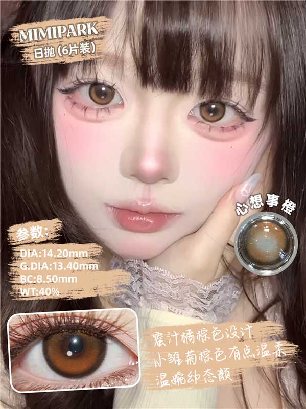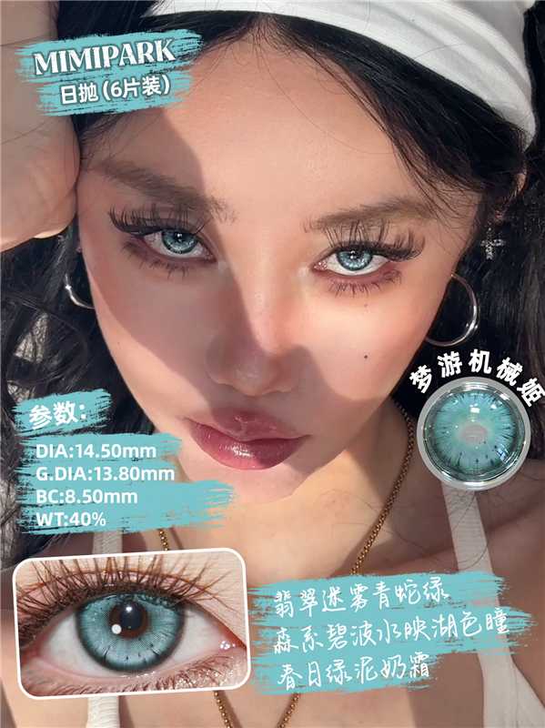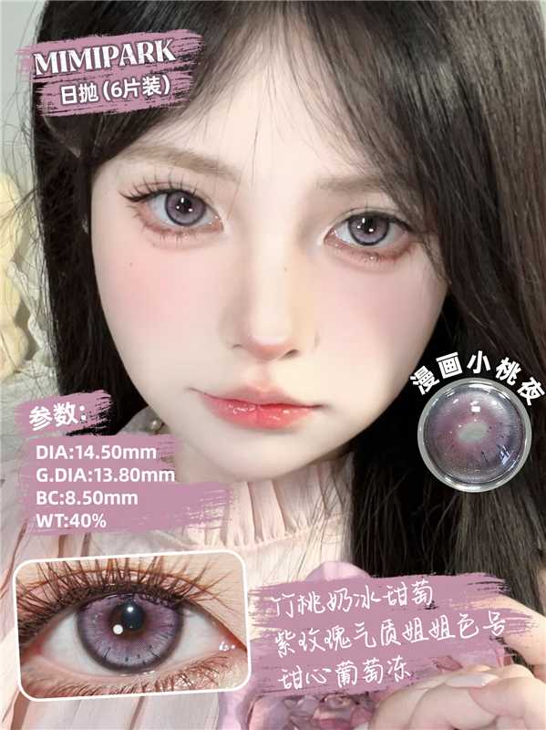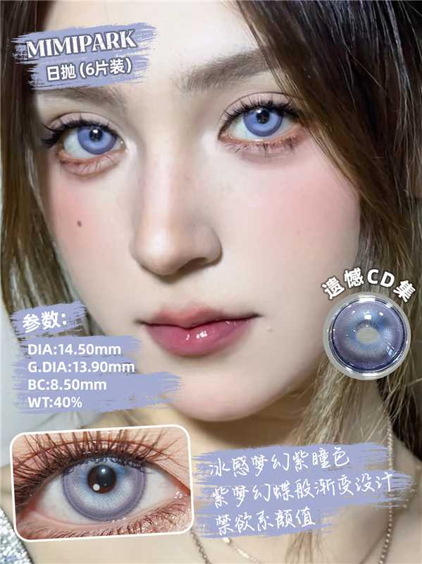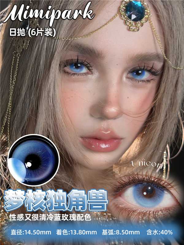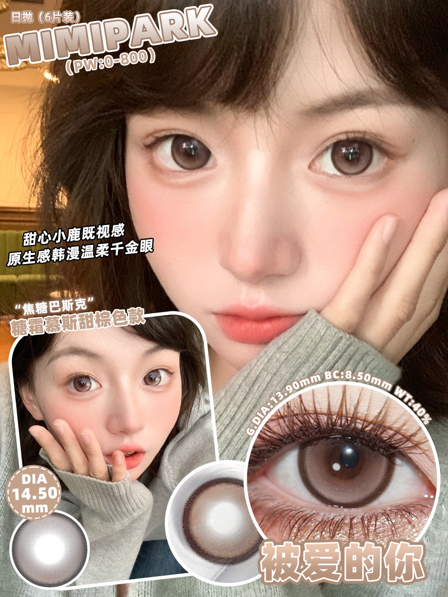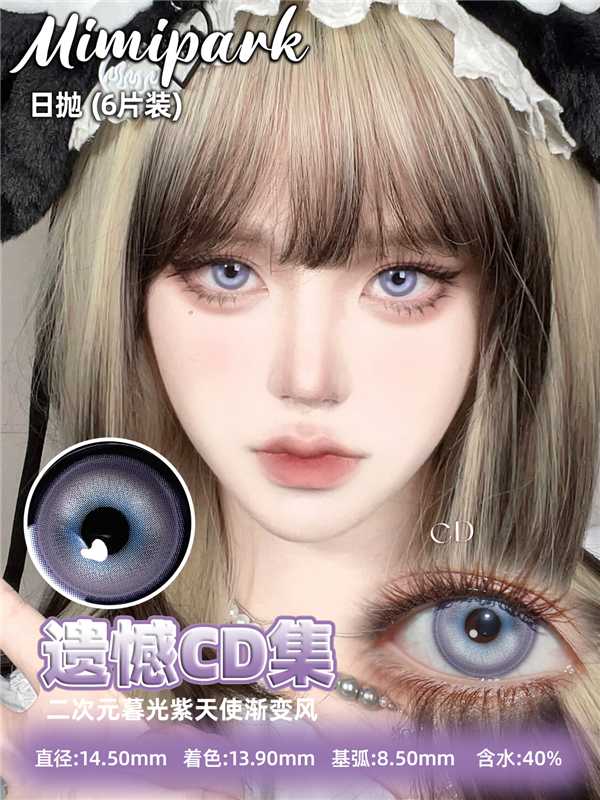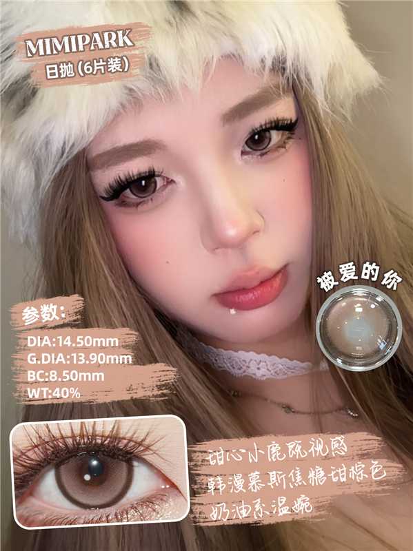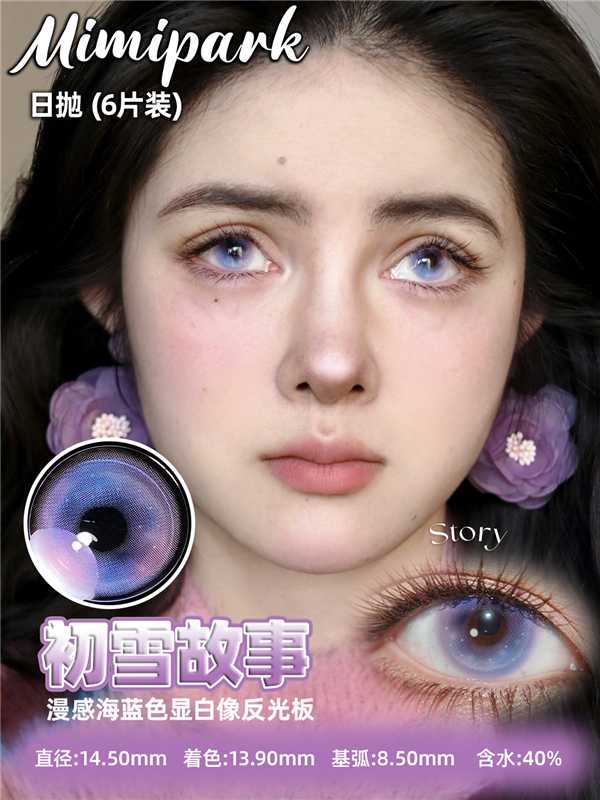 mimipark日抛 6片装 来年的海/梦核独角兽/午夜巴黎/初雪故事/被爱的你/漫画小桃夜/梦游机械姬/遗憾CD集/心想事成 14.2mm-14.5mm 日抛无售后!!蓝绿灰紫粉棕