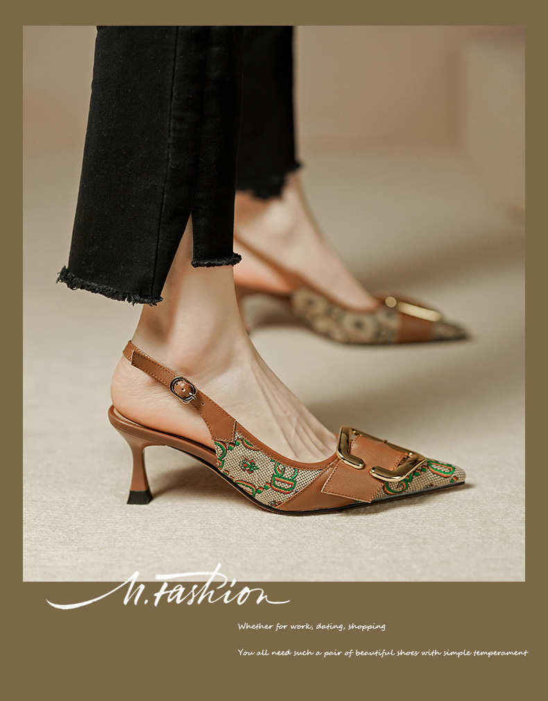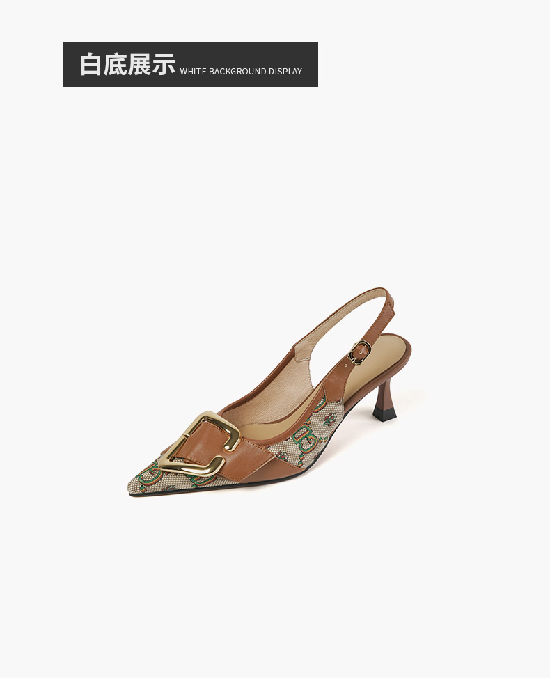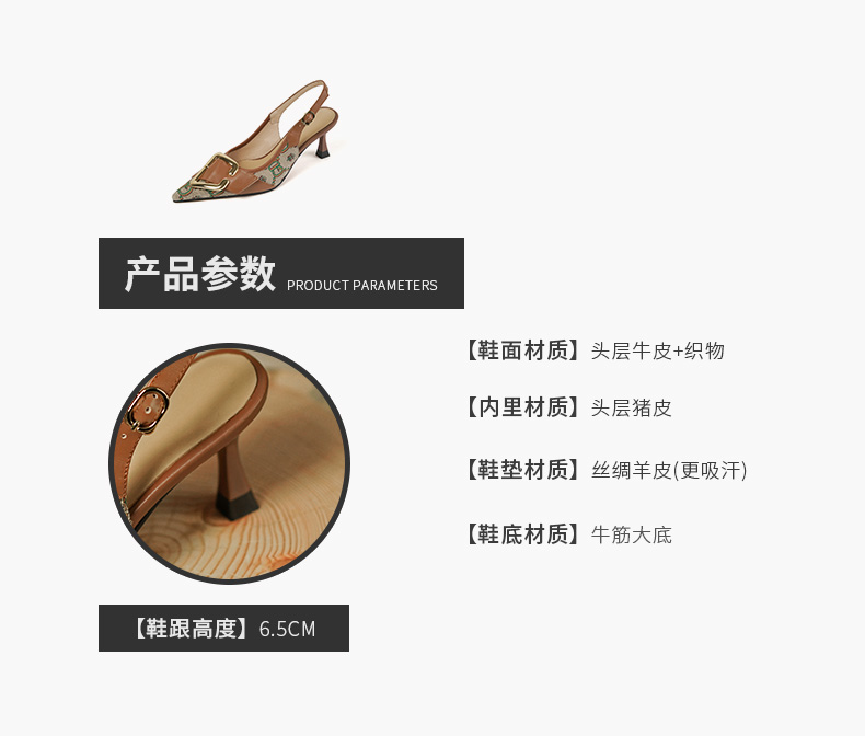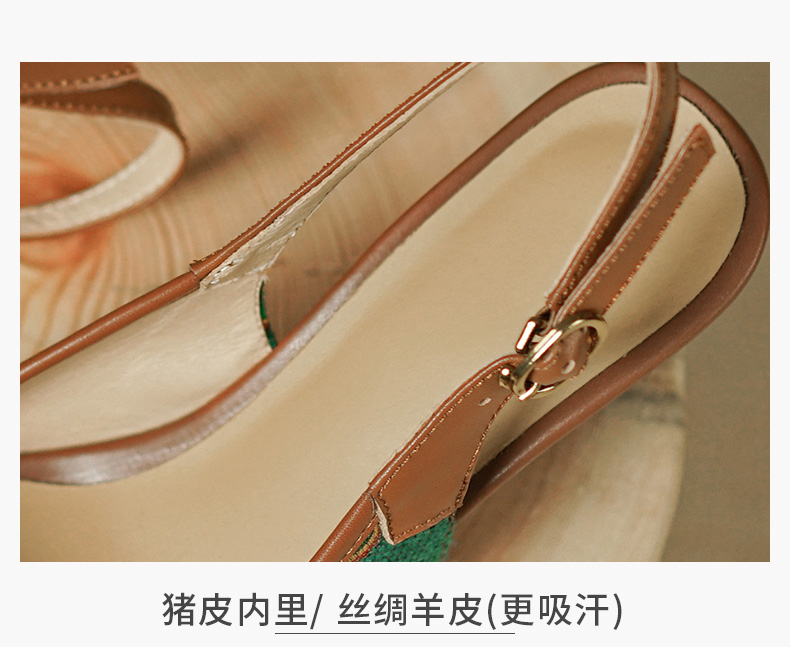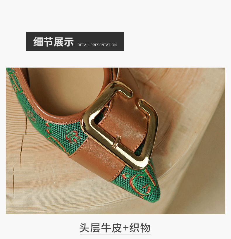 复古流行织物+头层牛皮后空单鞋PS769