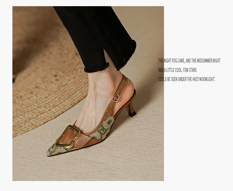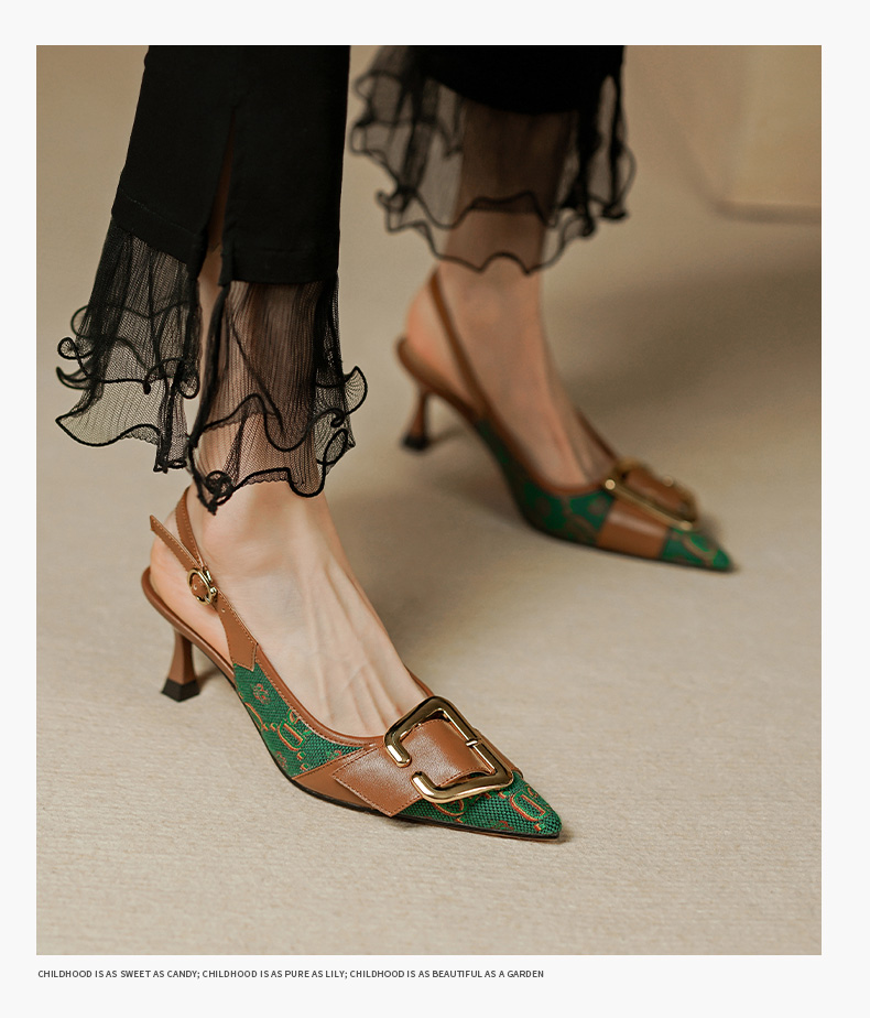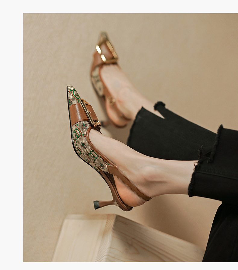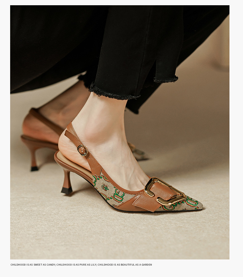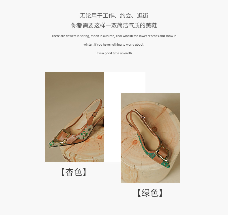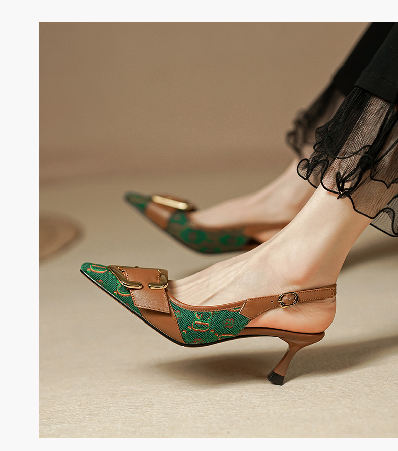 复古流行织物+头层牛皮后空单鞋PS769