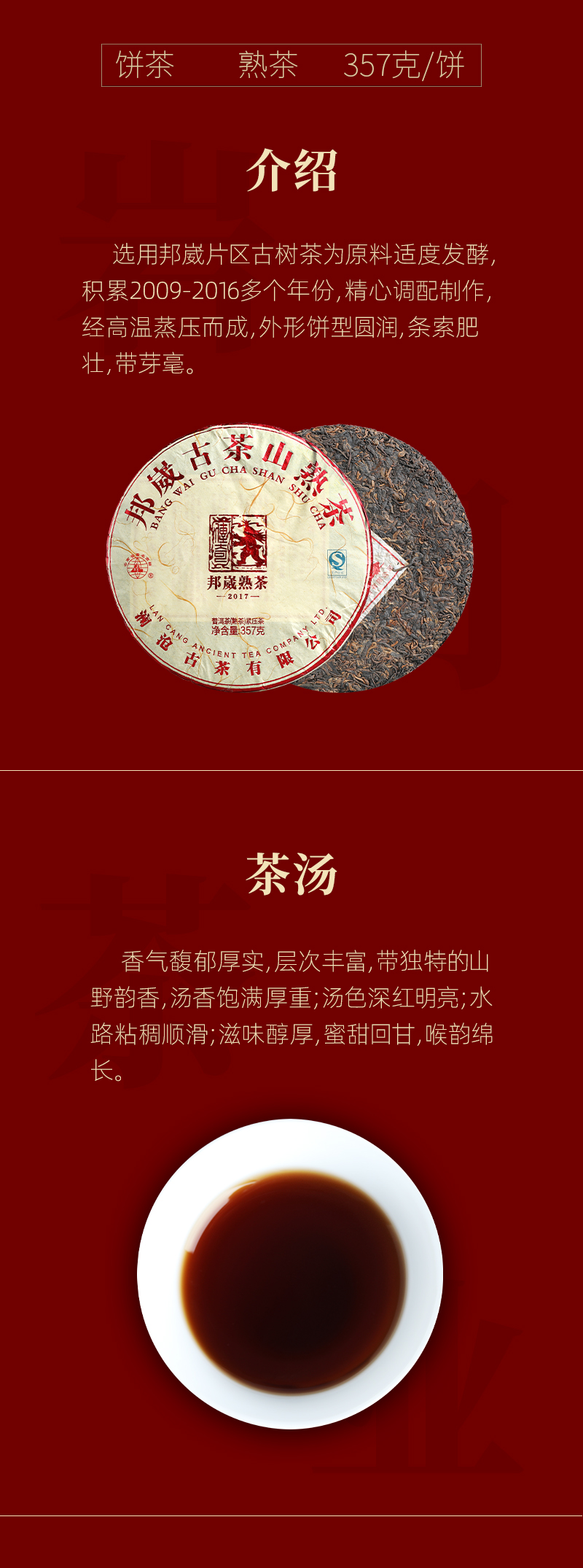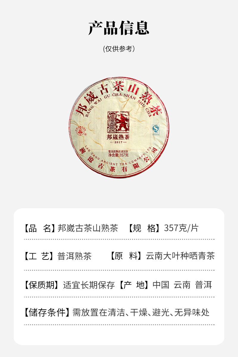 澜沧古茶2017年邦崴古树熟茶大饼普洱茶云南茶叶纯料厚重