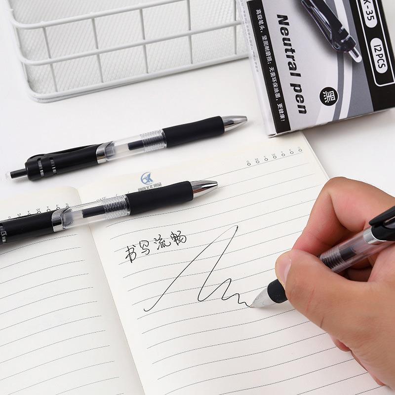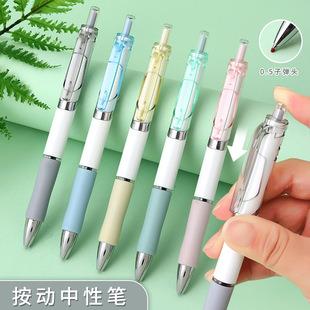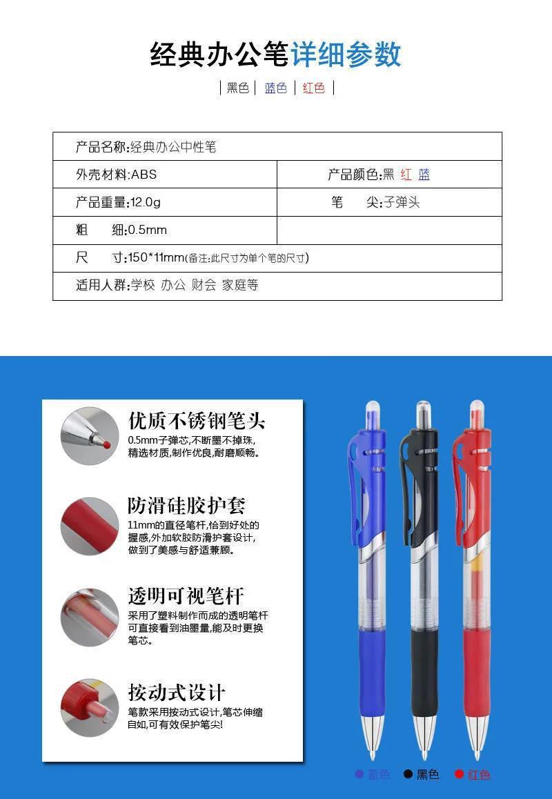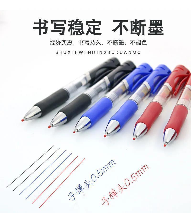 按动中性笔0.5mm笔芯圆珠笔商务签字笔黑红蓝碳素笔学习办公文具