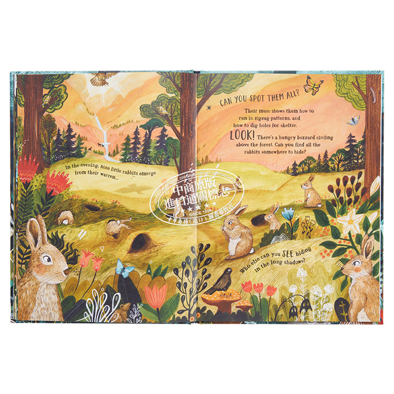 The Secret Forest 将带您和您的孩子踏上穿越宁静林地的神奇旅程。黎明时分,一只年轻的小鹿和他的妈妈开始了,当我们在森林中盘旋一天时,你会遇到狐狸和蝴蝶、熊和蜜蜂、松鼠和大量鸟类——一切都在太阳落山和月亮再次落山之前当夜间生物出来玩耍时,它从树上升起。这本非小说类的“搜索与查找”图画书专注于成年动物教他们的幼崽什么,将为大大小小的人们提供数小时的乐趣,以及对自然世界的欣赏。