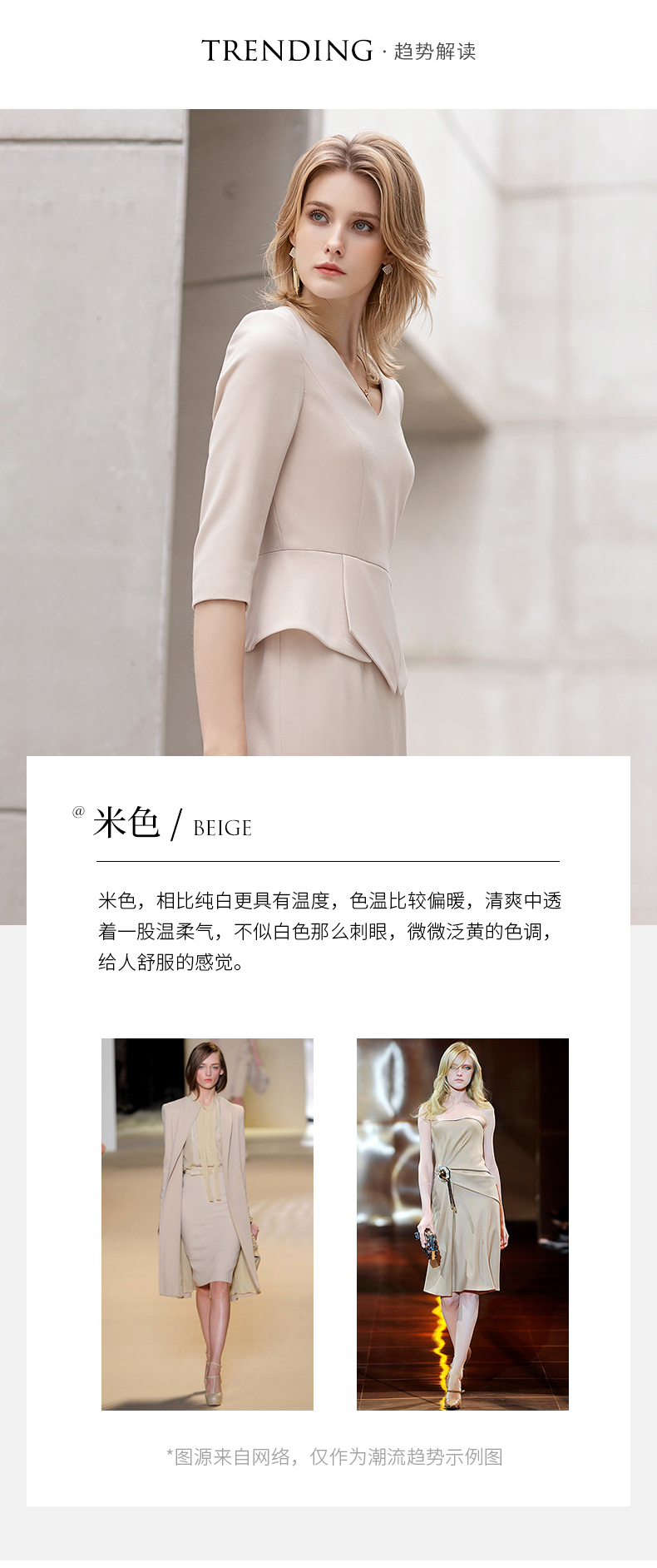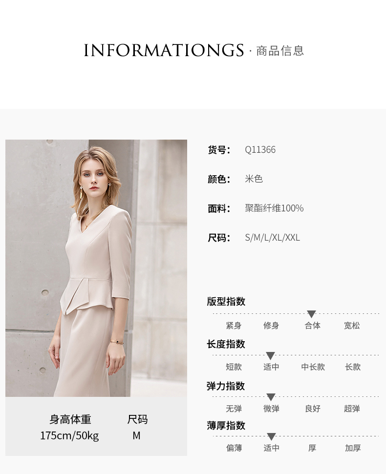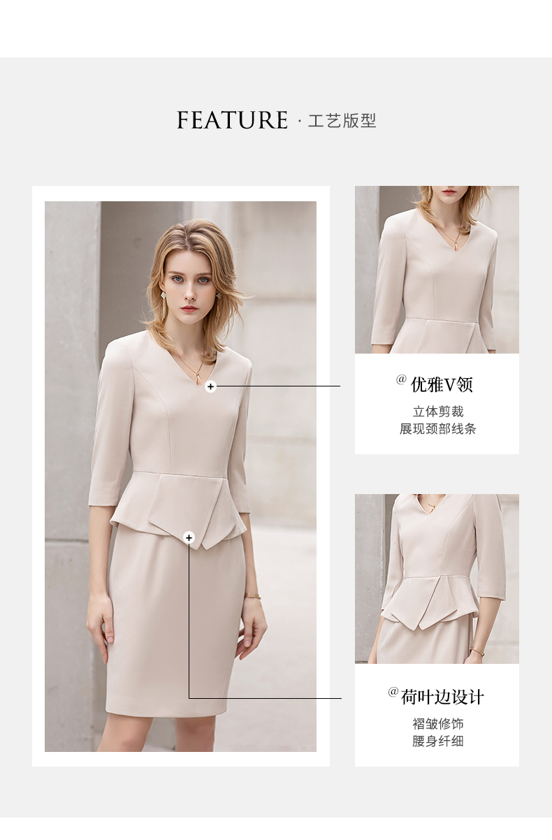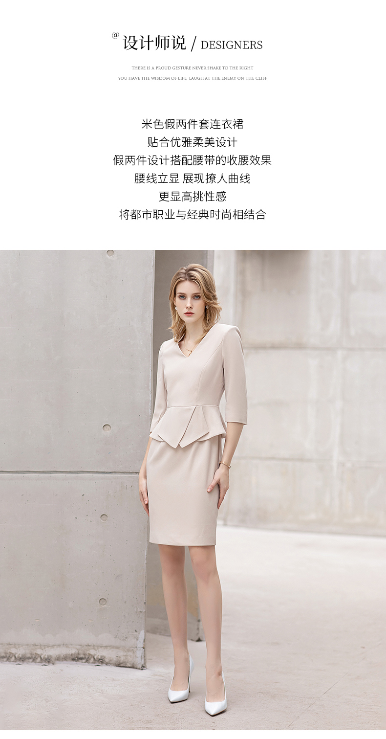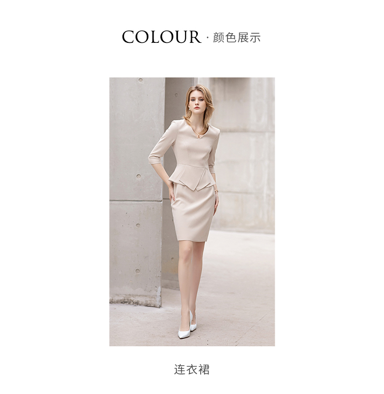 IWY/高端气质卡其色职业连衣裙女士七分袖收腰显瘦售楼部正装西装套裙Q11366