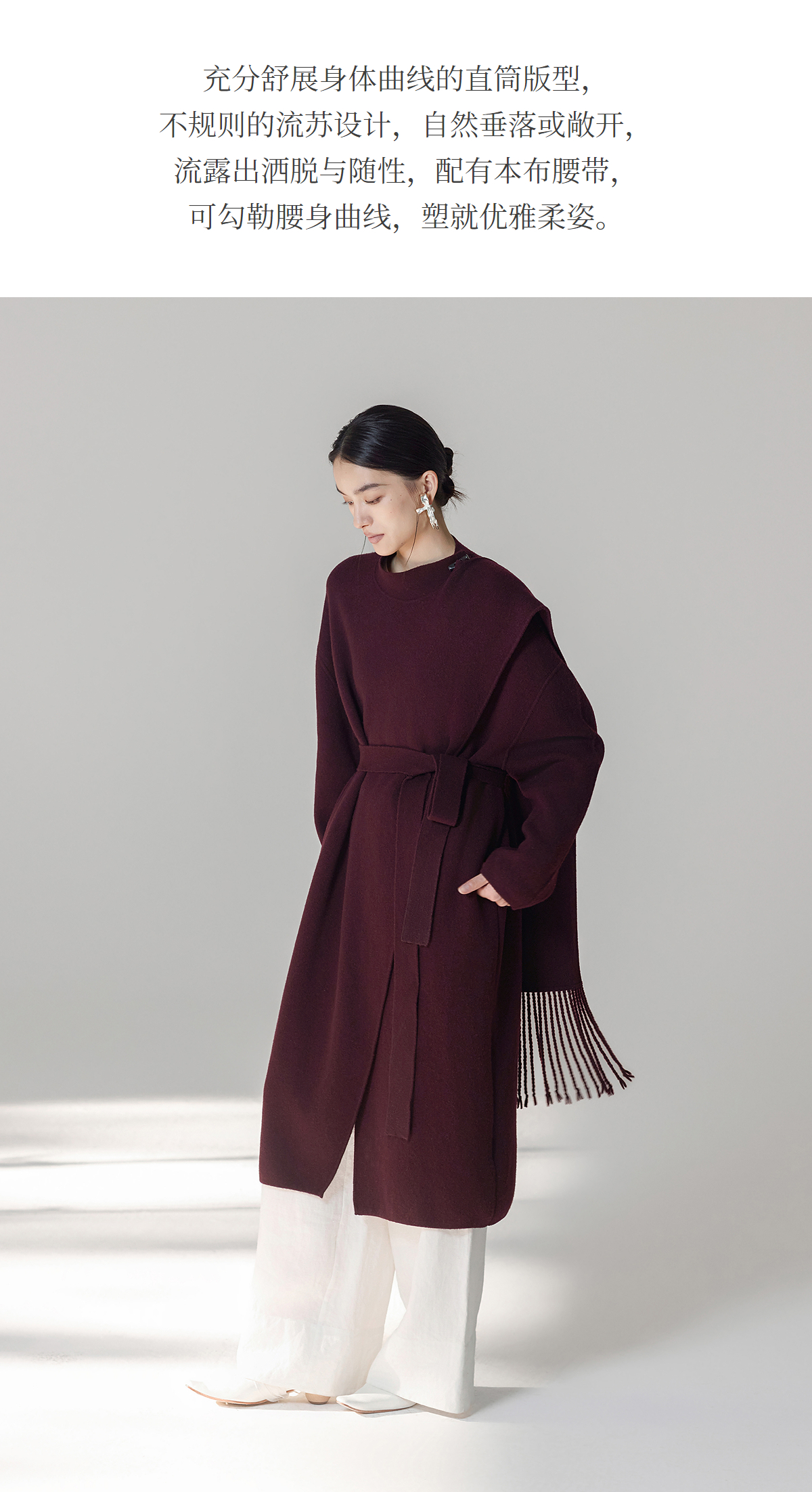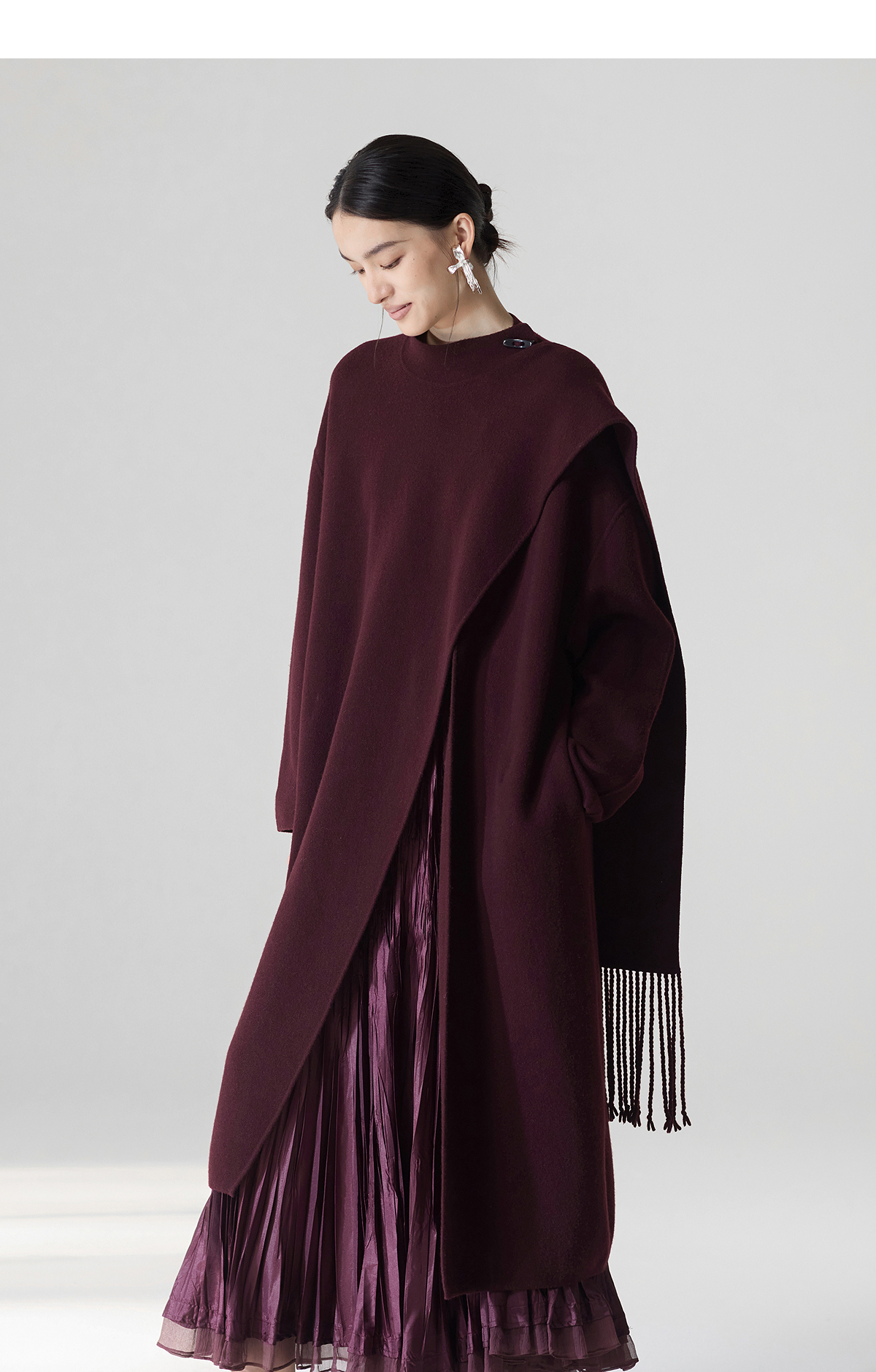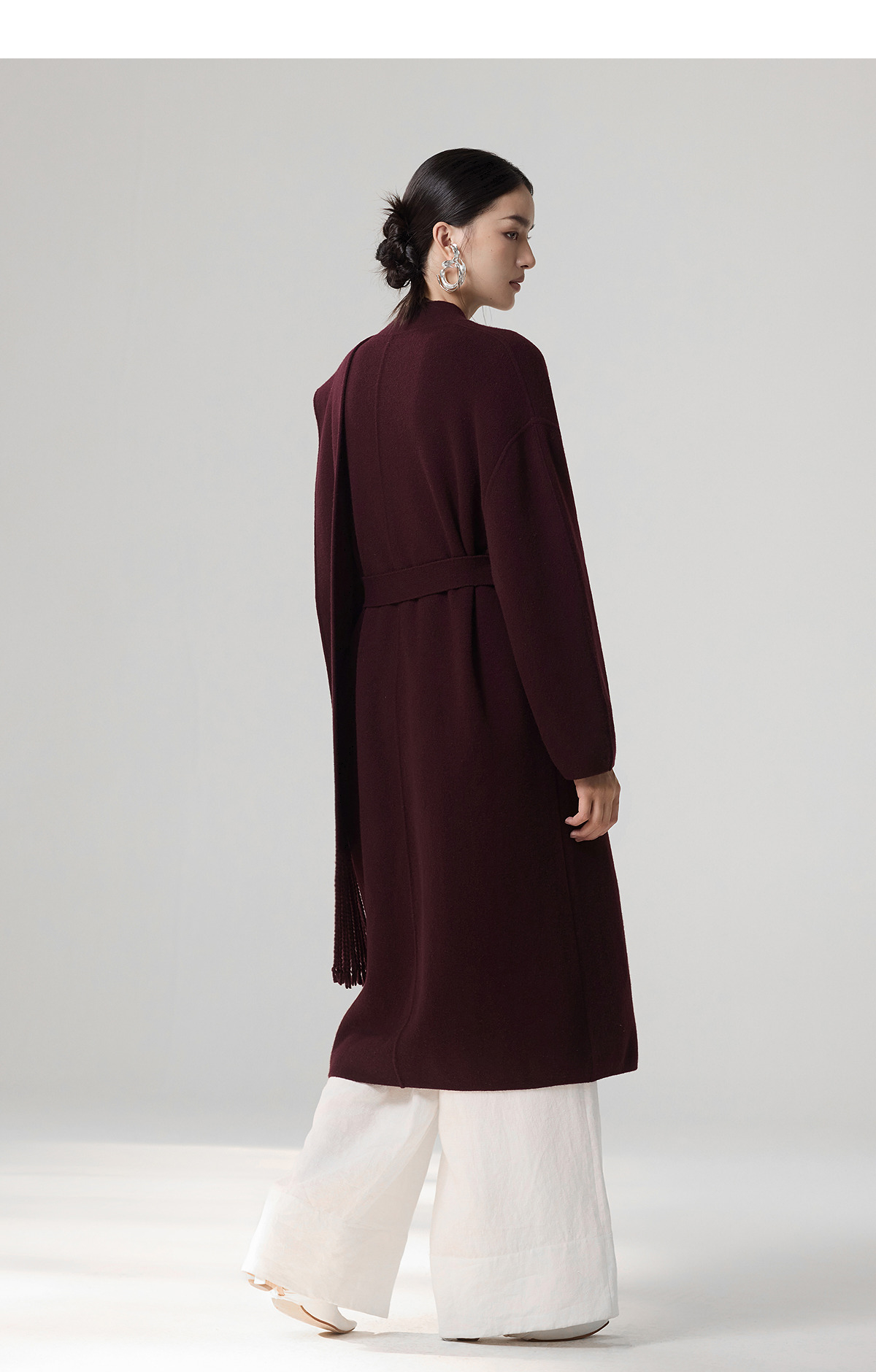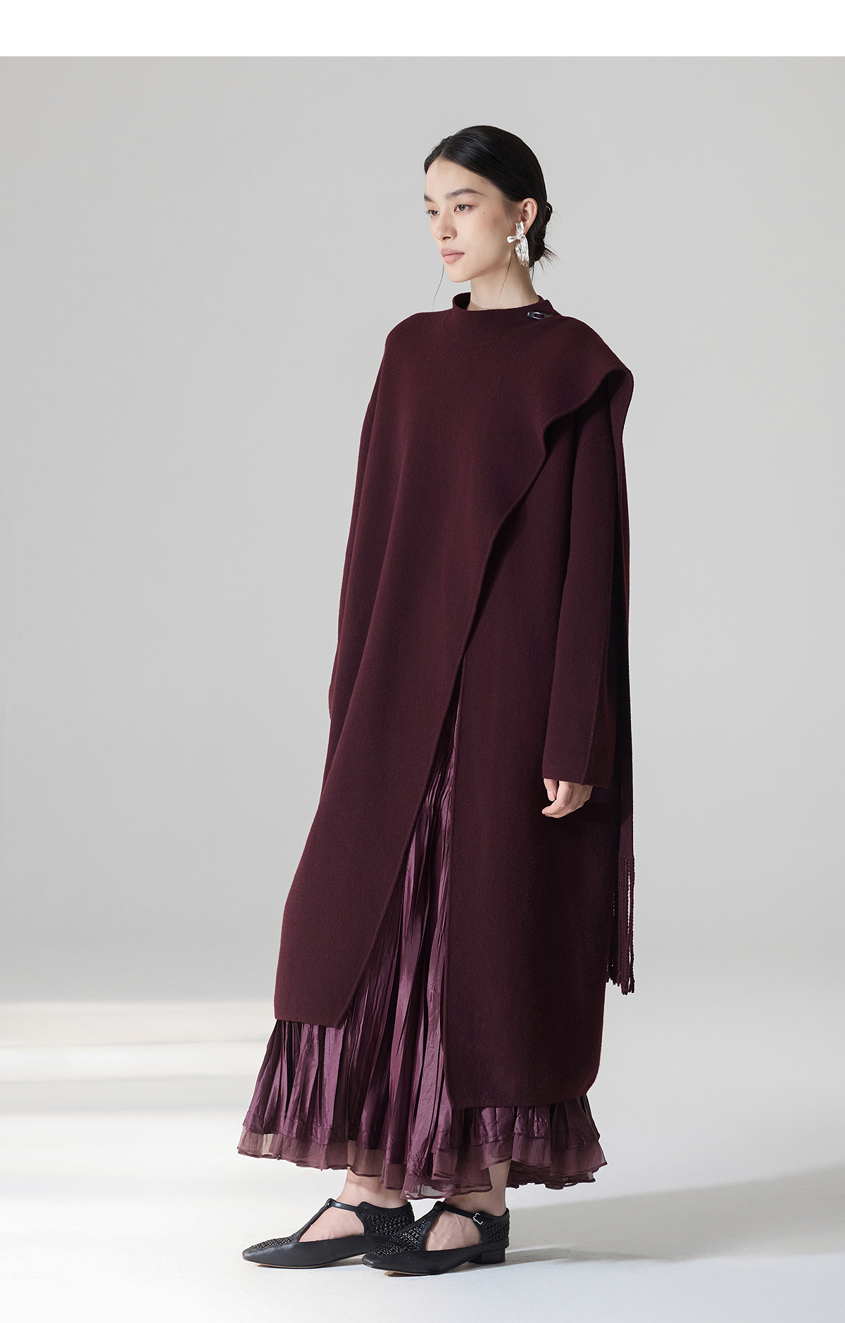 【林栖设计小店】优雅羊绒开衫不规则流苏百搭显瘦2025秋冬新款中长款大衣1954053