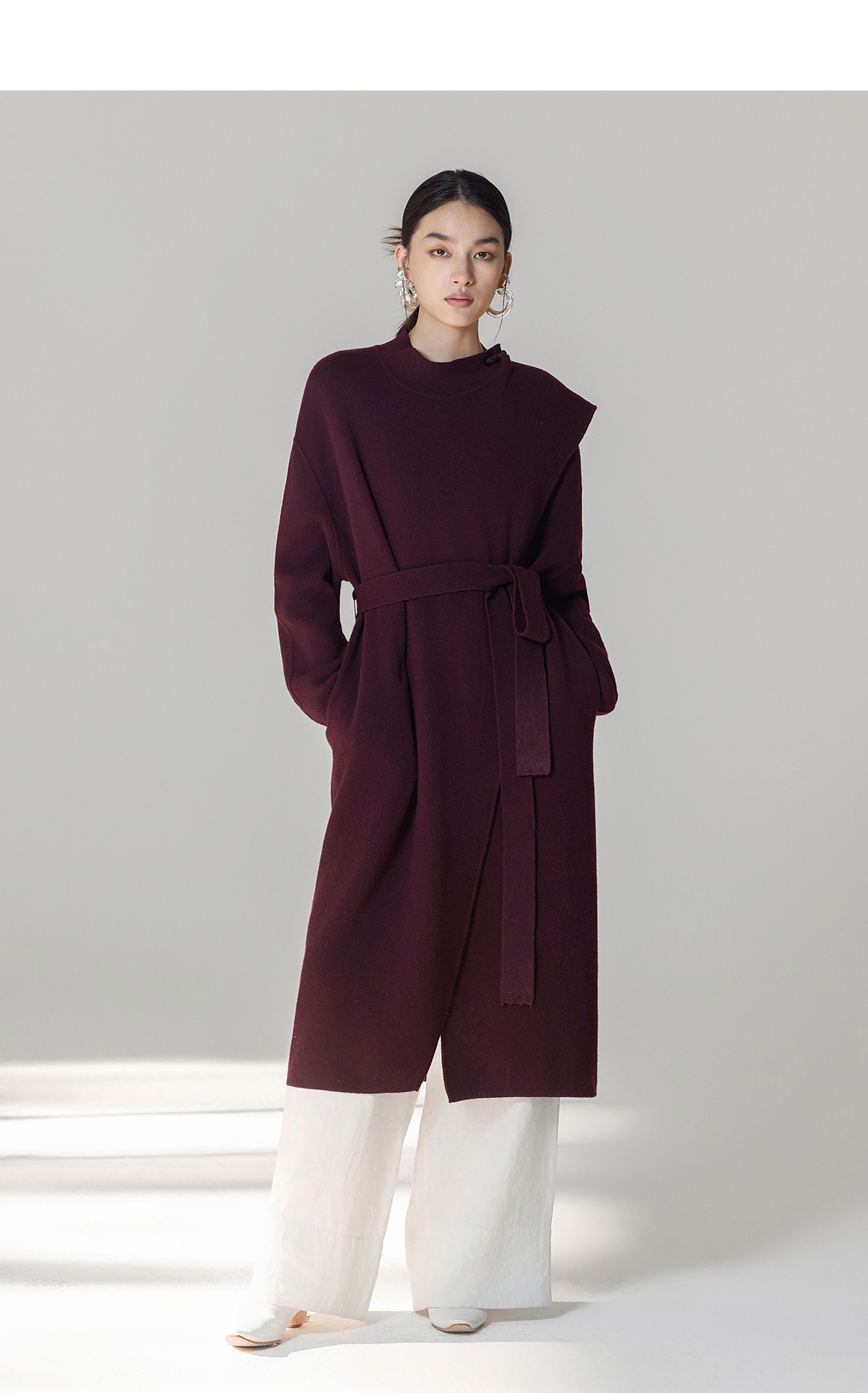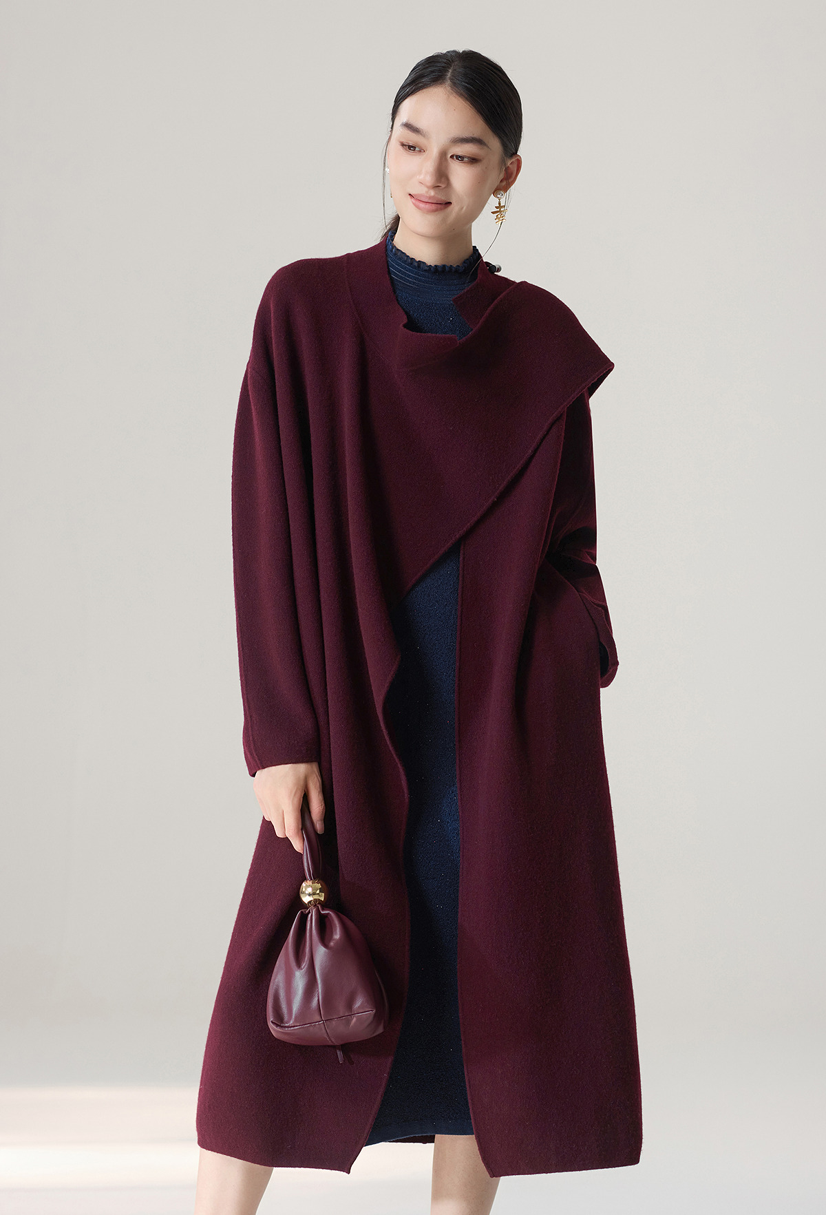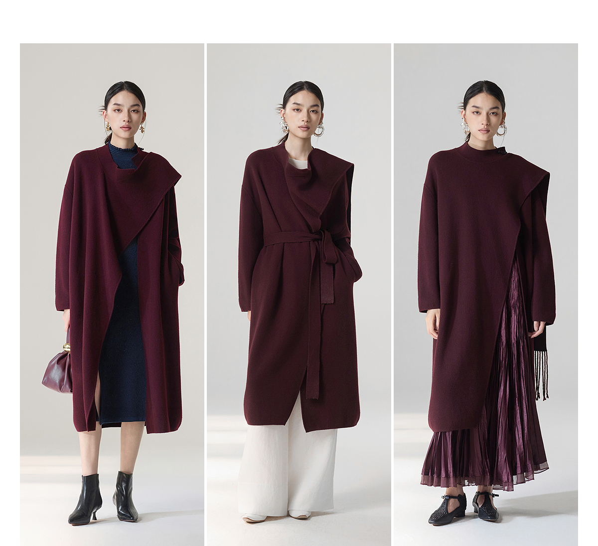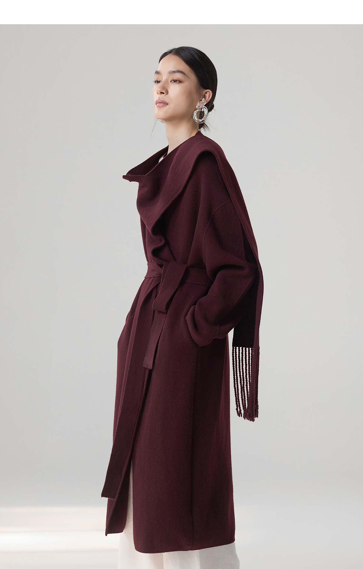 【林栖设计小店】优雅羊绒开衫不规则流苏百搭显瘦2025秋冬新款中长款大衣1954053