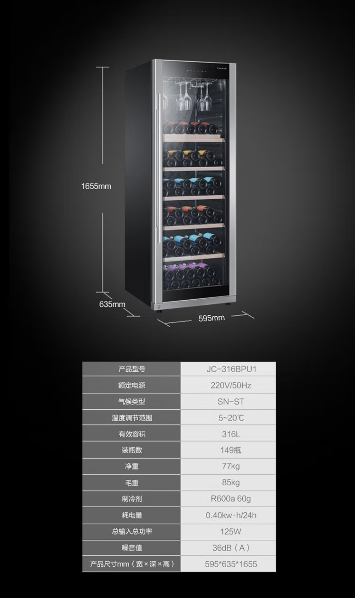 卡萨帝(Casarte)酒柜 JC-316BPU1