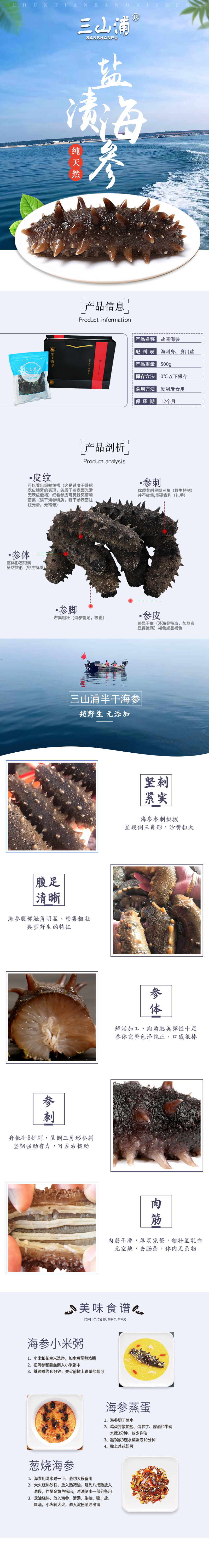 三山浦盐渍半干海参(30头)
