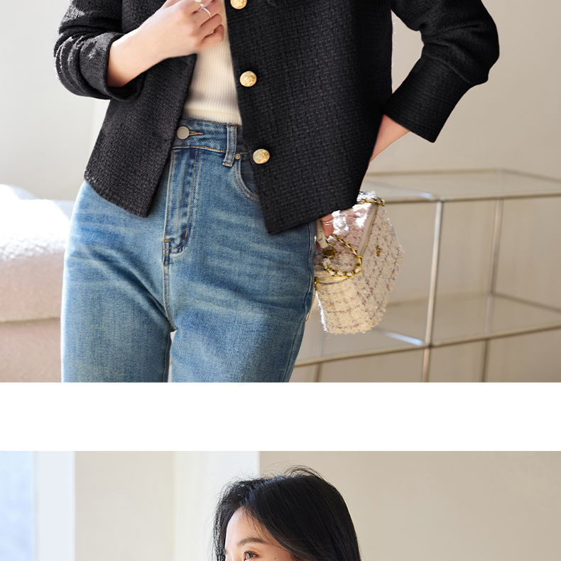 VICTORIA&VERA女装春季“法香告白”小香风高级感减龄金扣圆领短款外套 商品图5