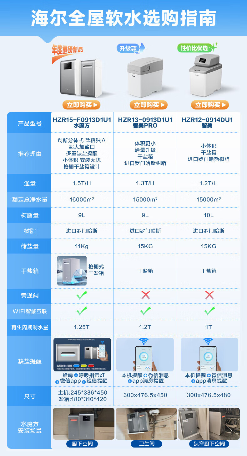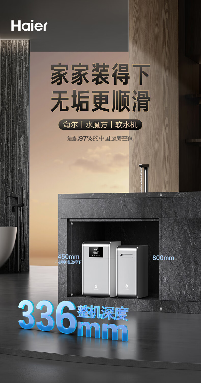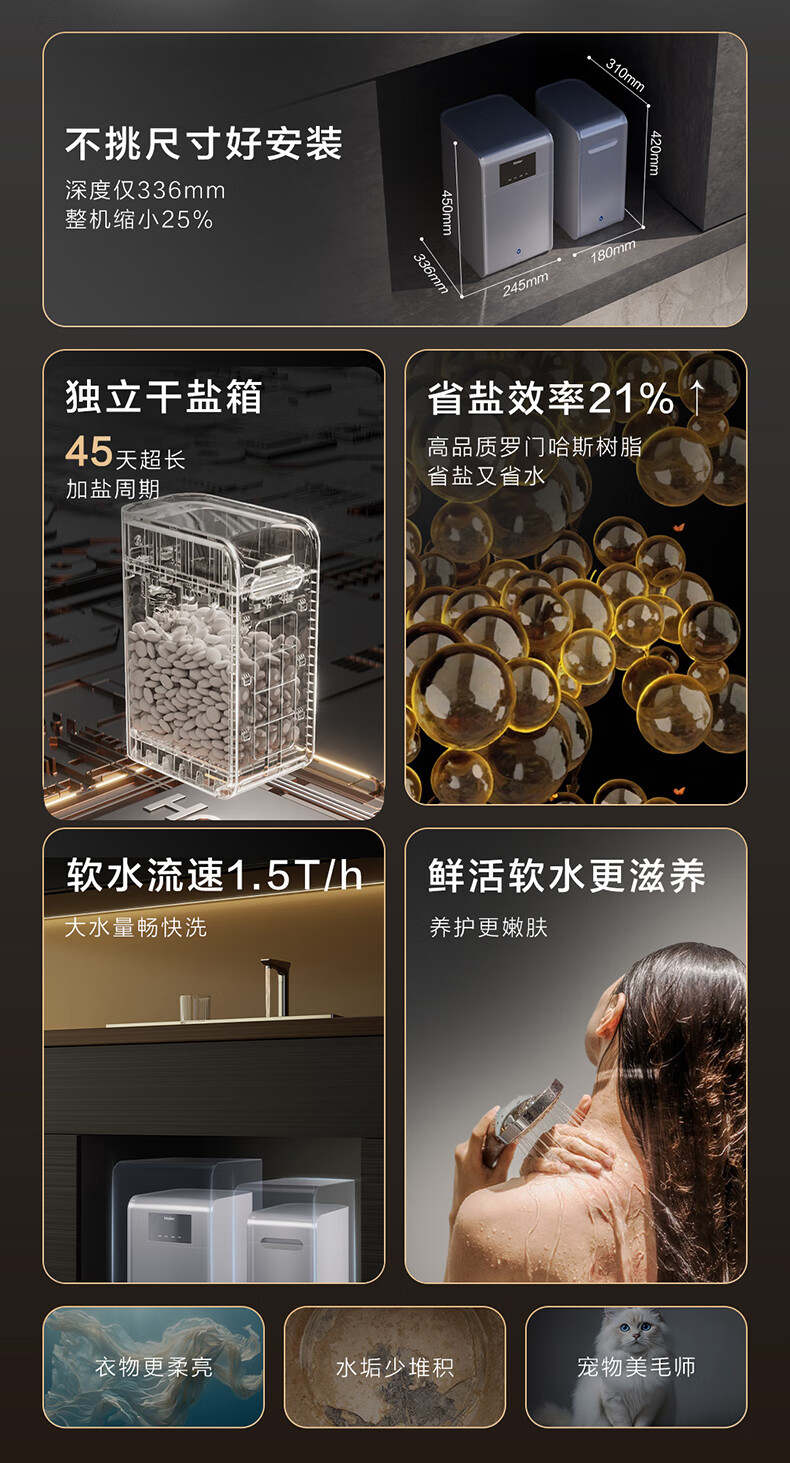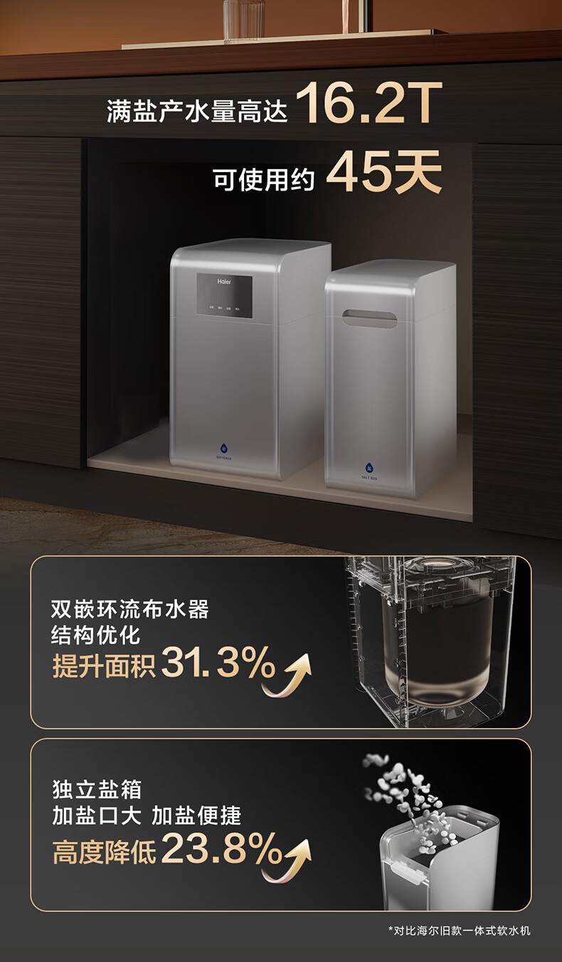 海尔(Haier)水魔方家用分体式中央软水机1.5T大通量超薄小体积净水器安装无忧全屋软化水质HZR15-F0913D1U1