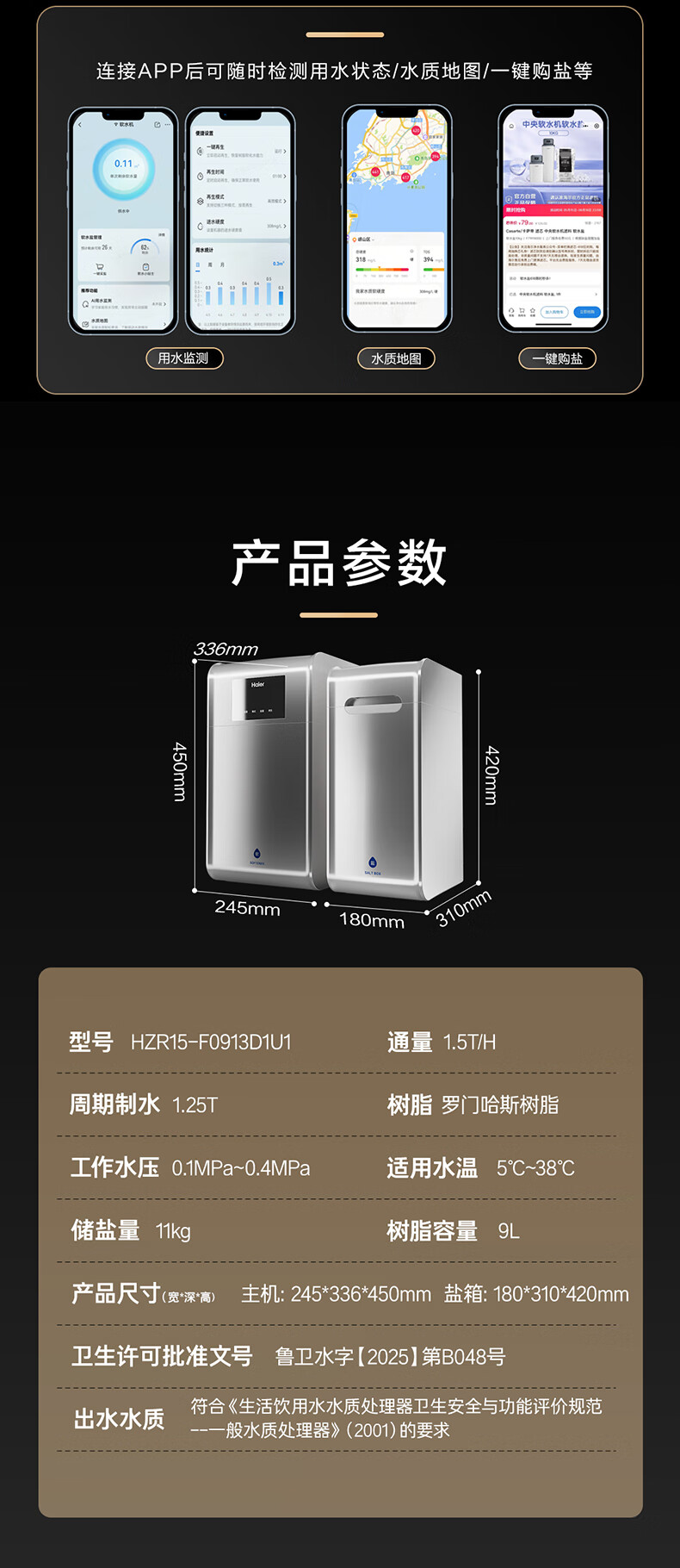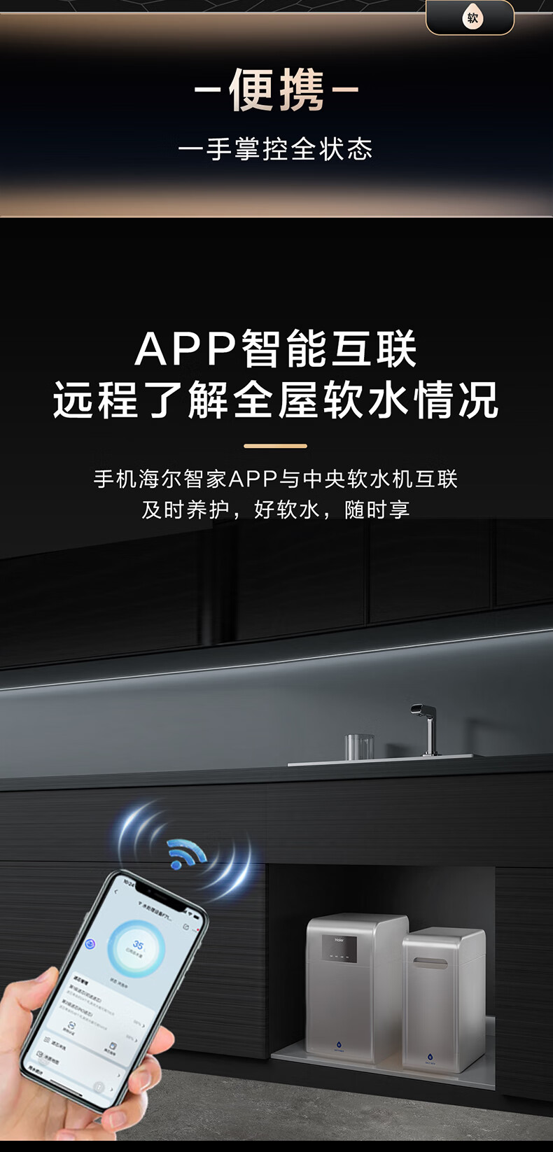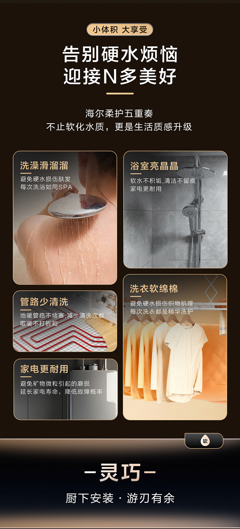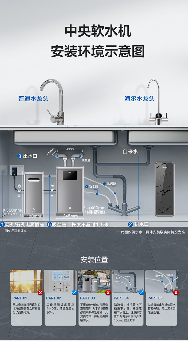 海尔(Haier)水魔方家用分体式中央软水机1.5T大通量超薄小体积净水器安装无忧全屋软化水质HZR15-F0913D1U1