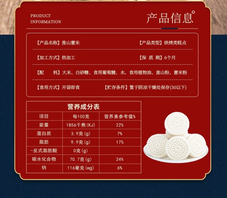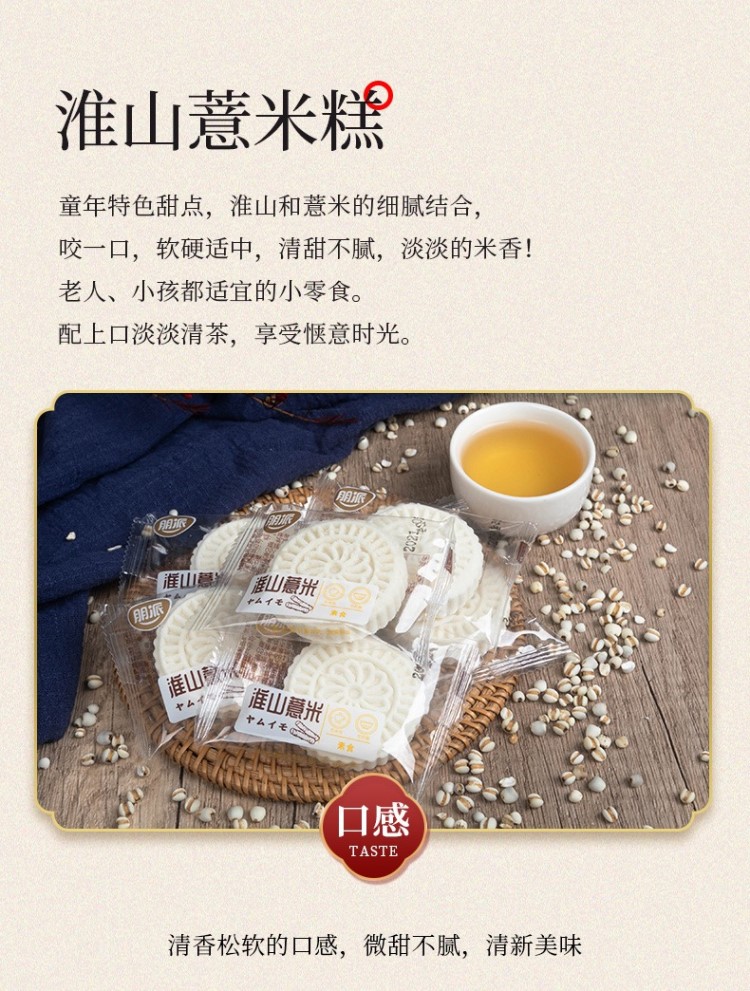 朋派淮山薏米糕 清香松软微甜不腻 童年特色记忆320g/盒
