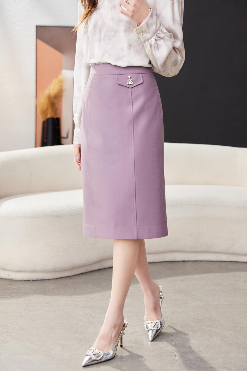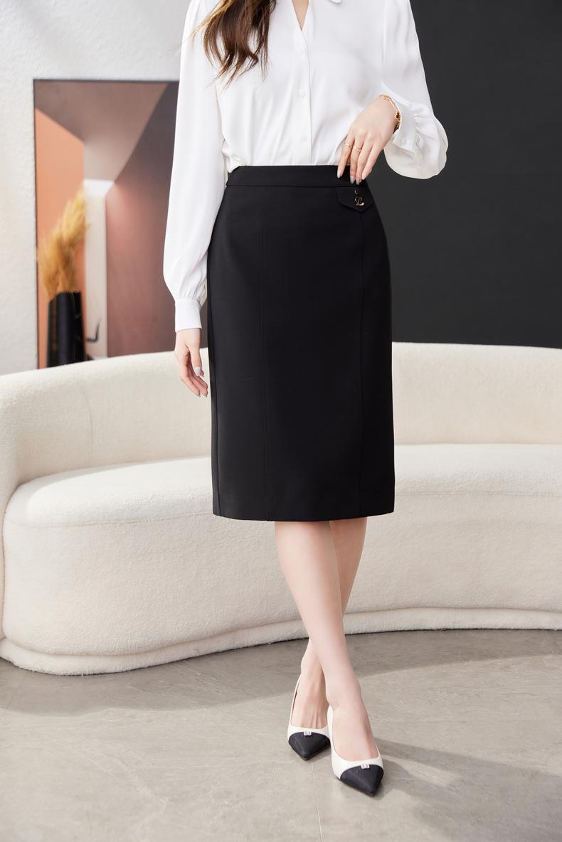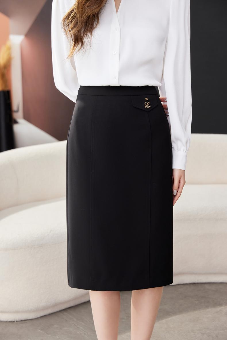 开叉半身裙女2024春装新款高腰显瘦西装裙中长款包臀裙1770