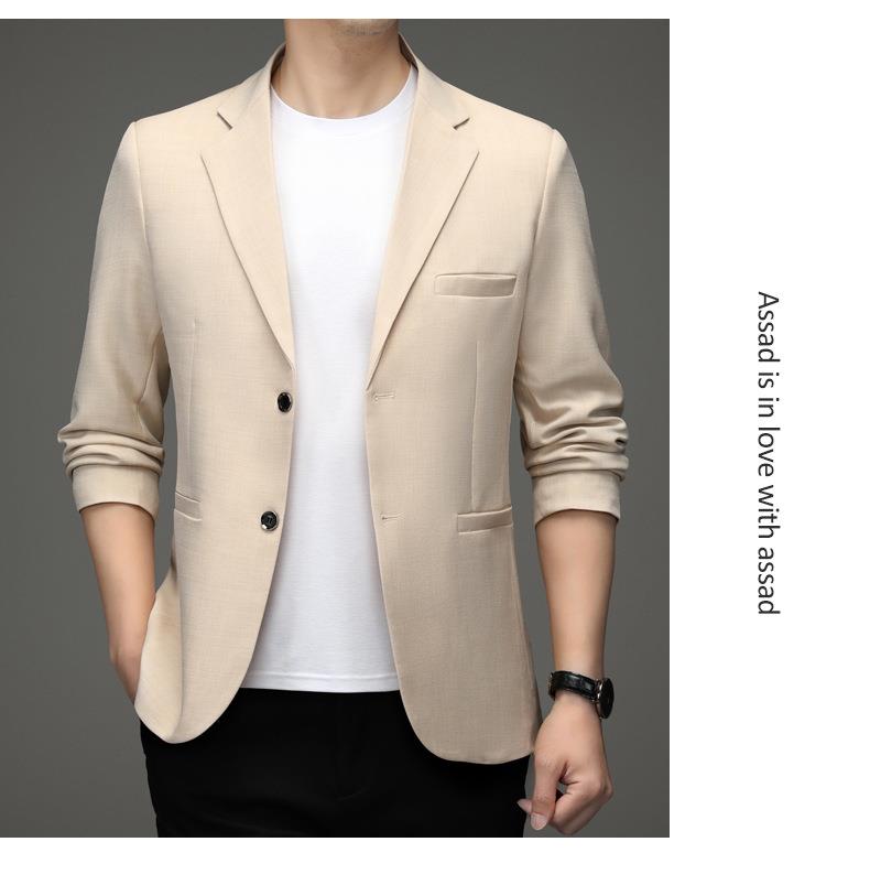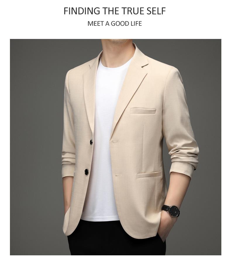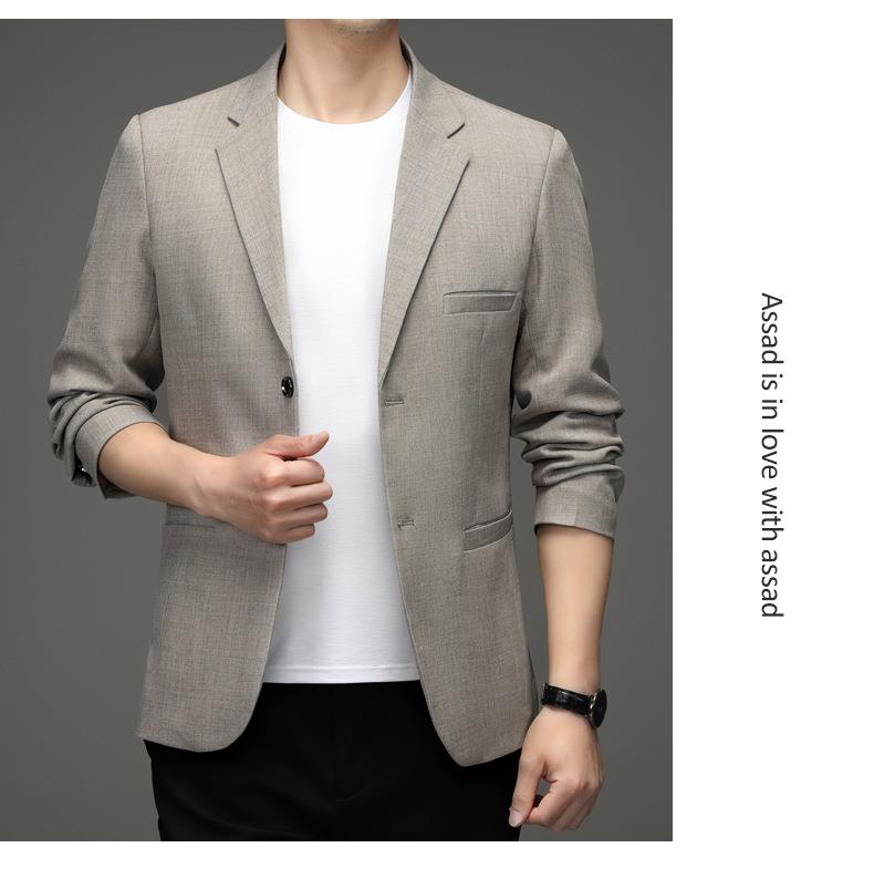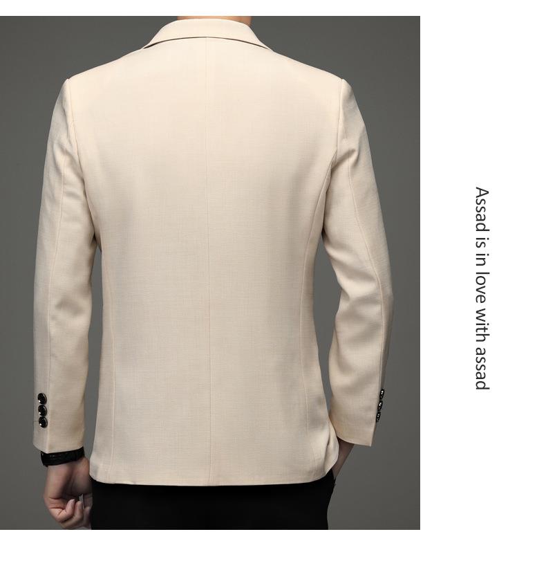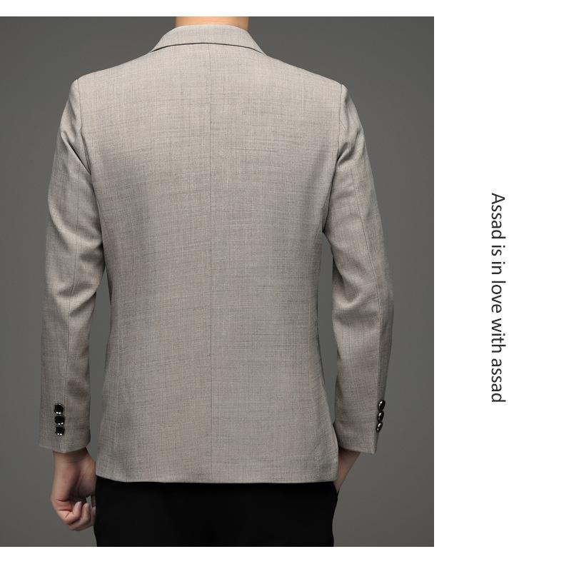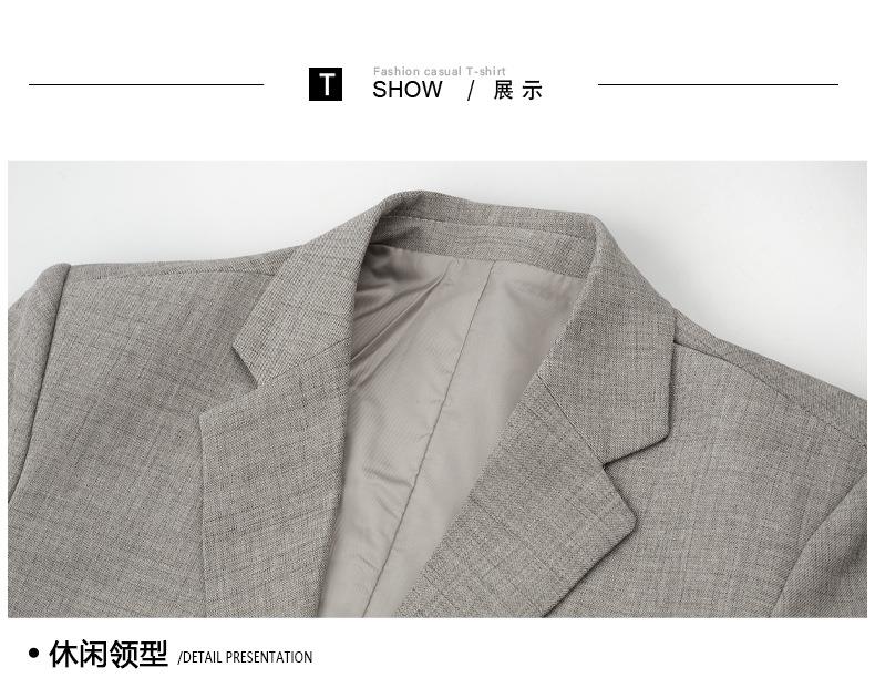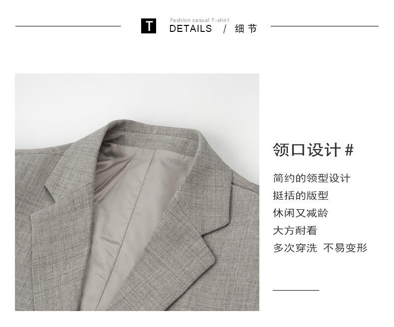 春秋季男士翻领休闲西服中年亚麻纯色宽松爸爸装商务西装