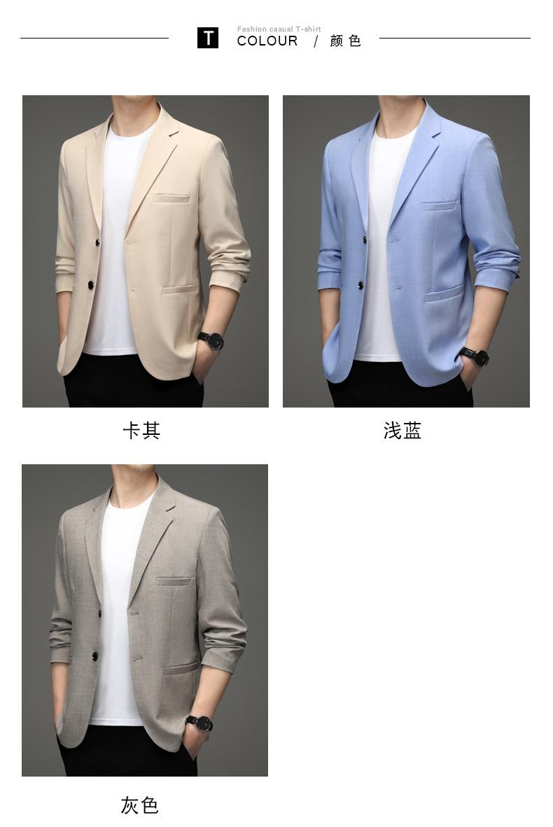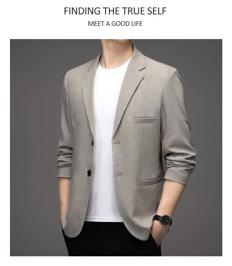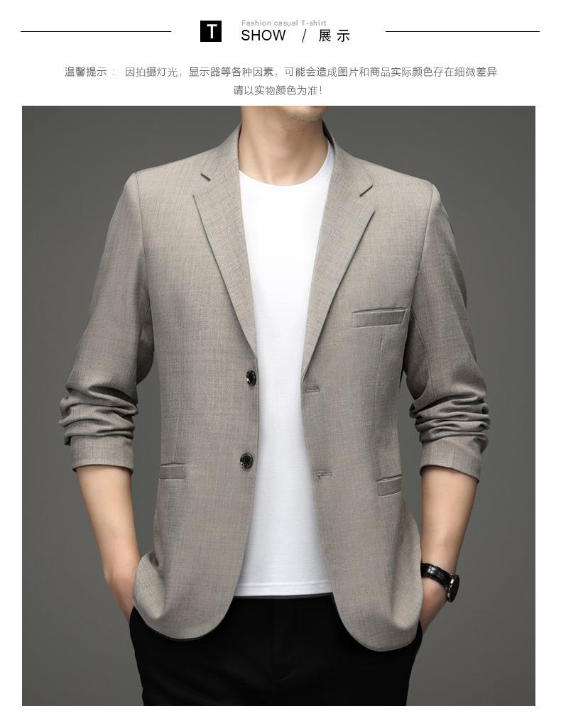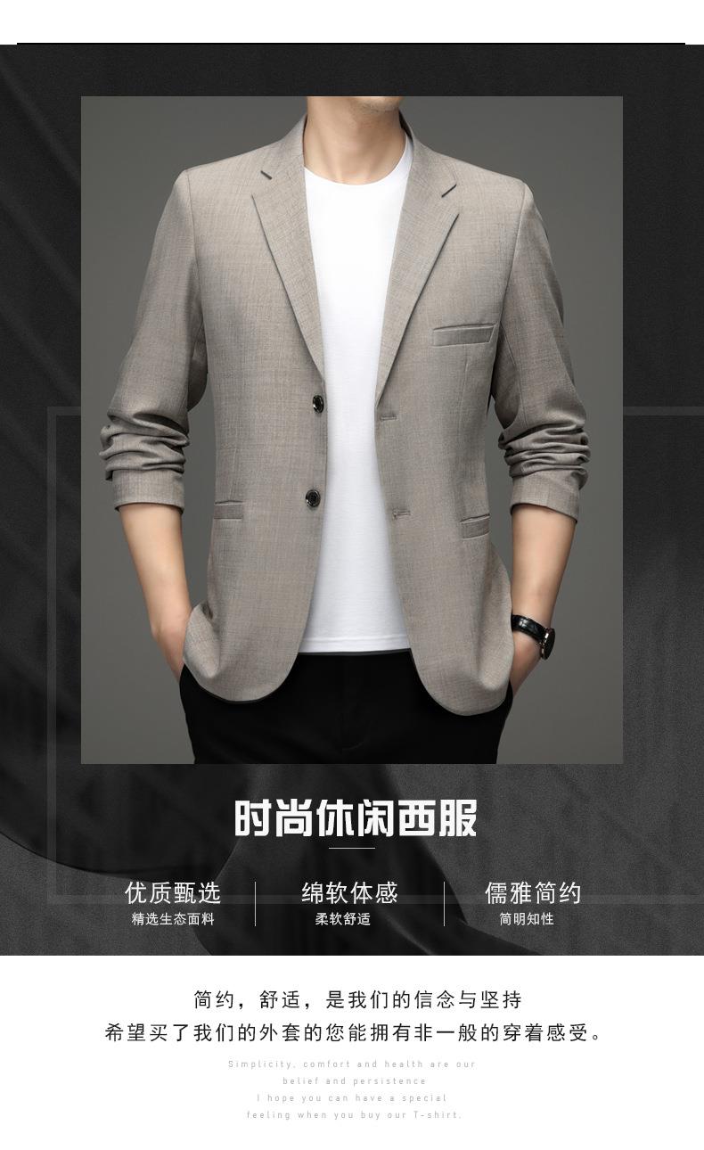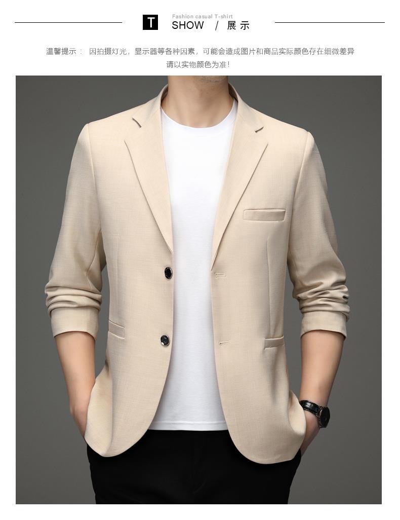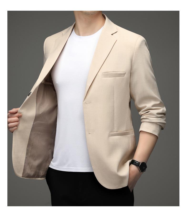 春秋季男士翻领休闲西服中年亚麻纯色宽松爸爸装商务西装