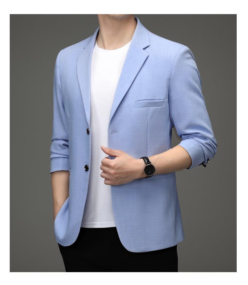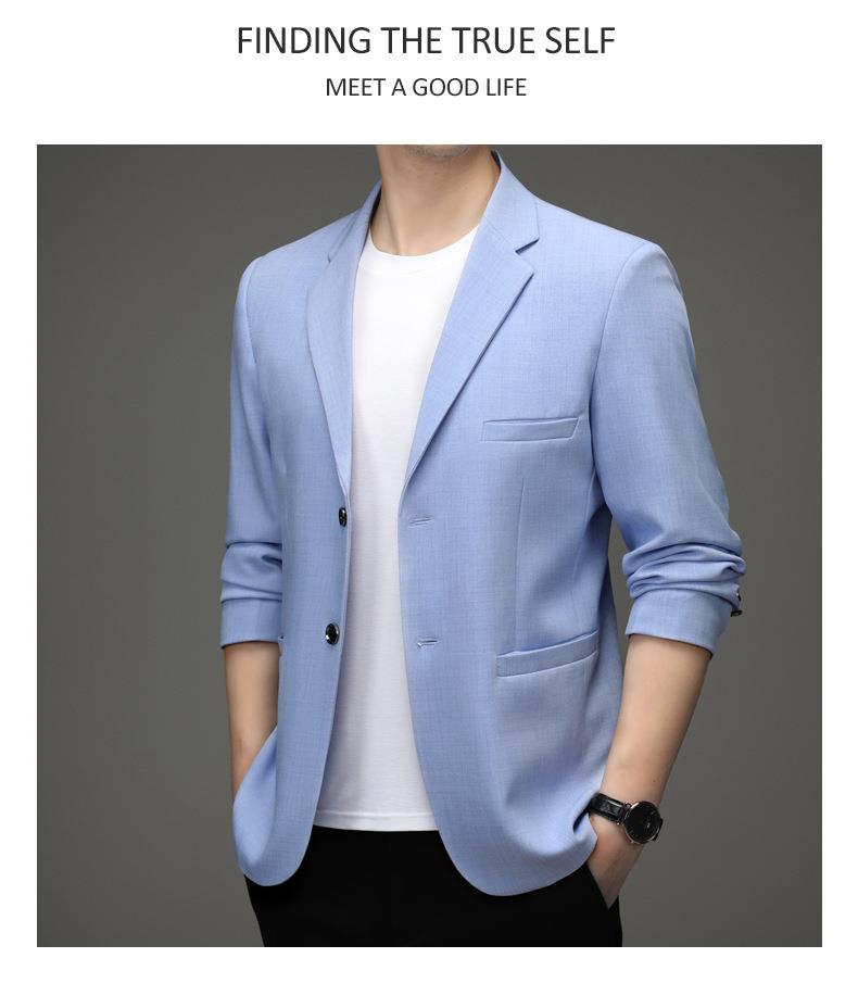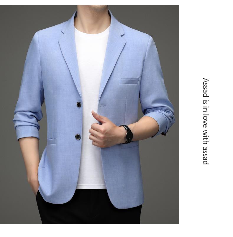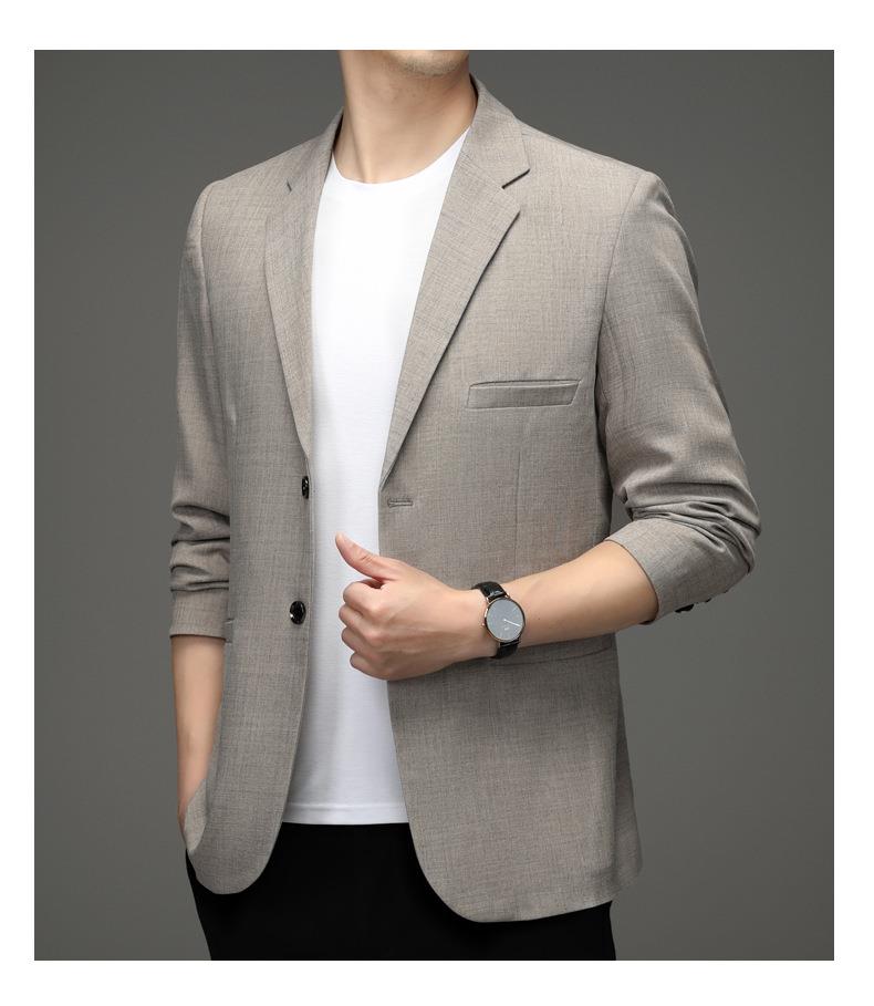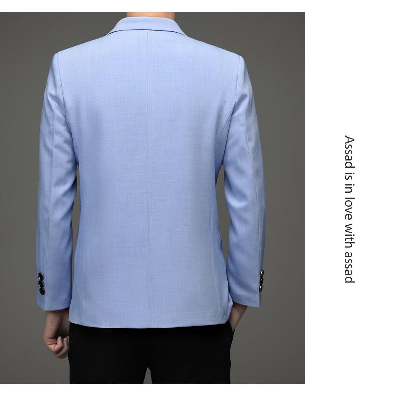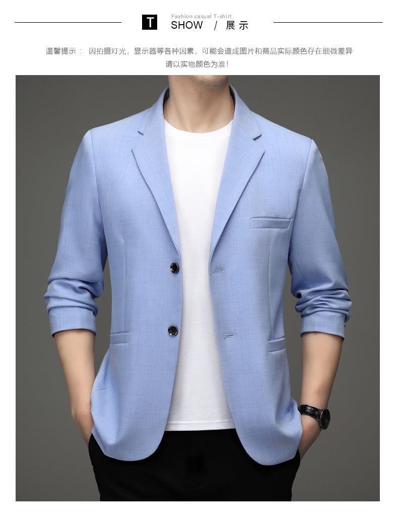 春秋季男士翻领休闲西服中年亚麻纯色宽松爸爸装商务西装