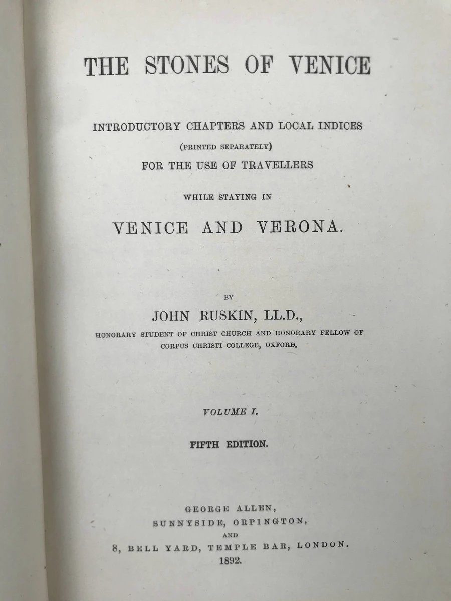 特装本!1892年 约翰·罗斯金《威尼斯之石》(卷1) 全真皮精装32开