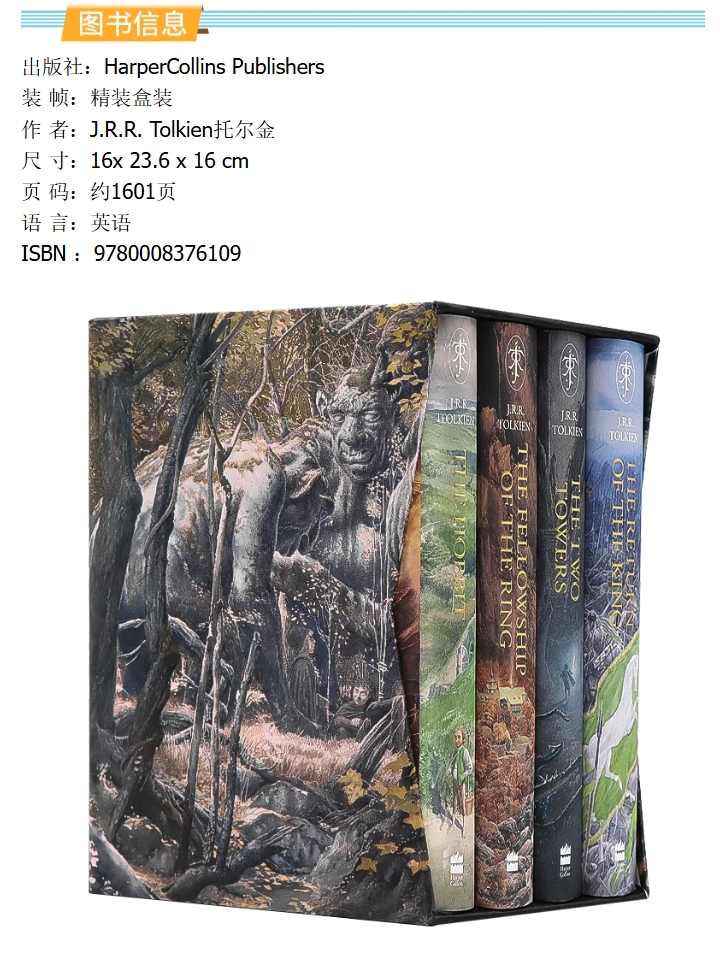 【赠音频】收藏版 指环王霍比特人魔戒英文原版小说4册 The Hobbit Lord of the Rings Boxed Set 托尔金精装插图版史诗级奇幻J.R.R.Tolkien