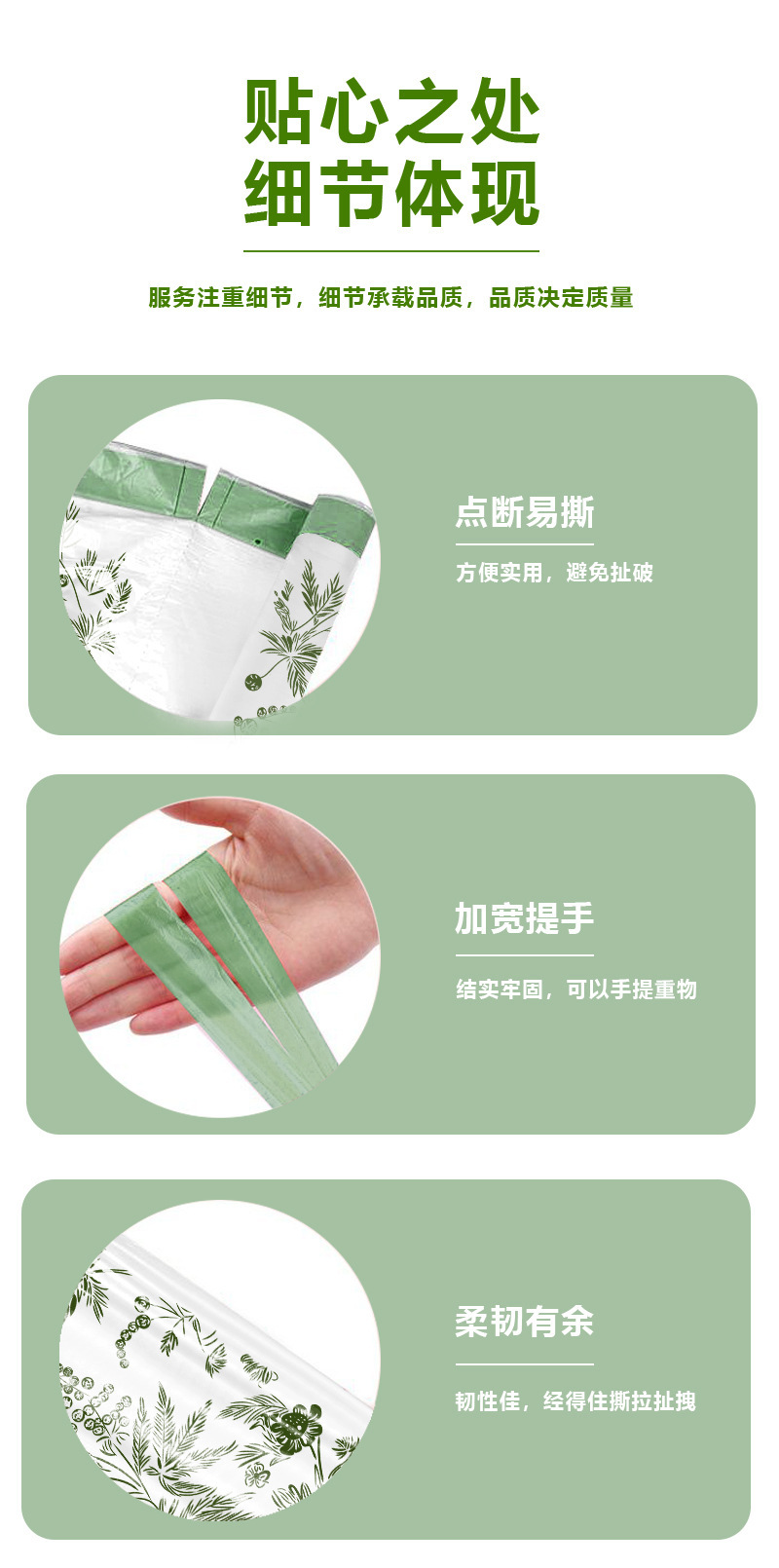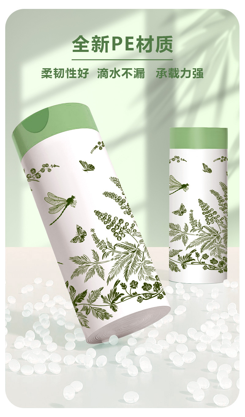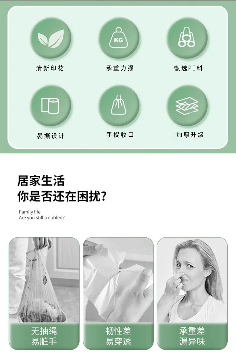 【5卷150只】艾草免撕垃圾袋家用加厚手提、抽绳垃圾袋、可降解,42*45/只