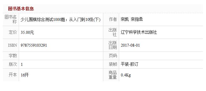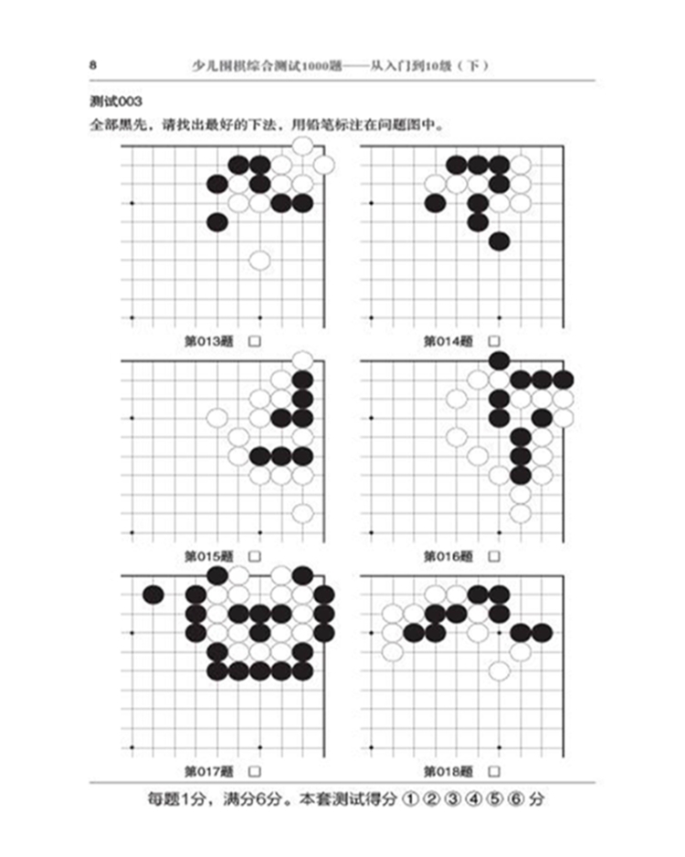 《少儿围棋综合测试1000题:从入门到10级(下)》