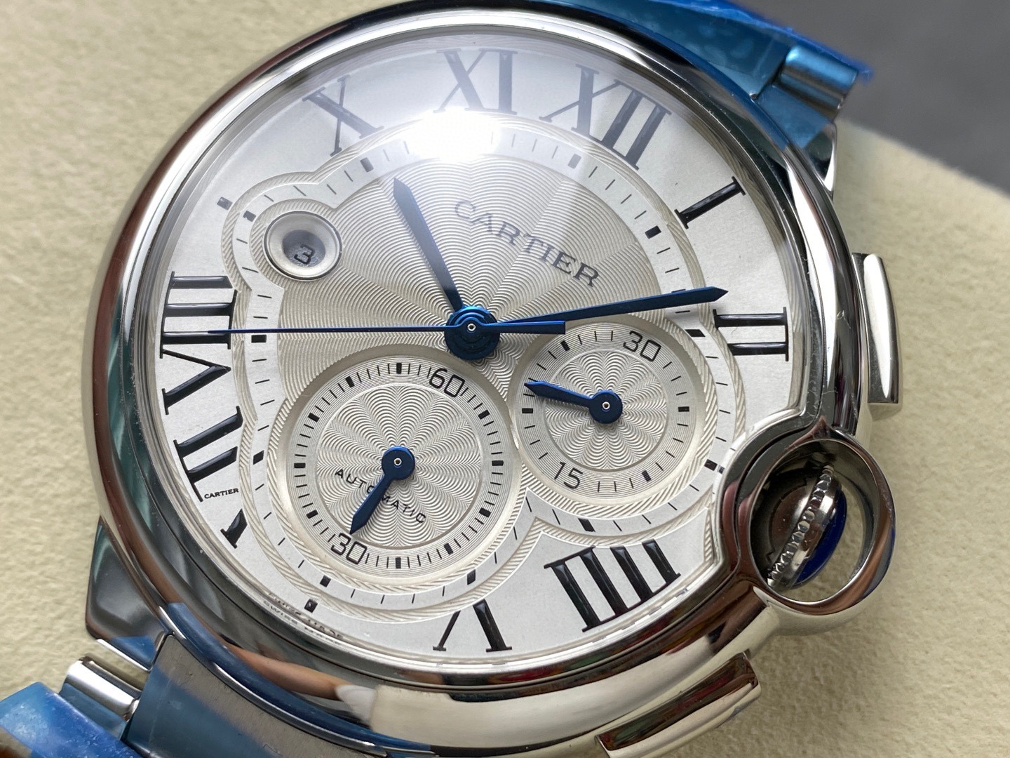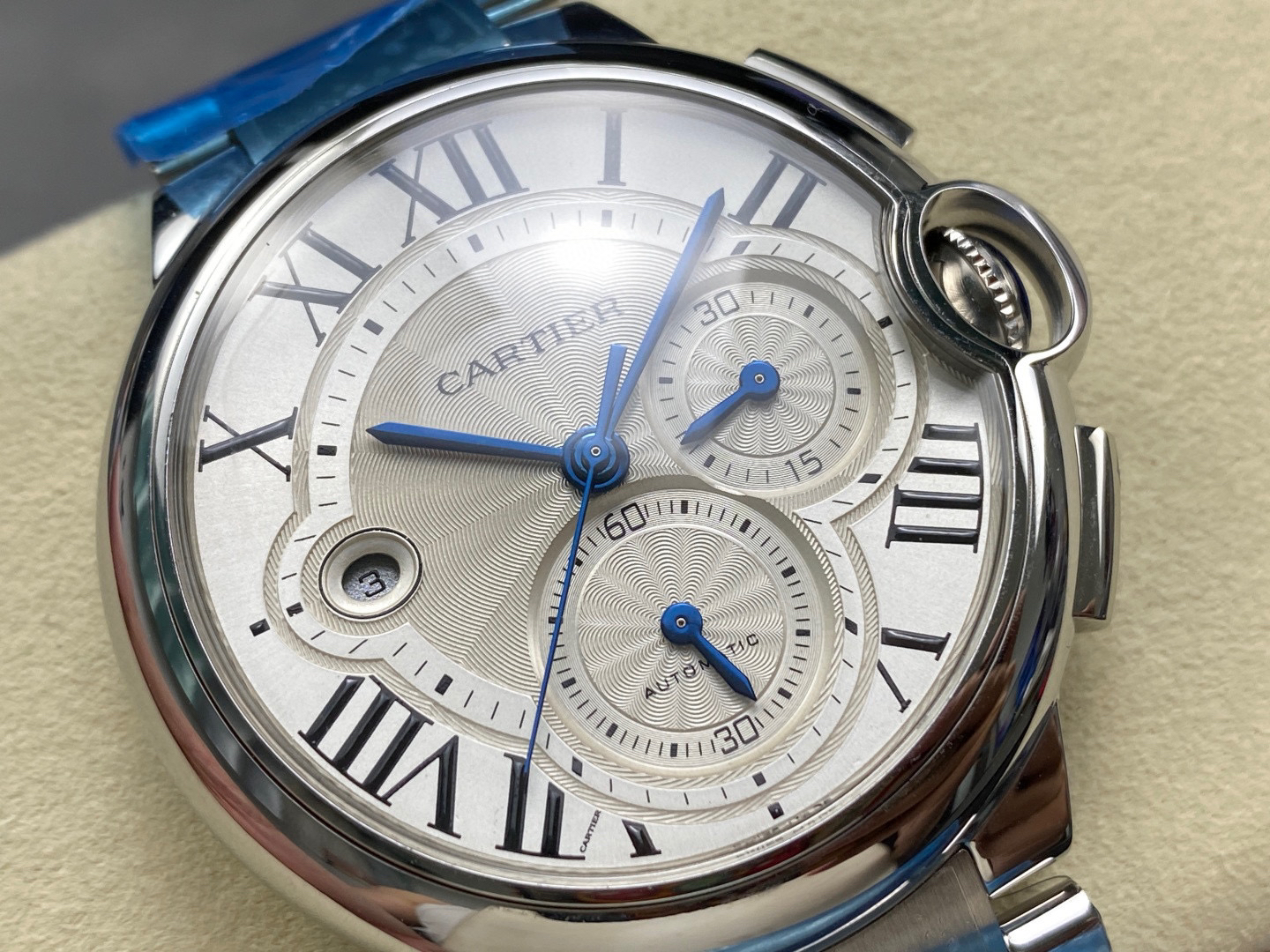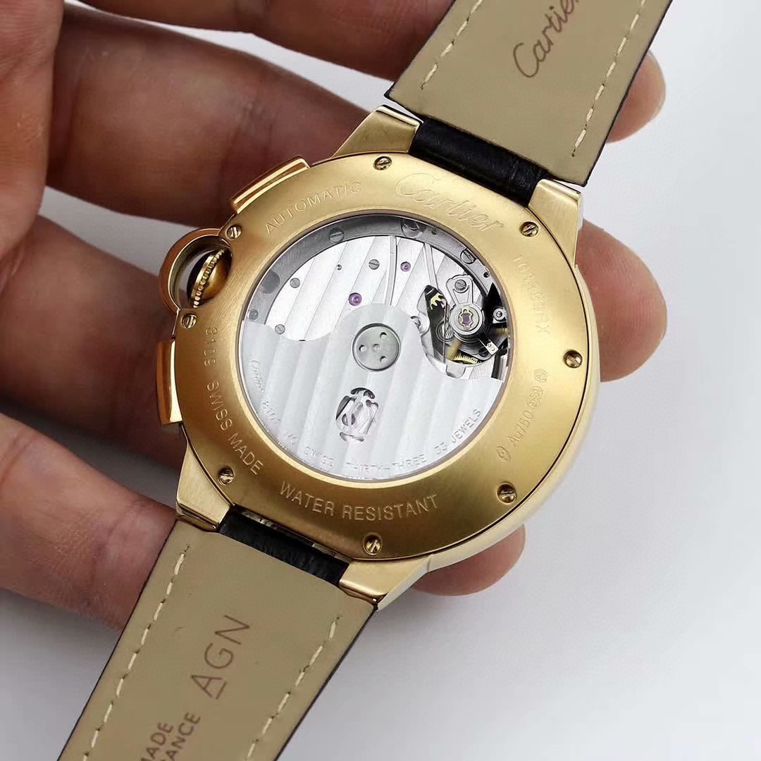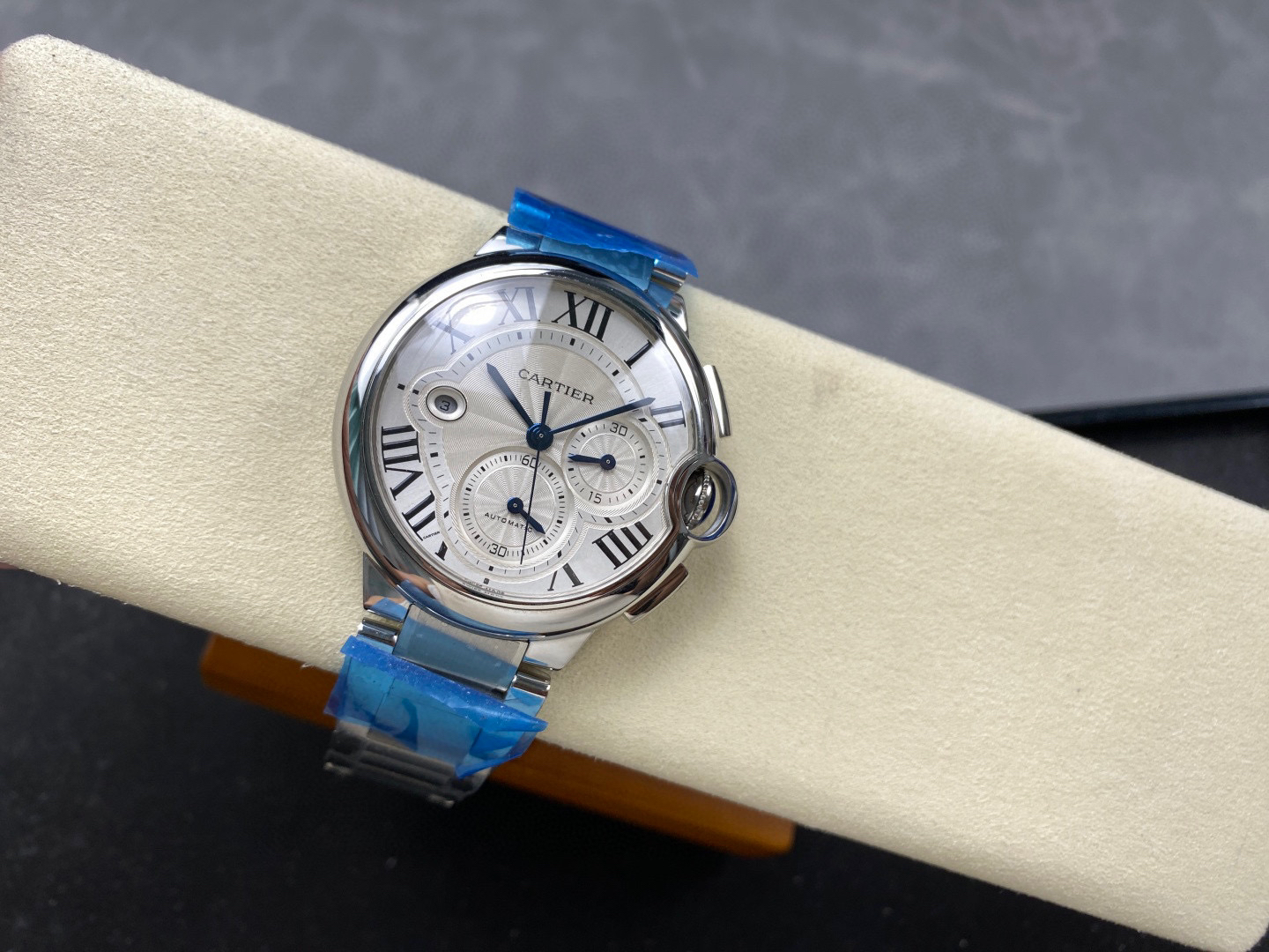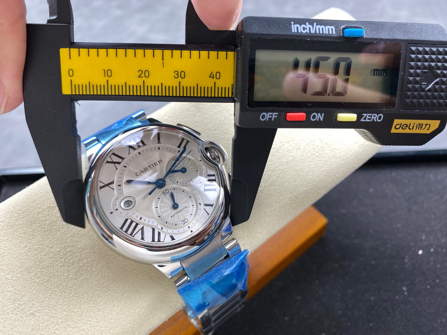 NOOB official精品 卡地亚 蓝气球系列 计时机械腕表 V5S升级版 主要升级为最新原版与一致的以下几点️:机芯采用7750六秒计时机芯(纯机芯定制,不改任何结构与功能)复刻原装Cal.8101.MC机芯️机芯宝石均为真宝石,搭配与最新原版一致的1904实心陀片️:双层立体字面,字面的纹路,颜色均与原装一致️:日历的字体,大小,颜色均与最新原版一致!使之整体效果更加与正品无限接近NOOB official boutique Cartier Blue Balloon series timing mechanical watch V5S upgraded version is mainly upgraded to the latest original version and consistent with the following points: the movement adopts a 7750 six second timing movement (pure movement customization, without changing any structure or function), replicating the original Cal.8101.MC movement. The gemstones of the movement are all real gemstones, matched with 1904 solid tourbillon that is consistent with the latest original version. The double-layer three-dimensional literal, literal pattern, color are consistent with the original version. The font, size, and color of the calendar are consistent with the latest original version! Make the overall effect closer to the genuine product infinitely